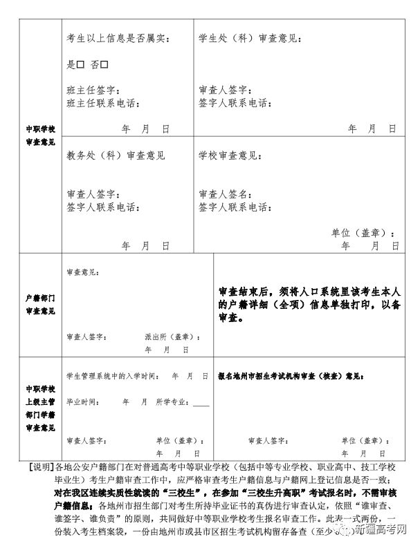 各级公安机关要严格执行有关户籍迁移、族别变更的政策和规定,对涉及高考考生的户籍迁移、族别变更要严格审查把关,坚决杜绝非正常户籍迁移和族别变更等投机报考行为,配合当地教育部门做好考生户籍信息确认工作。