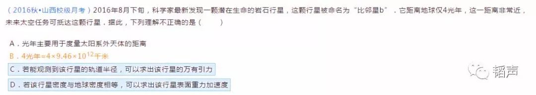 灾难,一同面向未来。所以,现实中的人类应该把眼光放长、放宽,而不是现在的状况。 知识点一:太阳的天体意义及能量来源 据影片中介绍,地球流浪的原因是因为太阳即将毁灭。太阳属于恒星,根据湘教版地理必修一对天体意义的解读,太阳属于恒星,恒星是什么?恒星是由气态或等离子态组层的自己发光发热的球状或类球状天体。太阳的能量来源是氢和氦产生的核聚变反应。太阳正处于壮年期,科学家预测还有50亿年的寿命,太阳自然死亡,也就是能量衰竭是会退化为白矮星。太阳辐射主要集中在波长较短的可见光波段。 知识点二:太阳对地球的影响 1、太阳辐射对地球的影响 2、太阳活动对地球的影响 知识点三:地球存在生命的条件 外部条件:相对稳定、安全的宇宙环境 1、太阳的稳定——提供光和热 2、安全的行星际空间——轨道共面同向,大小行星各行其道 自身条件: 温度——①地球与太阳距离适中,使地球表面的平均气温适度; 大气——②地球的体积和质量适中,形成大气层。 3、生物的作用对大气成份的改造:水——③结晶水汽化,原始的大洋 4、地球的宇宙环境比较安全,太阳在漫长的时间比较稳定 知识点四:全球气候变化 影片中描述到太阳即将衰竭,地表各地出现了极端变冷天气,影片中,主人翁从地下城出来,发现杭州,北京、上海等大城市已经成为冰封的世界。其实计算太阳还是存在,由于人类活动,温室气体排放等,使得地球上极端天气的频率与强度大大增加。这也是高考的一个命题切入点。 知识点五:地球在太阳系中的位置,通过木星推动地球的情节是否合理 影片中介绍地球想寻找新的栖息地,因为太阳系中唯一的恒星太阳即将毁灭,那么问题来了,地球怎么逃离太阳系。影片中所说的靠助推器或木星推动是否合理? 地球处于太阳系八大行星中的第三颗行星。那么想逃离太阳系必须要摆脱当前的轨道,也就是黄道。必须具备强度的推力和逃逸速度。 从研究两个质点在万有引力作用下的运动规律出发,人们通常把航天器达到环绕地球、脱离地球和飞出太阳系所需要的最小发射速度,分别称为第一宇宙速度、第二宇宙速度,第三宇宙速度。第一、二、三宇宙速度分别为7.9km/s ,11.2km/s ,16.7km/s。也就是说地球想逃出太阳系必须达到第三宇宙速度。 影片中说到地球需要借助外力脱离轨道,即便木星可以提供强大的推力,但是地球是否能承受住,这就是一个问题。地球从外到内,分为三大圈层分别是地壳、地幔和地核。地壳的最大厚度约为33km,但是这33km对于地球的整个半径来说,就相当于鸡蛋的蛋壳与整个鸡蛋相比。因此强大的推力会使得整个刚性的岩石圈完全破碎,陆壳和洋壳会大规模水平运动和垂直运动,而被卷入地幔。而最终地表会面目全非。 当然,在这里会有很多的命题切入,比如地球远离太阳,通过木星轨道的时候,会经历小行星带,木星的卫星的形成与小行星带有关。地球走了,月球会怎样?是不是也要带走? 知识点六:新的家园比邻星,是否宜居? 2017年3月24日,南美智利的阿塔卡马望远镜观测到了比邻星的一次超级耀斑爆发,仅仅只持续了10S,但比邻星在这短短的时间之内亮度上升了1000倍,很多科学家推测假如比邻星的行星上存在生命的话,此次耀斑就会要了它们的命! 而另外两颗这距离比较近,类似伴星一般的存在,因此以它们为母星导致行星轨道不稳定,两者中的A星比太阳大,也要更热一些,B星则稍小,但也差不多,因此这个三星系并非宜居之地!比邻星距地球4.22光年,还记得书本上说的,离太阳系最近的一颗恒星距太阳4.2光年吗?对这颗恒星就是比邻星。《流浪地球》中设定的是2500年左右到达,天仓五理论上需要7500年左右,但与比邻星的不稳定恒星以及三星系同相比。因此在木星引力弹弓作用下直接转向前往天仓五,当然半路有那么长时间的转向也是没有问题的。