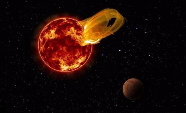 意思就是太阳加速衰老,氦闪之后,太阳将变为一颗巨大但暗淡的红巨星,结果爆炸之后还膨胀了,到时候体积庞大到能把地球都吞了。