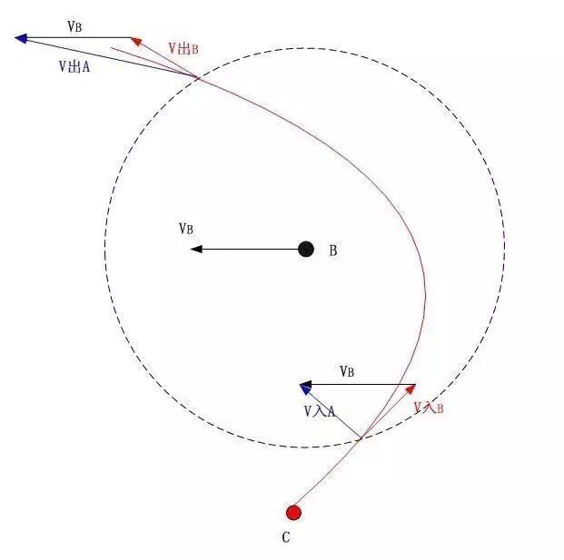 而朝着外行星飞时,是要加速。飞行器第一次从远距离接近行星时,在轨道速度之下,利用火箭助推器,最终产生超越轨道速度的动能,产生的运动效果就像该飞行器被行星反弹开了。