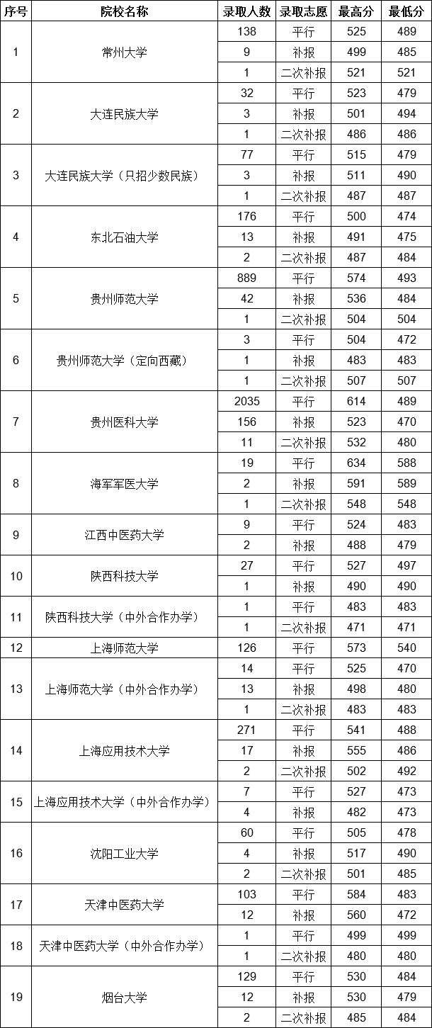 贵州省2019年高考第一批本科院校7月23日录取情况(理工、文史)