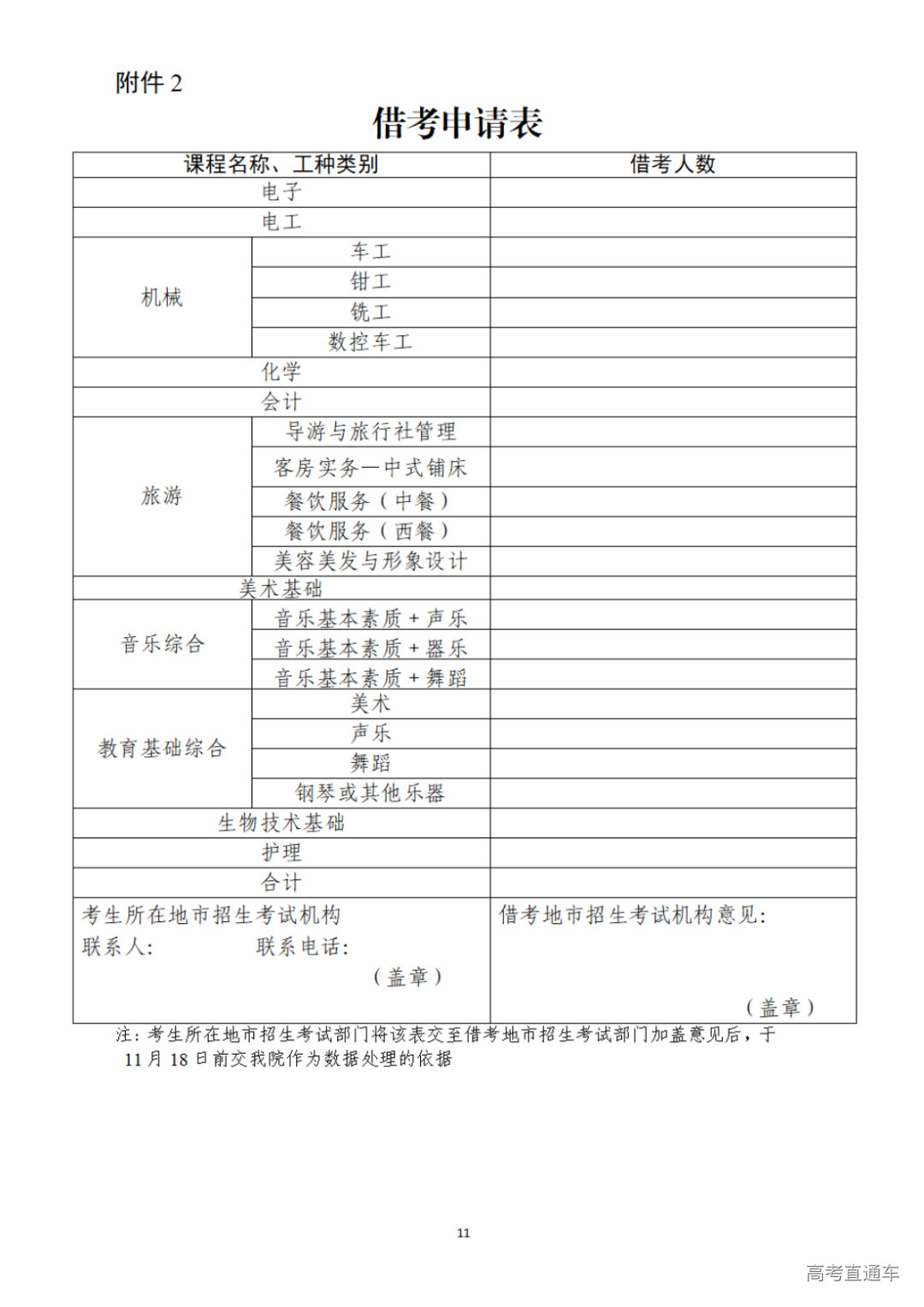 3.各市招生考试机构应根据辖区内现有操作技能考核点的实际情况指导、组织考生报考。当地如有相应课程类别的操作技能考核点,应在当地组织考试。确实不具备考试条件需到外地借考的,要做好相关组织协调工作。借考工作须由考生所在地市招生考试机构事先征得借考地市招生考试机构同意后方可组织报名(《借考申请表》见附件2),未经借考地市招生考试机构同意,借考考生个人在网上提交的报考申请将因无法通过资格审核而被退回,无法完成报名。相关借考事宜请与所在地市招生考试机构联系,具有相关操作技能考点的地市,要积极配合,共同做好借考工作。