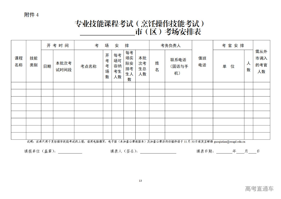 体育证书考试由省统一编排,其他证书的理论考试和实操考试由各地市负责编排并须于11月30日前在系统完成编排。烹饪考核点须于11月30日前填写考场安排表(附件4)上报省教育考试院考招二处。