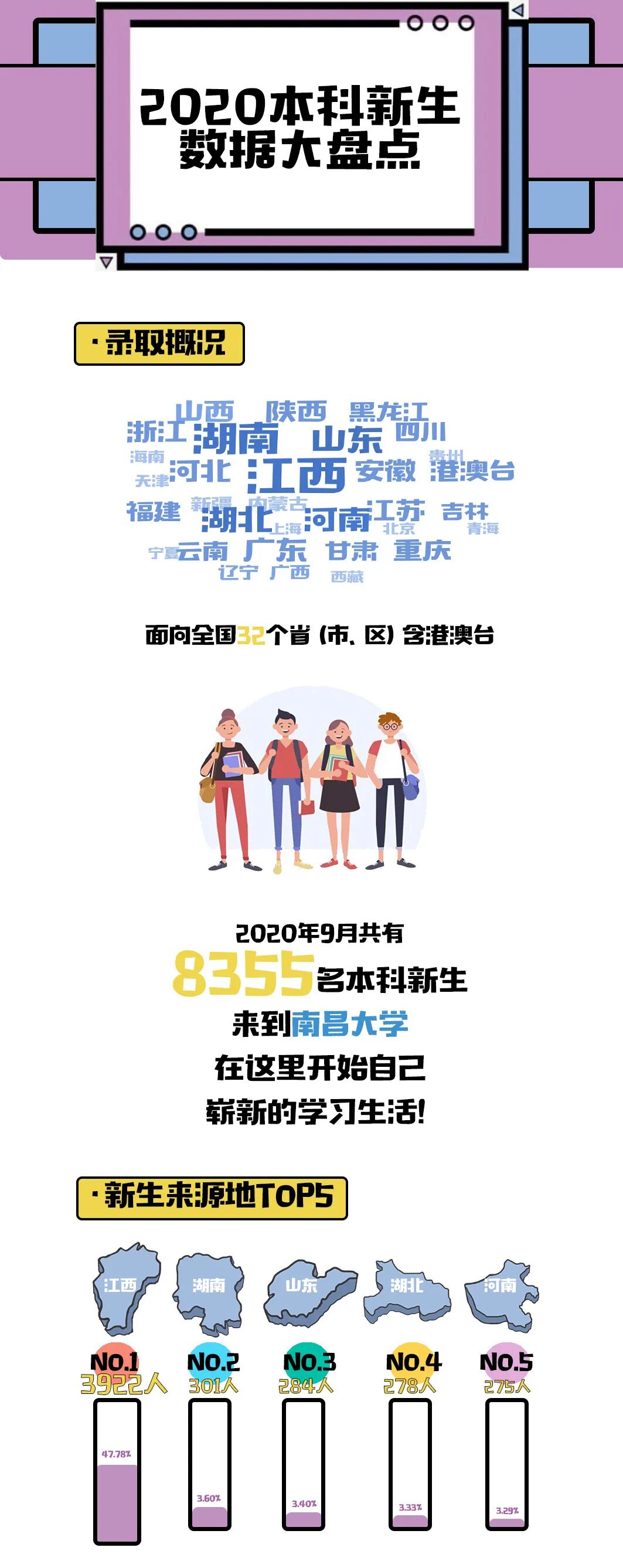 新的学习里程正将启航愿你们青春作伴,成就精彩乘风破浪,扬帆远航!了解完本科新生的情况一起再用“大数据”认识一下来自五湖四海的2020级研究生们吧!