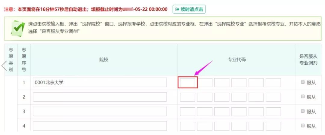 (二)考生应该在规定的时间内尽早完成志愿填报,避免在截止时间临近时“确认提交”志愿,可能会因为网络拥塞导致不能正常提交志愿,甚至偶遇当地意外停电、网络中断等不可预知的情况,造成无法填报志愿。