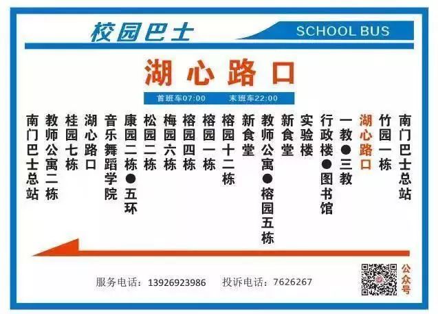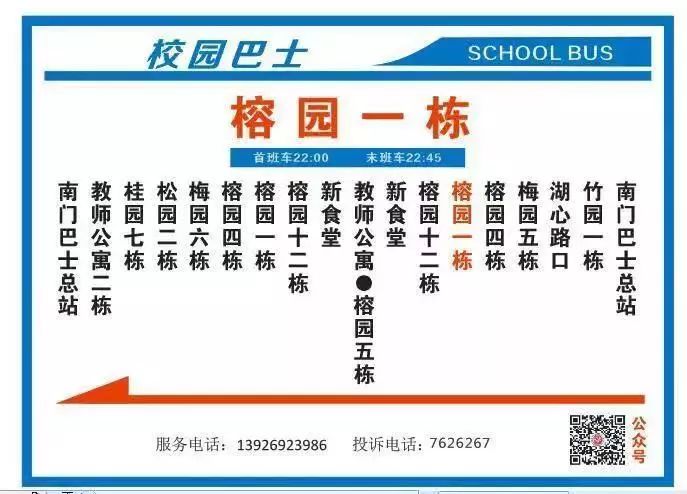 校园巴士始发站位于南门,连接多个站点,围绕整个校园,可到达各宿舍园区以及教学楼