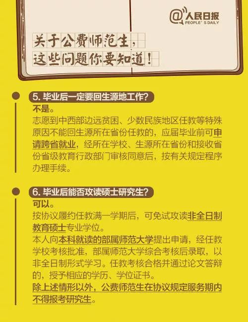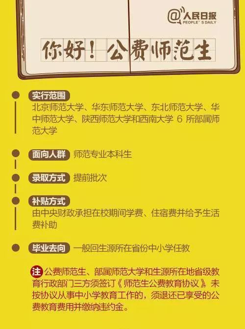 师范生公费教育政策是指由中央财政负责安排该类学生在校期间的学费、住宿费,并发放生活补贴,但学生六年毕业以后必须到指定的中小学任教。