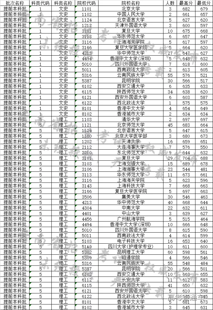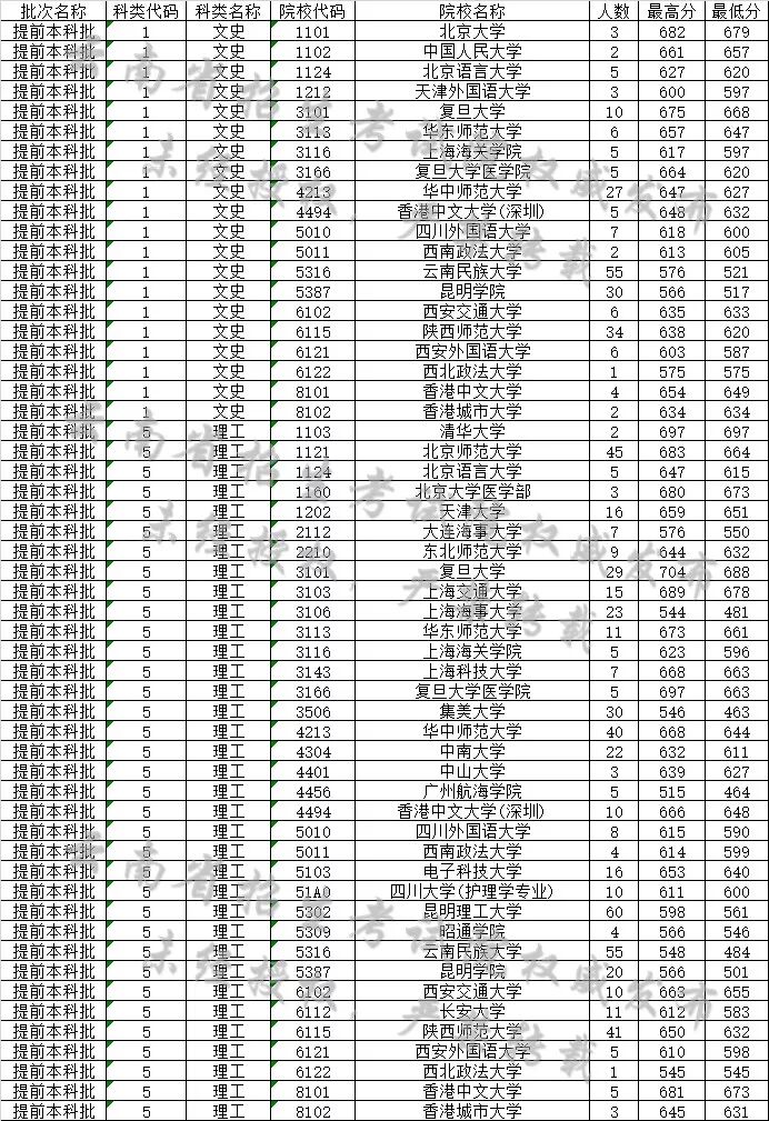 云南省2019年7月11日普高录取日报
