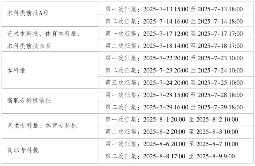 录取期间,在重庆市教育考试院官网(www.cqksy.cn)或重庆招考信息网(www.cqzk.com.cn)综合查询系统中未查询到已经被高校“录取”或“预录取”信息的考生,都可以填报征集志愿。征集志愿填报时间如下。
