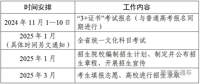 各院校2025年“3+证书”考试招生计划原则上不少于2024年。