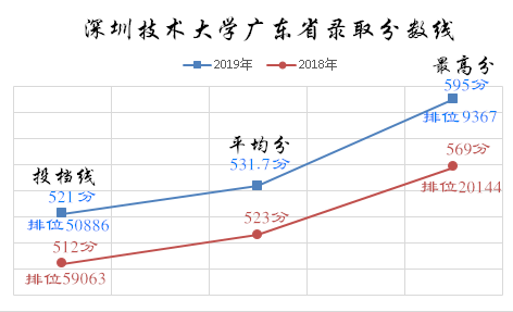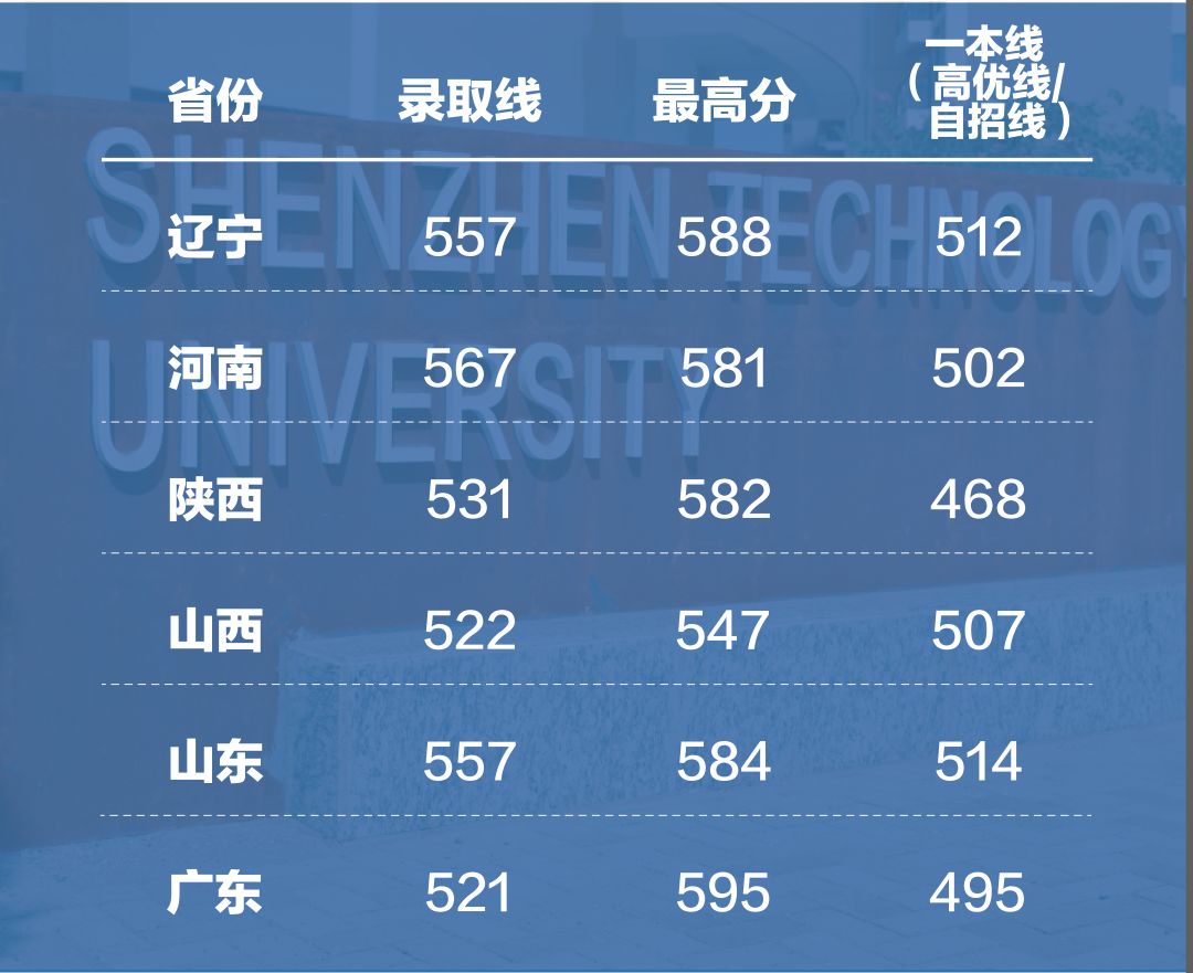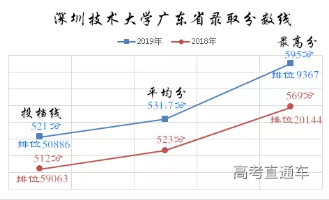 2019年录取情况总览 招生的六个省份均是一次性满额投档,高于一本线(高优线/自招线)录取。 深技大第一次在省外招生即备受青睐,其中河南、陕西高于一本线60分以上录取;辽宁、山东高于一本线40分以上录取。 在广东省,2019年深技大首次独立招生即闯入全省理科前十! 且在投档线、平均分和最高分上都全面超越了去年的成绩。 *2018年依托深圳大学招生。 录取结果查询攻略 具体的录取结果我们已经在深技大本科招生网公布,各位考生和家长可以登录网站查询,或者您可以直接点击本文文末的“阅读原文“进行查询。 深技大本科招生网网址: http://zs.sztu.edu.cn 进入深技大本科招生网后,有两种方式可以找到如下查询页面。 网站横幅 点击网页横幅(banner)。 快速通道 滚动鼠标下拉找到位于页面右侧的快速通道,点击“录取查询”。 *注:查询时请输入考生号后十位,快递单号预计8月5日开放查询。 郑重声明 本网站提供的查询结果仅供参考,录取信息以各相应省级招办、我校录取通知书发布的为准。