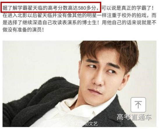 翟天临曾采访中表示:“我高考超过一本线,但是我数学才19分,我小三门能力非常强,基本上快满分了!”