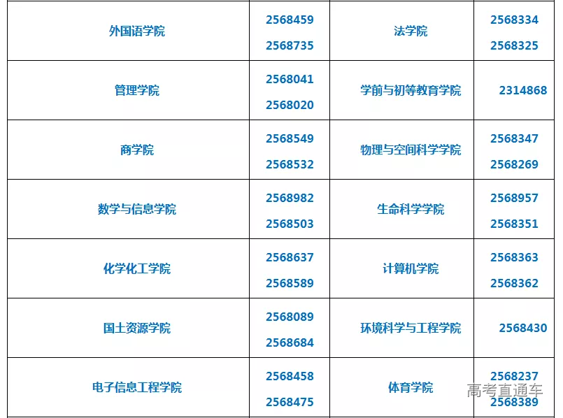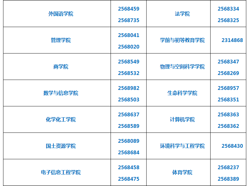 (二)北湖校区(西校门喷水池侧学校车队旁):教育学院、文学院、历史文化学院,政治与行政学院、管理学院、法学院、商学院、学前与初等教育学院、数学与信息学院、计算机学院。