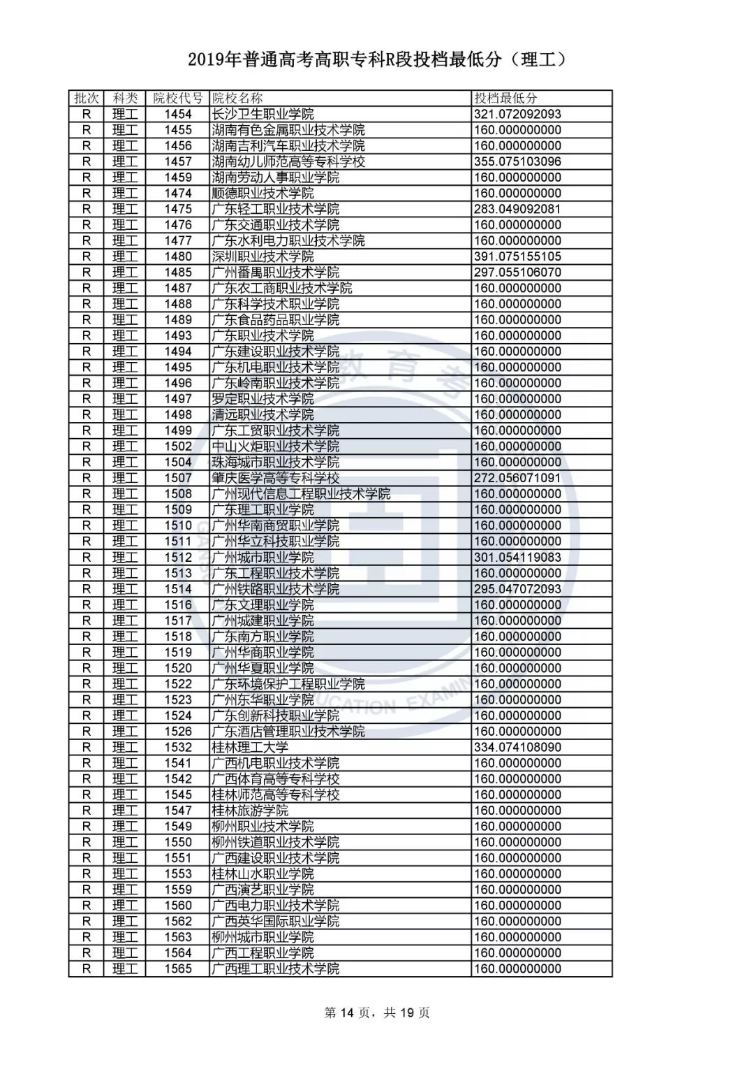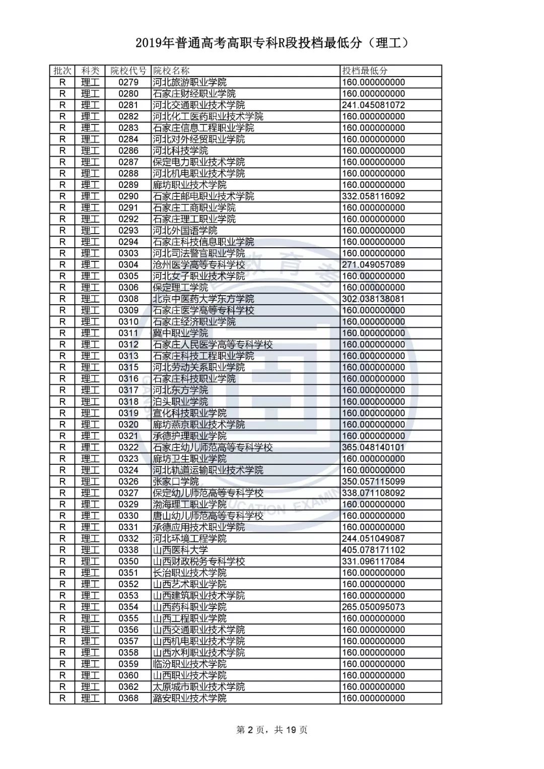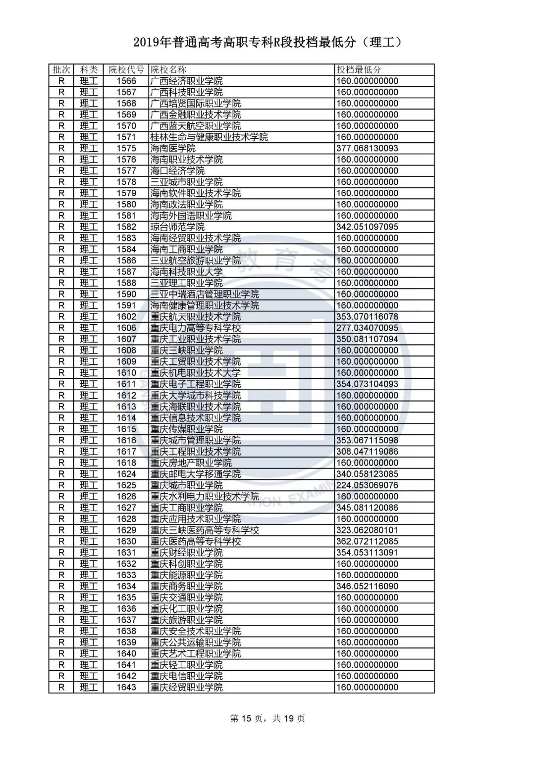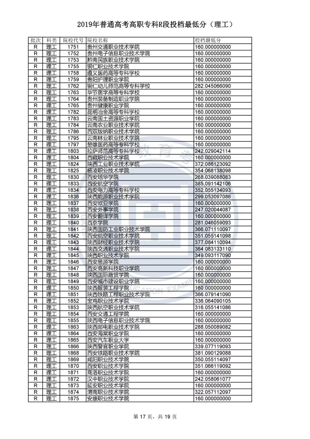 2019甘肃高职(专科)R段投档最低分(理工类)