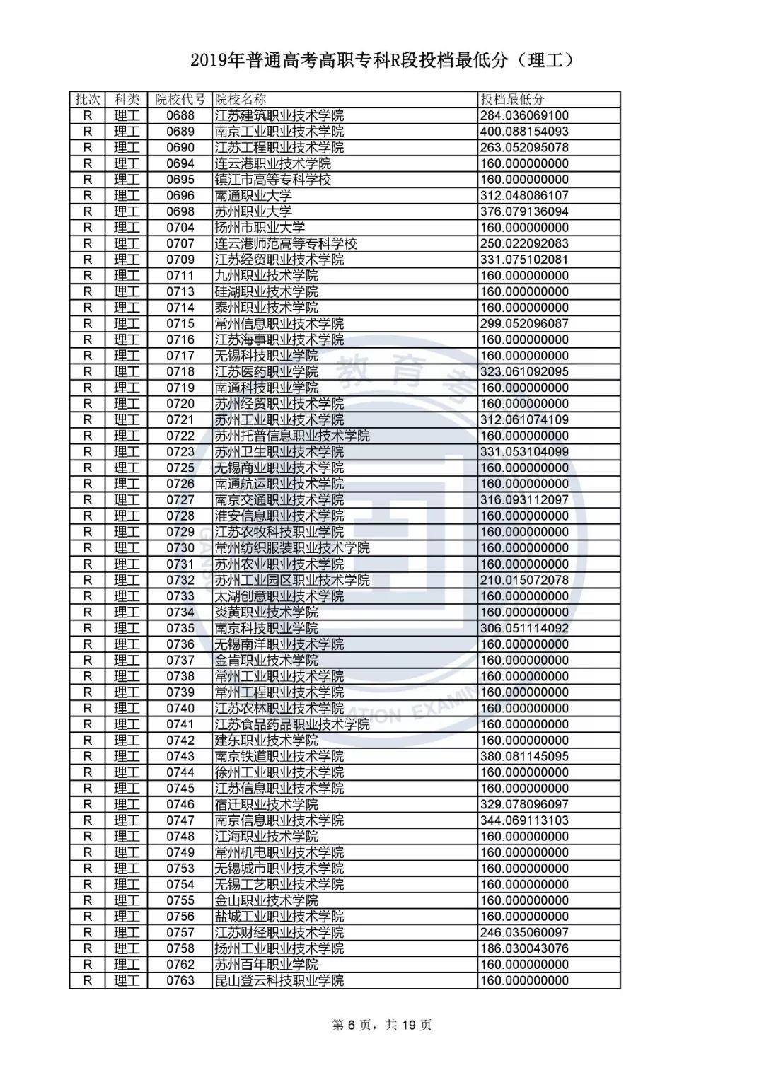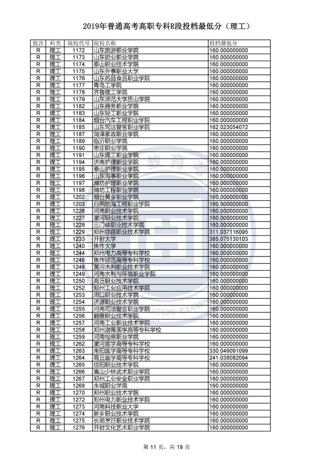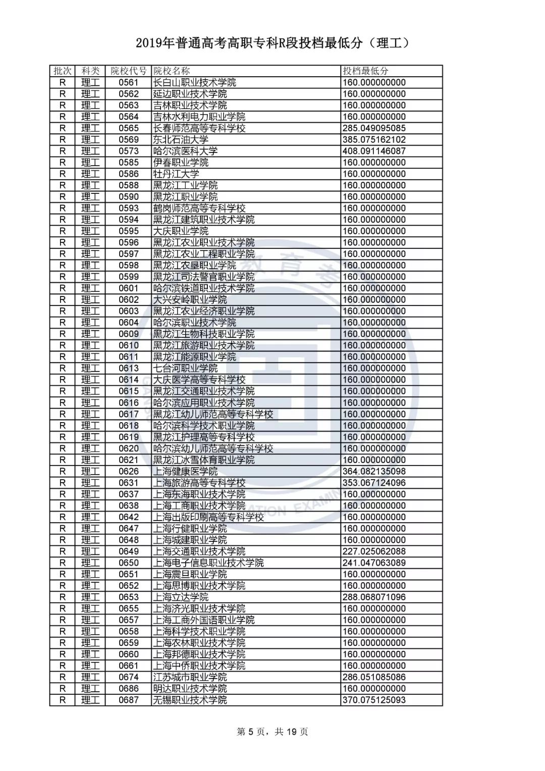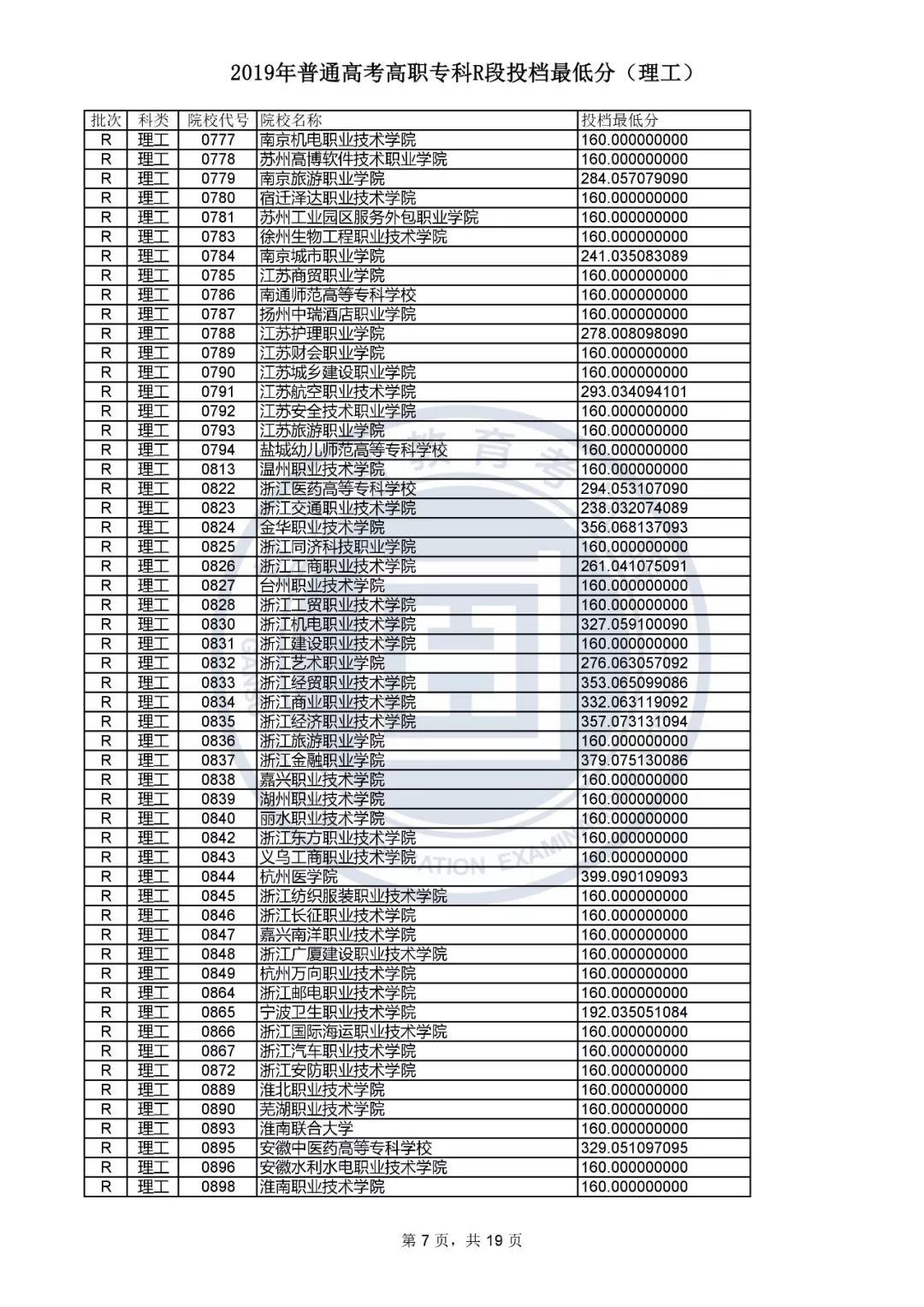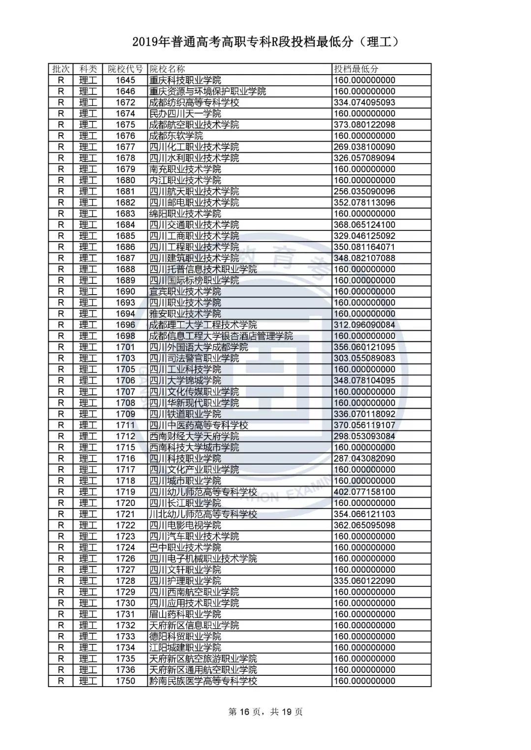 2019甘肃高职(专科)R段投档最低分(理工类)