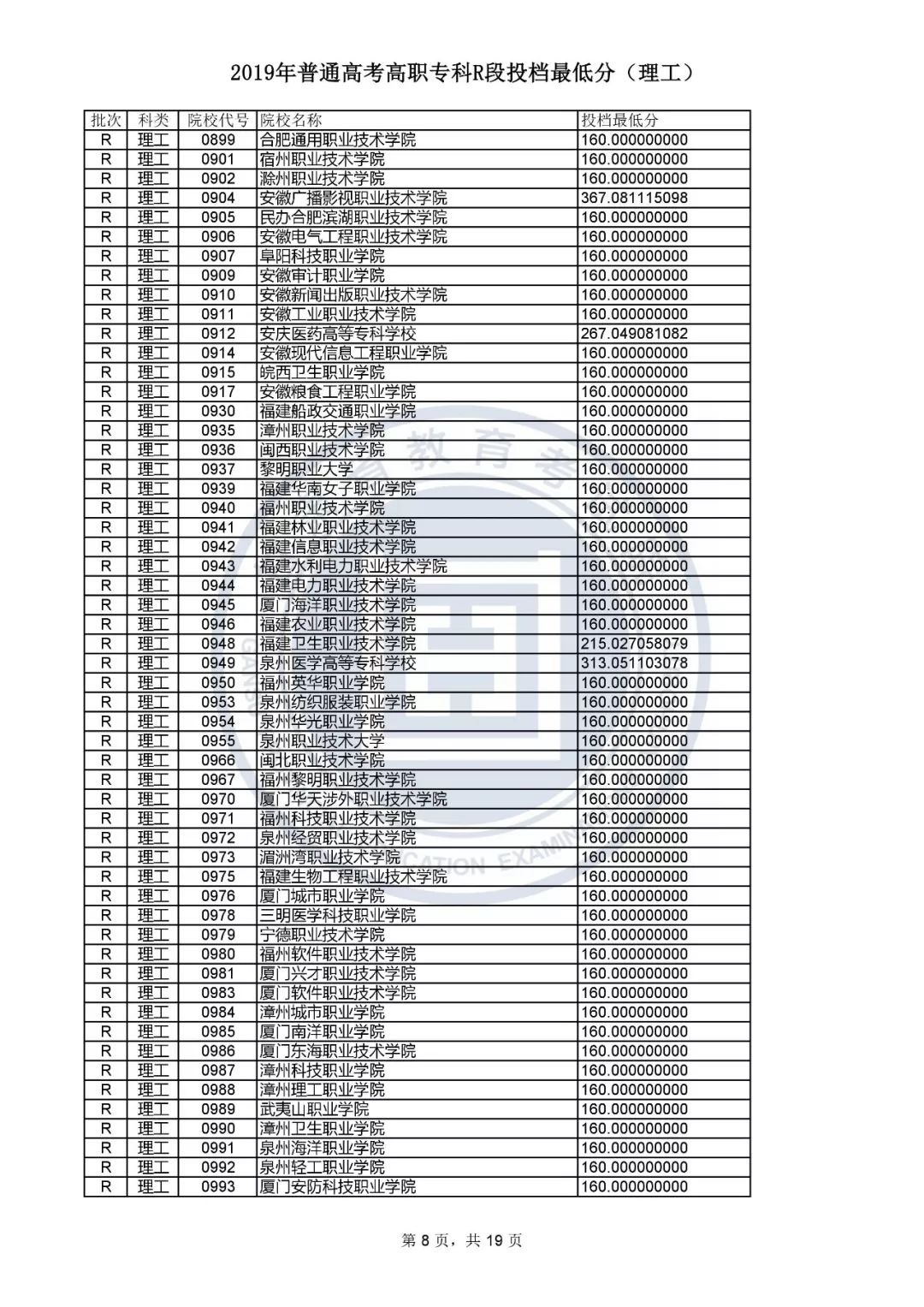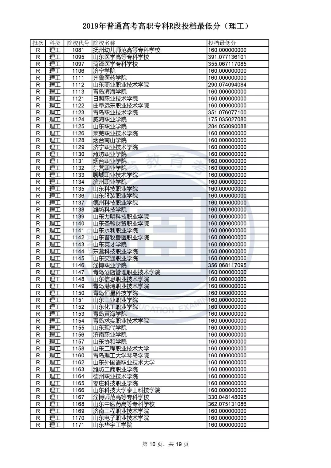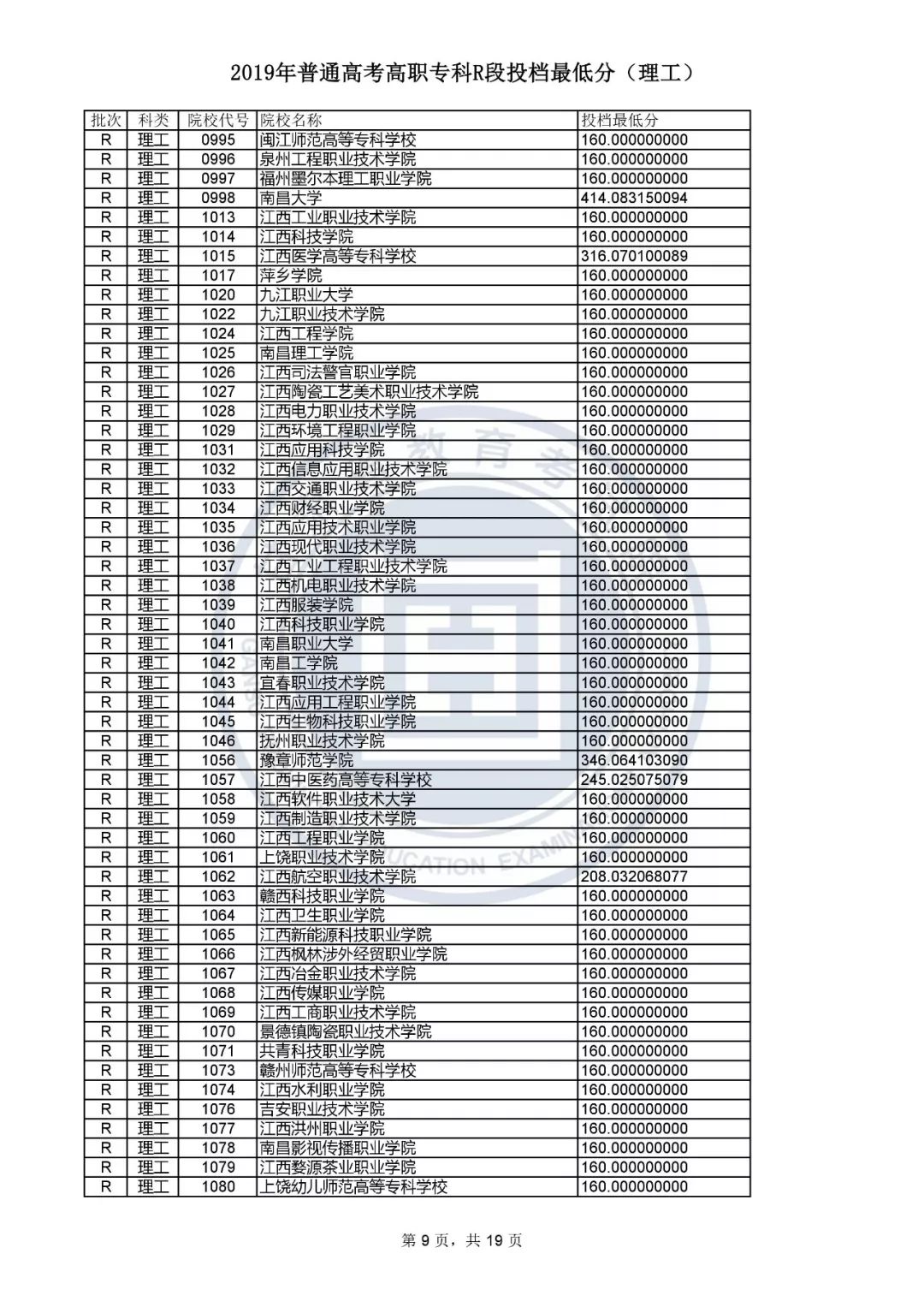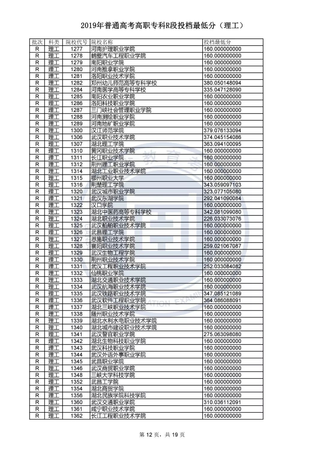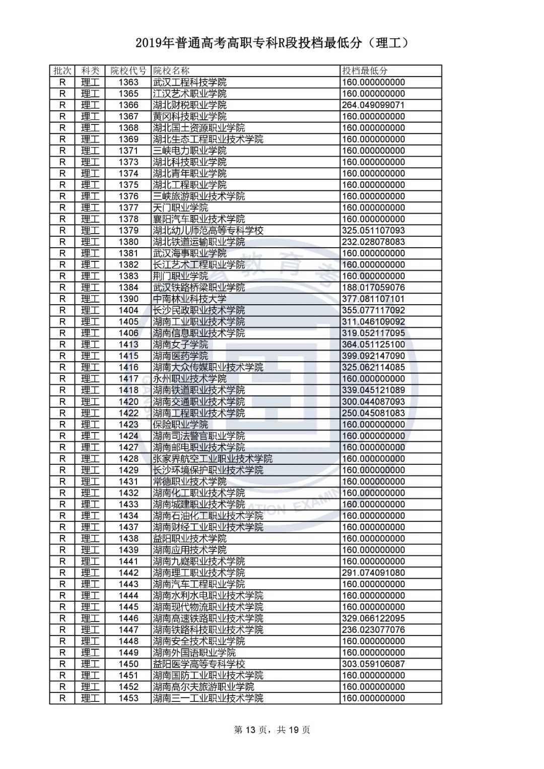 2019甘肃高职(专科)R段投档最低分(理工类)