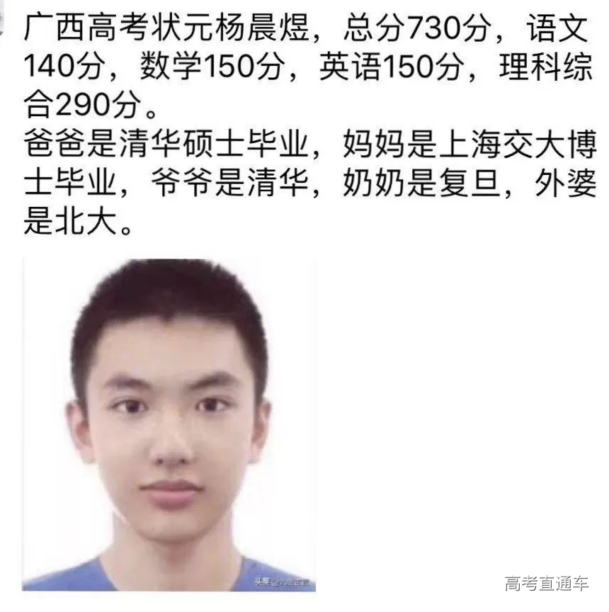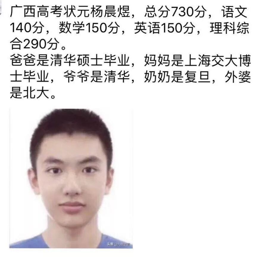 杨晨煜称,高考成绩是努力的结果,并非运气或来自“学霸之家”,是自己扎扎实实学出来的。家人对成绩很满意,但并不想太张扬。对于网上所言家人均是名校出身,“都是谣言,我爸我妈都毕业于广西本地学校,奶奶没有上过大学。”