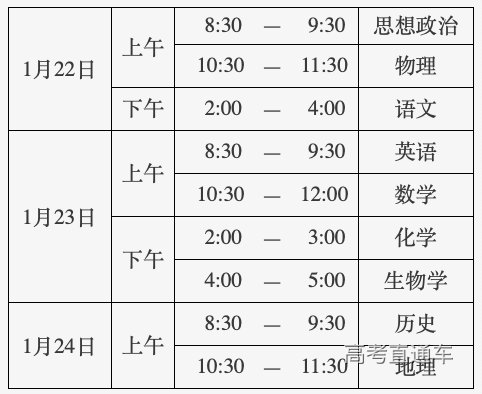 3.考试时间:2026年1月22日至24日。