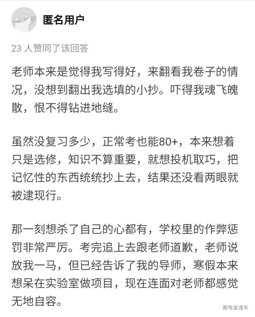 问答网站上网友关于作弊问题的回答