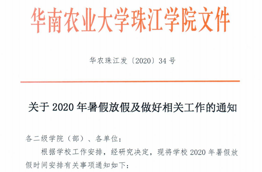 学生放假安排 一 7月18日(星期六)至8月31日(星期一)为放假时间。 二 9月1日至9月6日,根据疫情防控情况,计划分学院、分年级、分批次,学生返校报到。(具体安排将另行通知)。 三 新生报到时间另行通知。 教职工放假安排 一 其他要求 一 四 六 今年的暑假有6周时间 大家享受夏日时光的同时 不要忘了要做好暑期规划哦