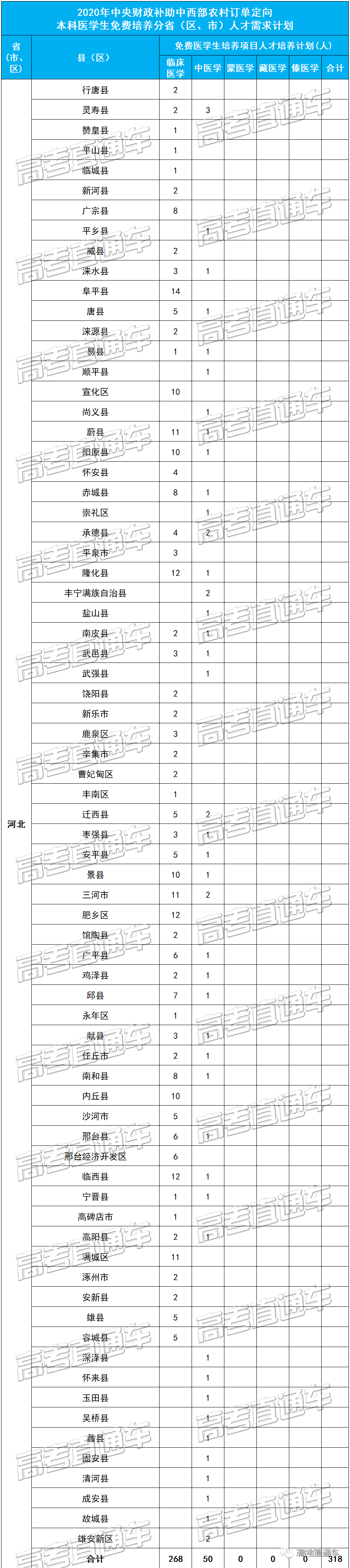 附件:2020年中央财政补助中西部农村订单定向本科医学生免费培养分省(区、市)人才需求计划