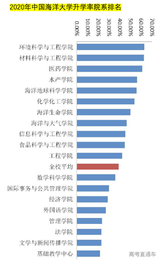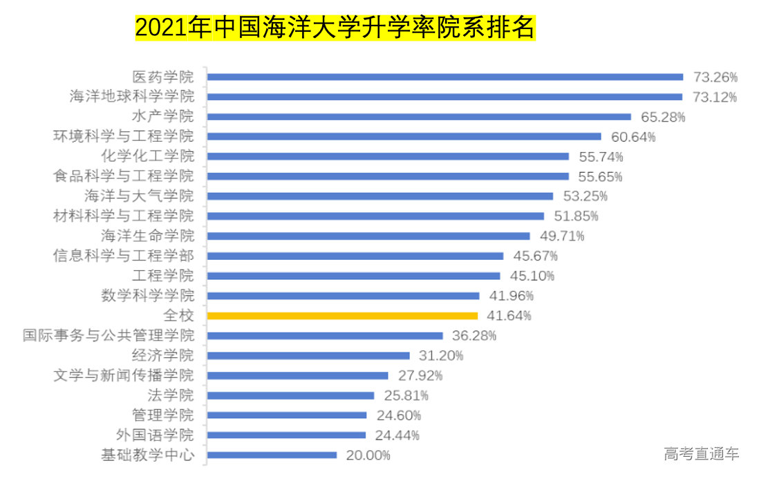 所以,中国海大41.64%的本科升学率,和你没有太大的关系,真正有关系的是你的专业升学率,你的学院升学率。