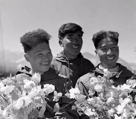 三位登顶英雄,从右至左:王富洲,贡布、屈银华