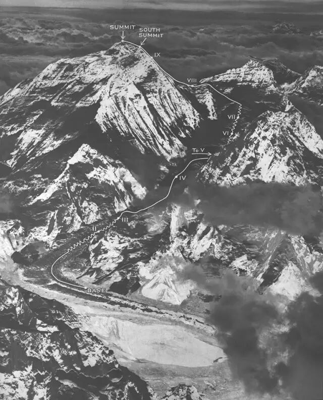 1953年5月29日,39岁的尼泊尔向导丹增•诺盖,和新西兰登山家艾德蒙•希拉里,从南坡登顶珠峰,成为历史上第一支成功登顶的队伍。
