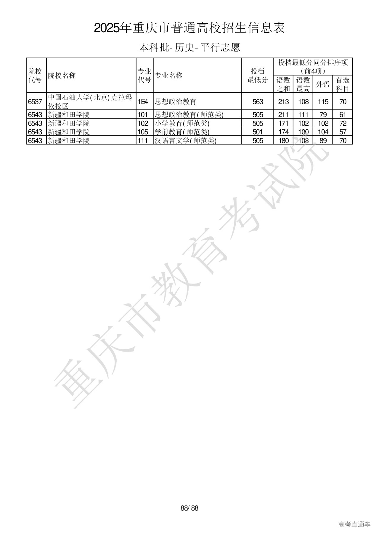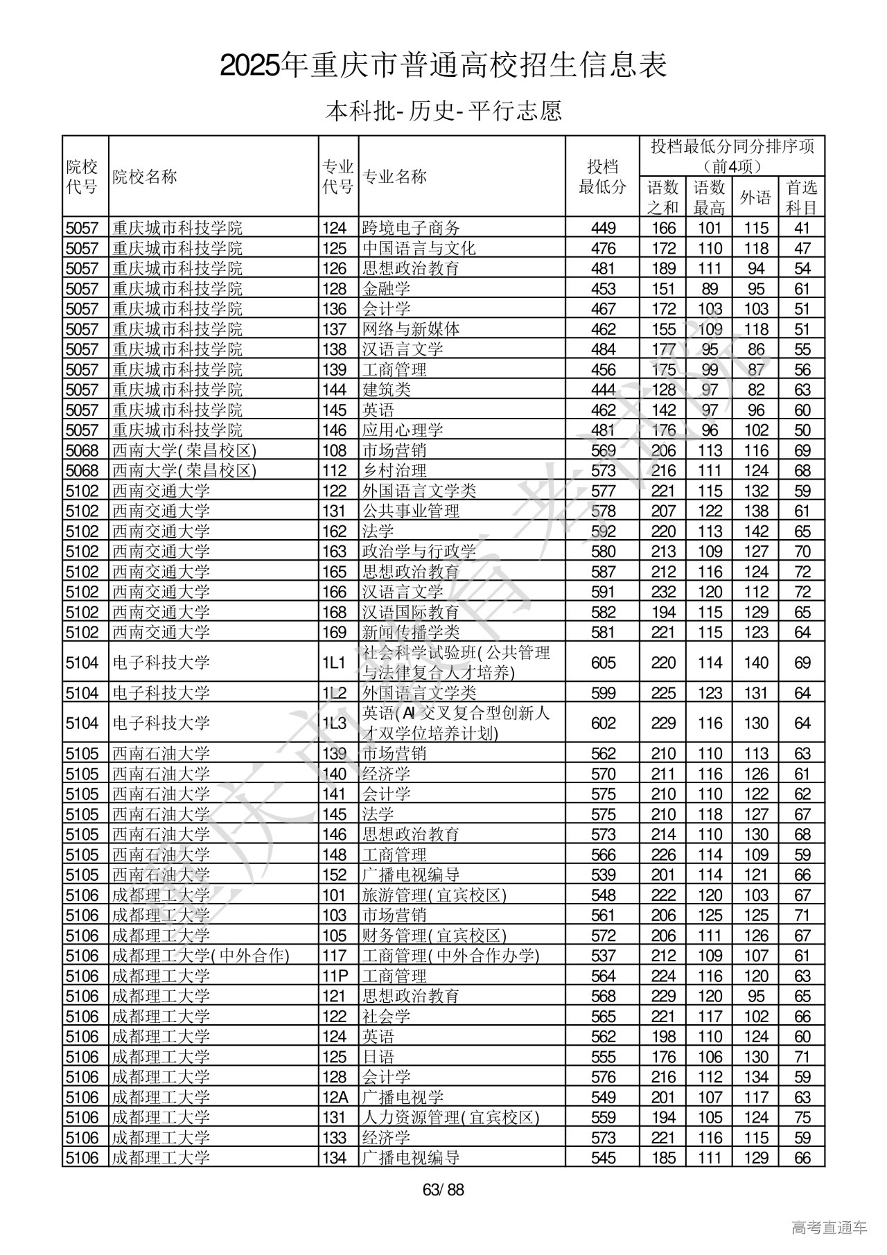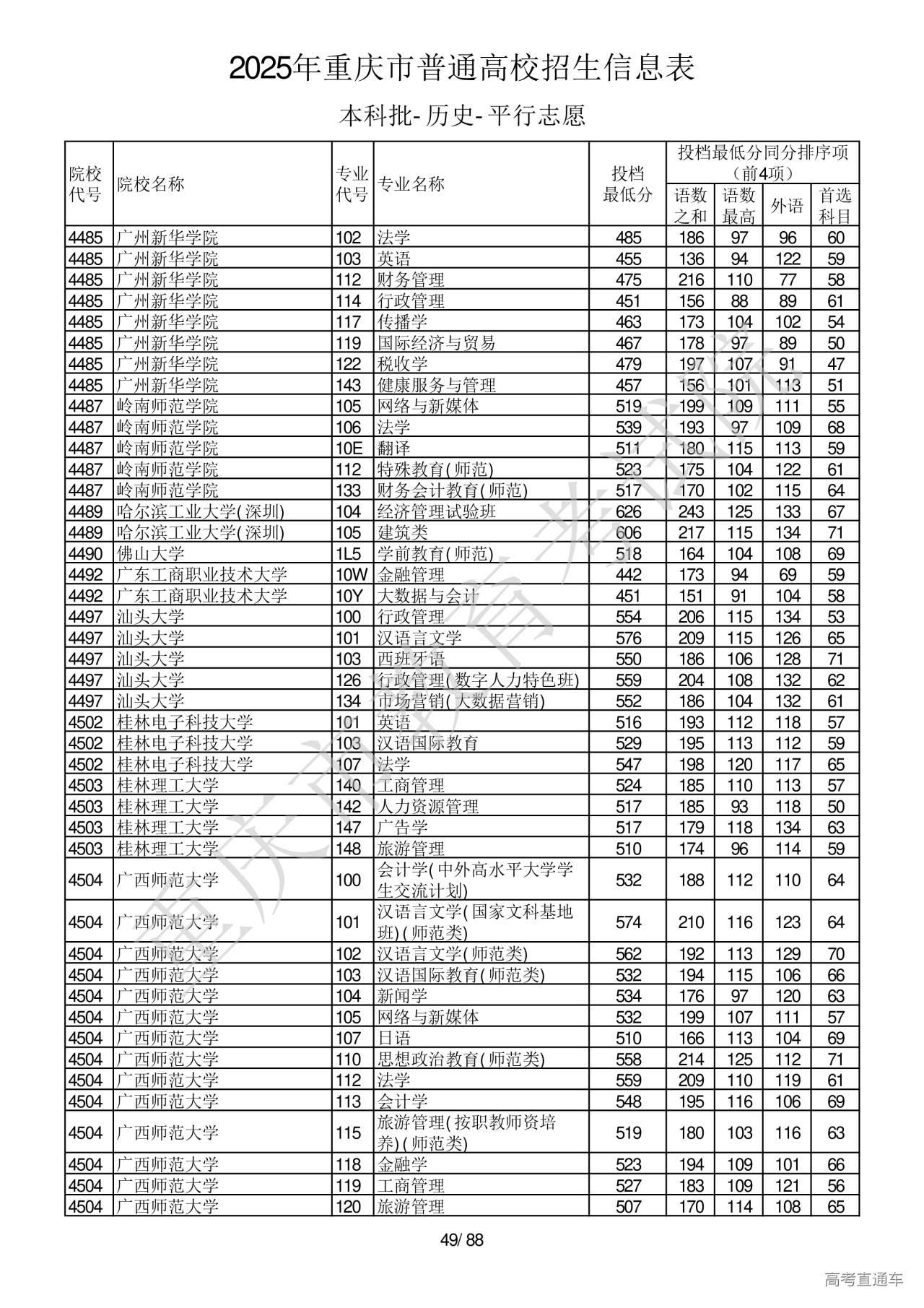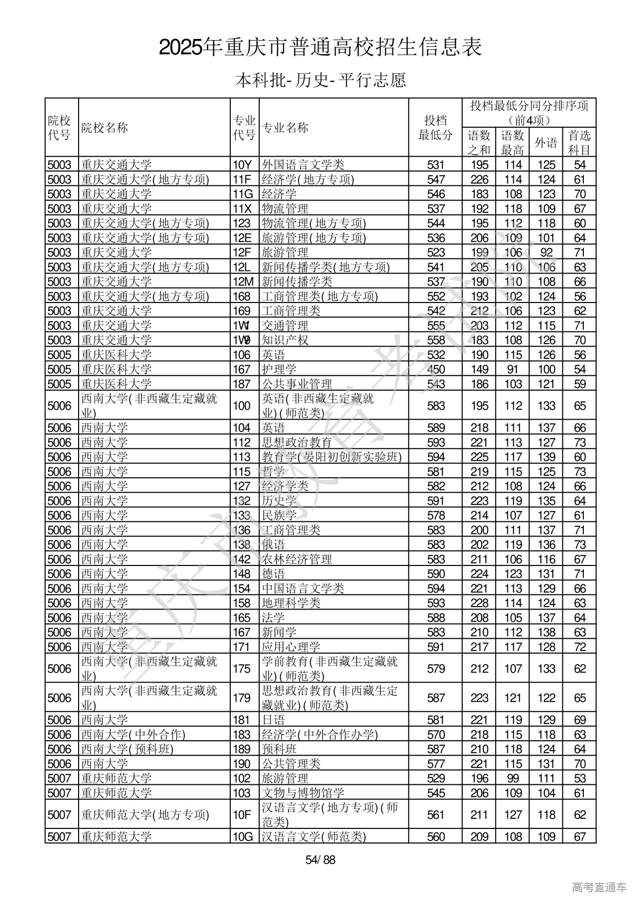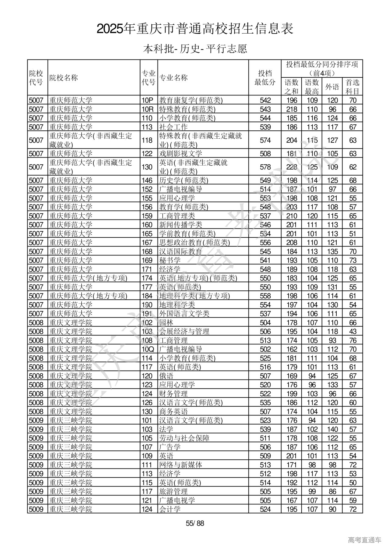 2025年重庆市普通高校招生信息表本科批-历史-平行志愿.pdf