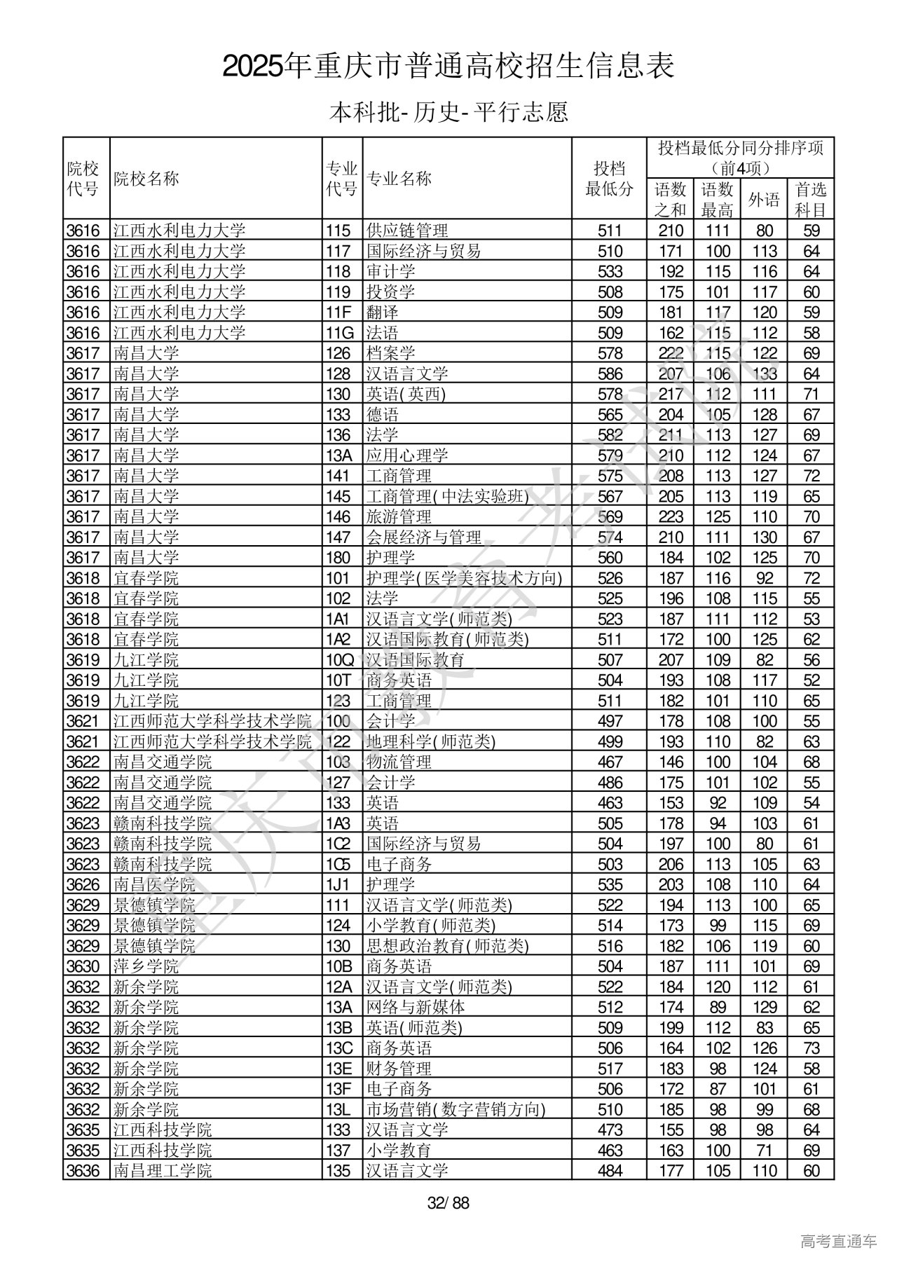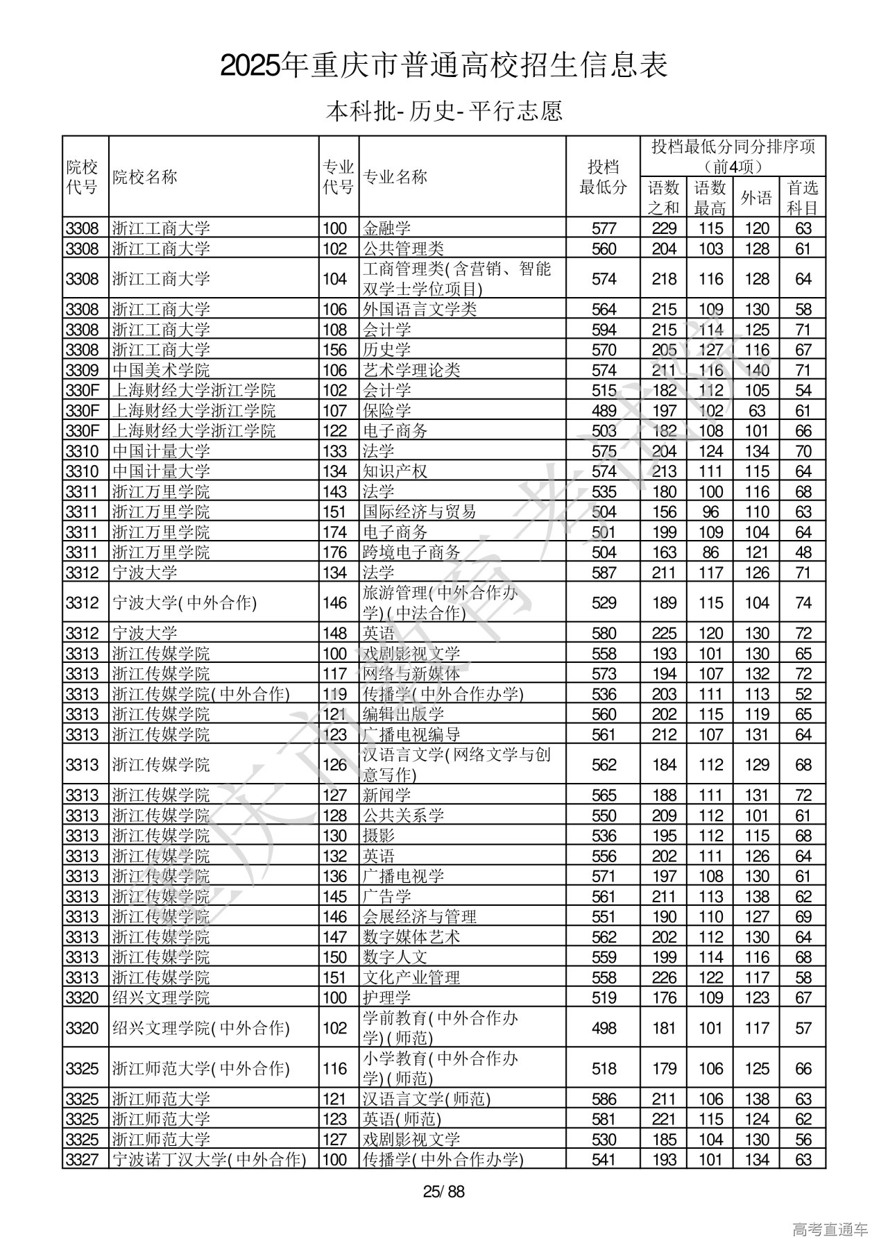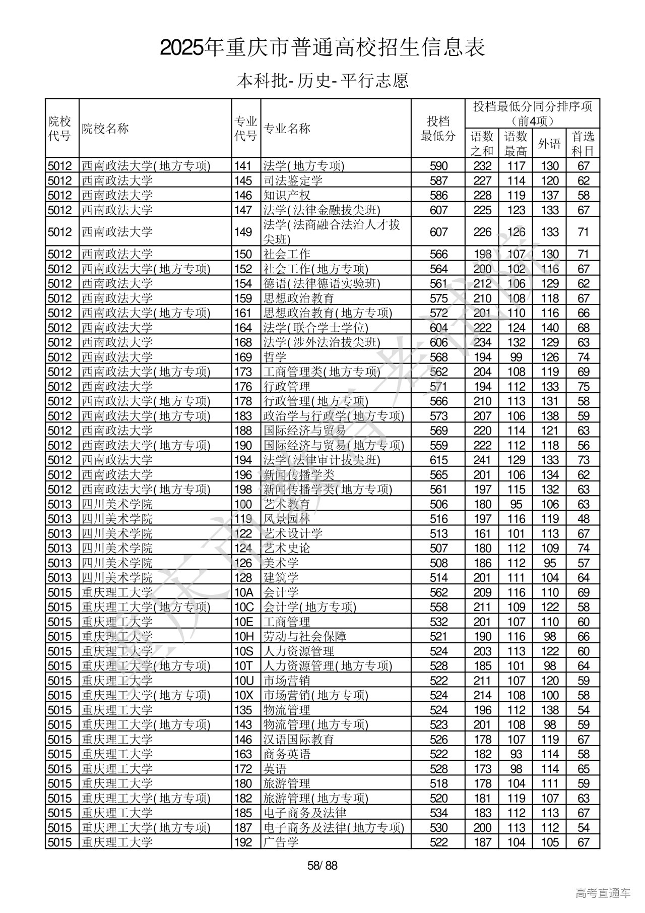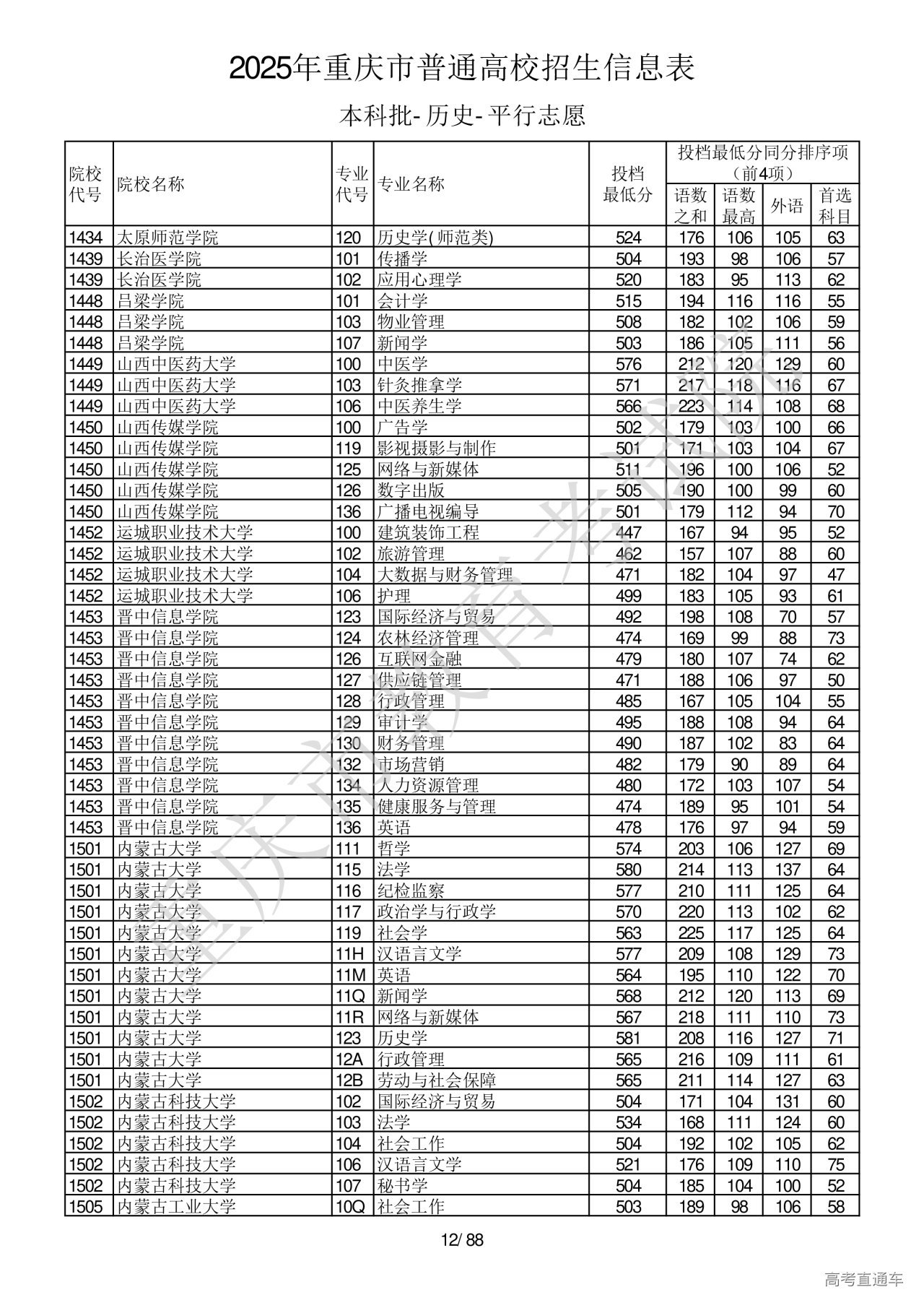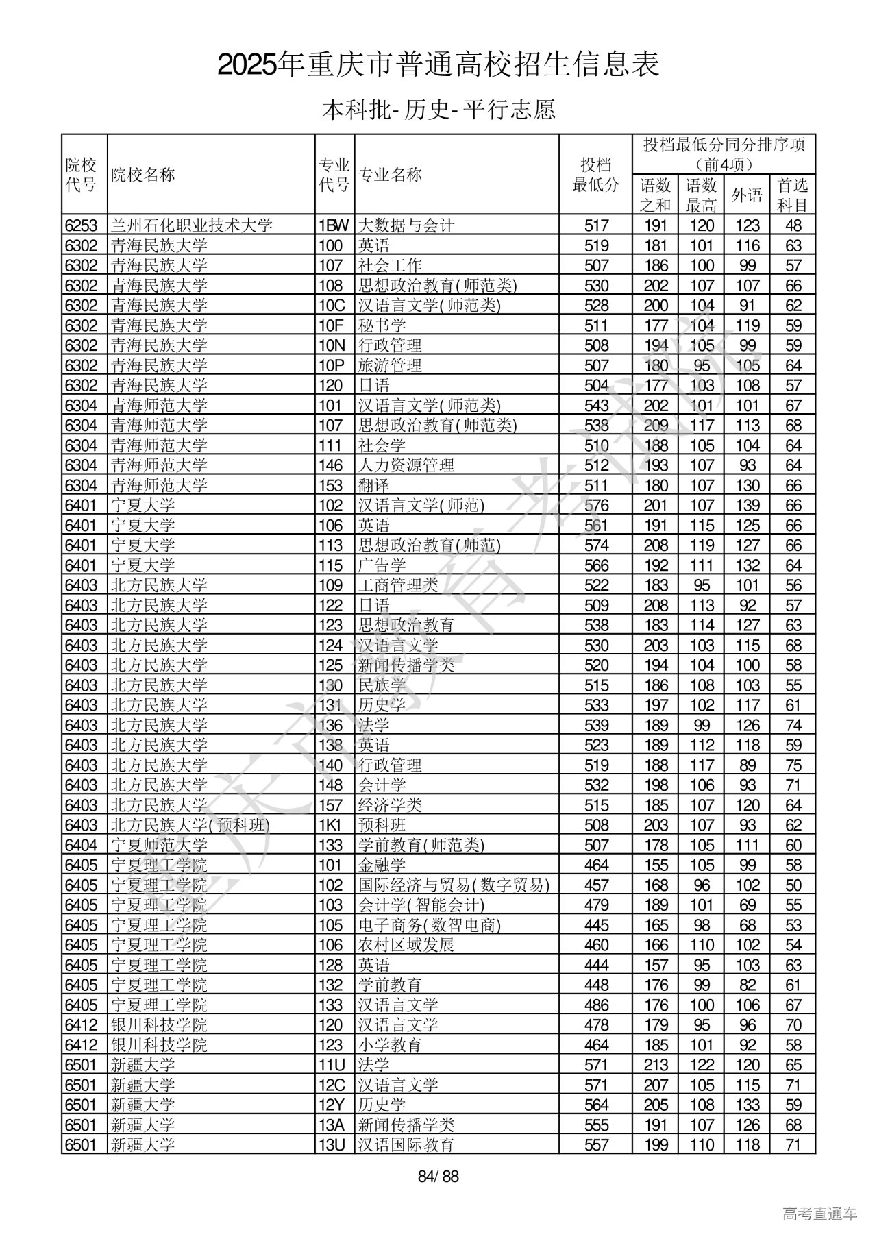 2025年重庆市普通高校招生信息表本科批-历史-平行志愿.pdf