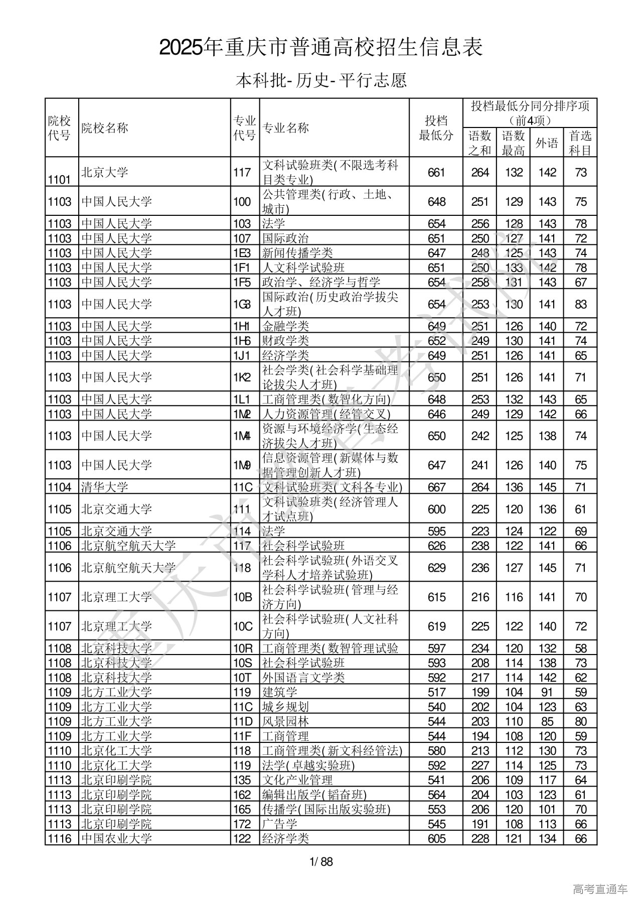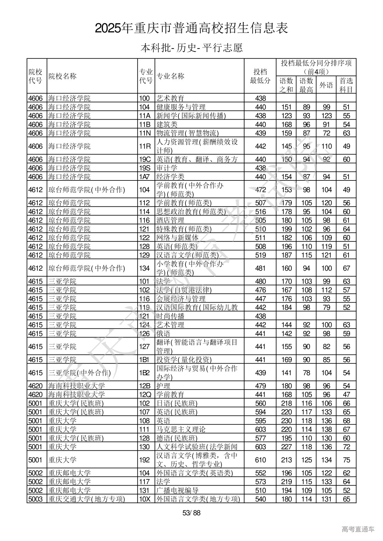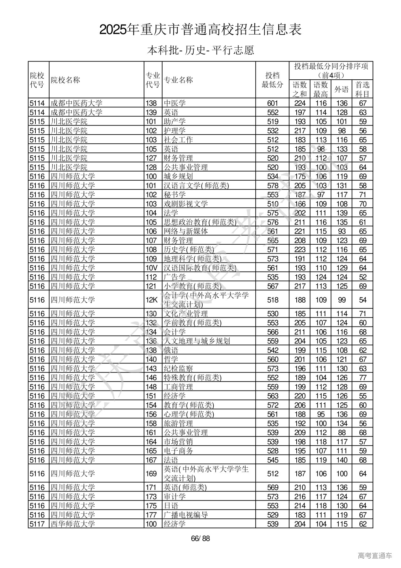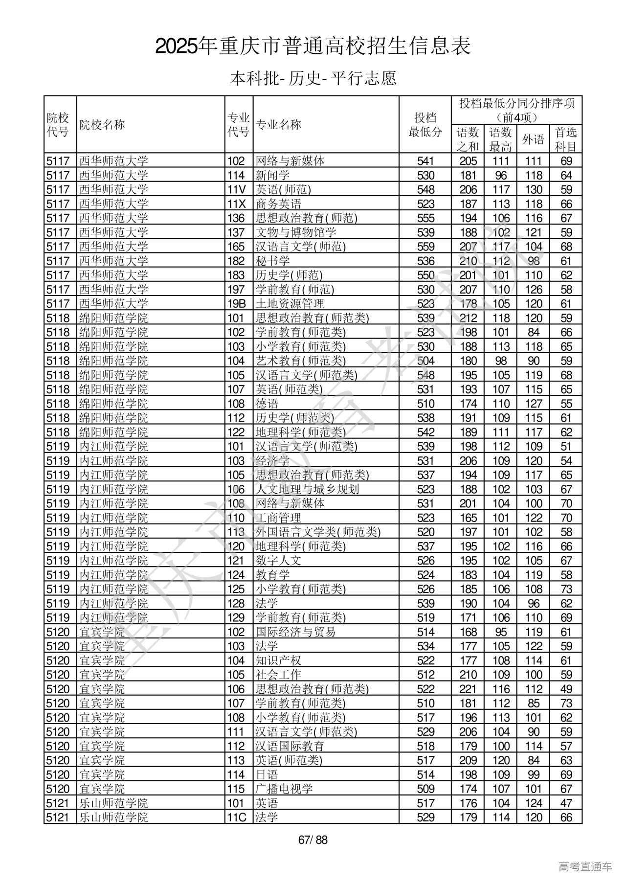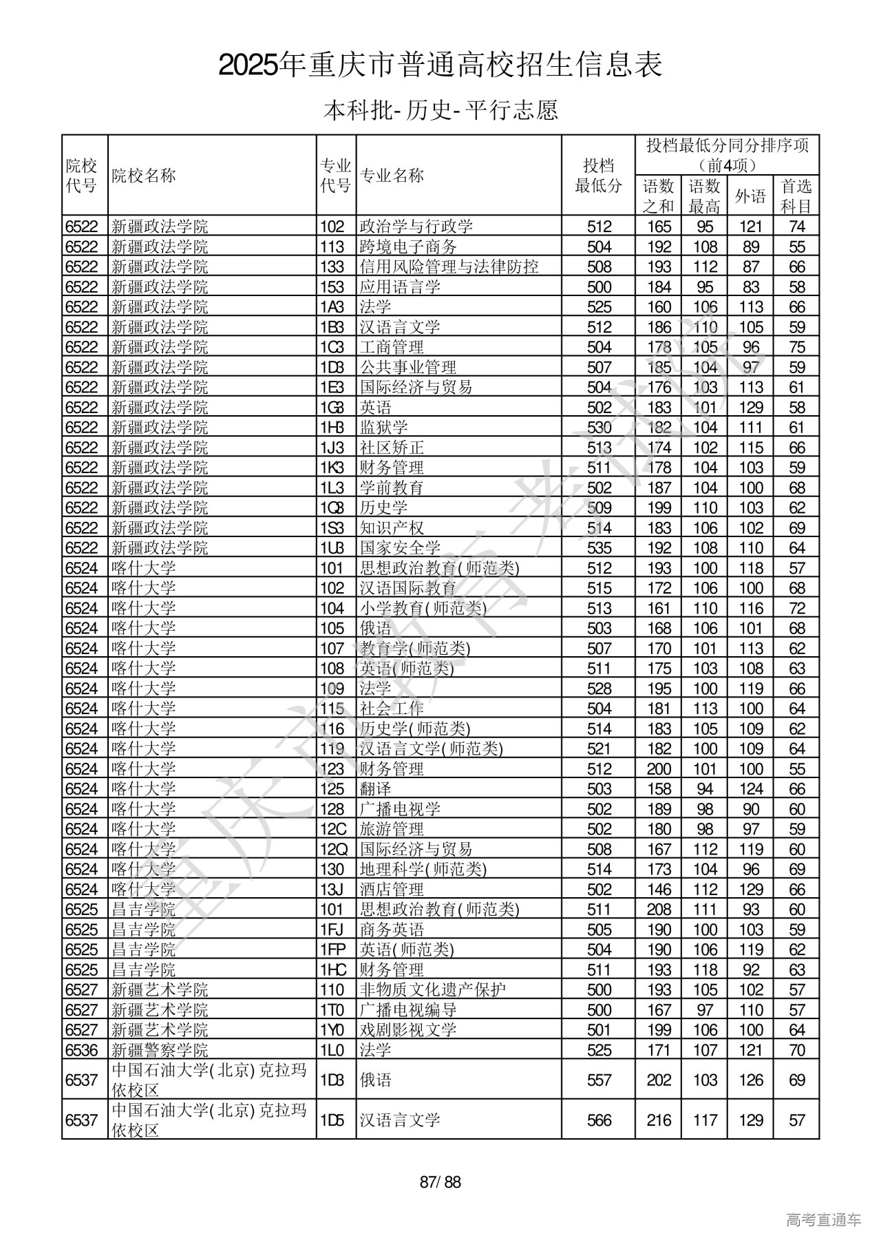 2025年重庆市普通高校招生信息表本科批-历史-平行志愿.pdf