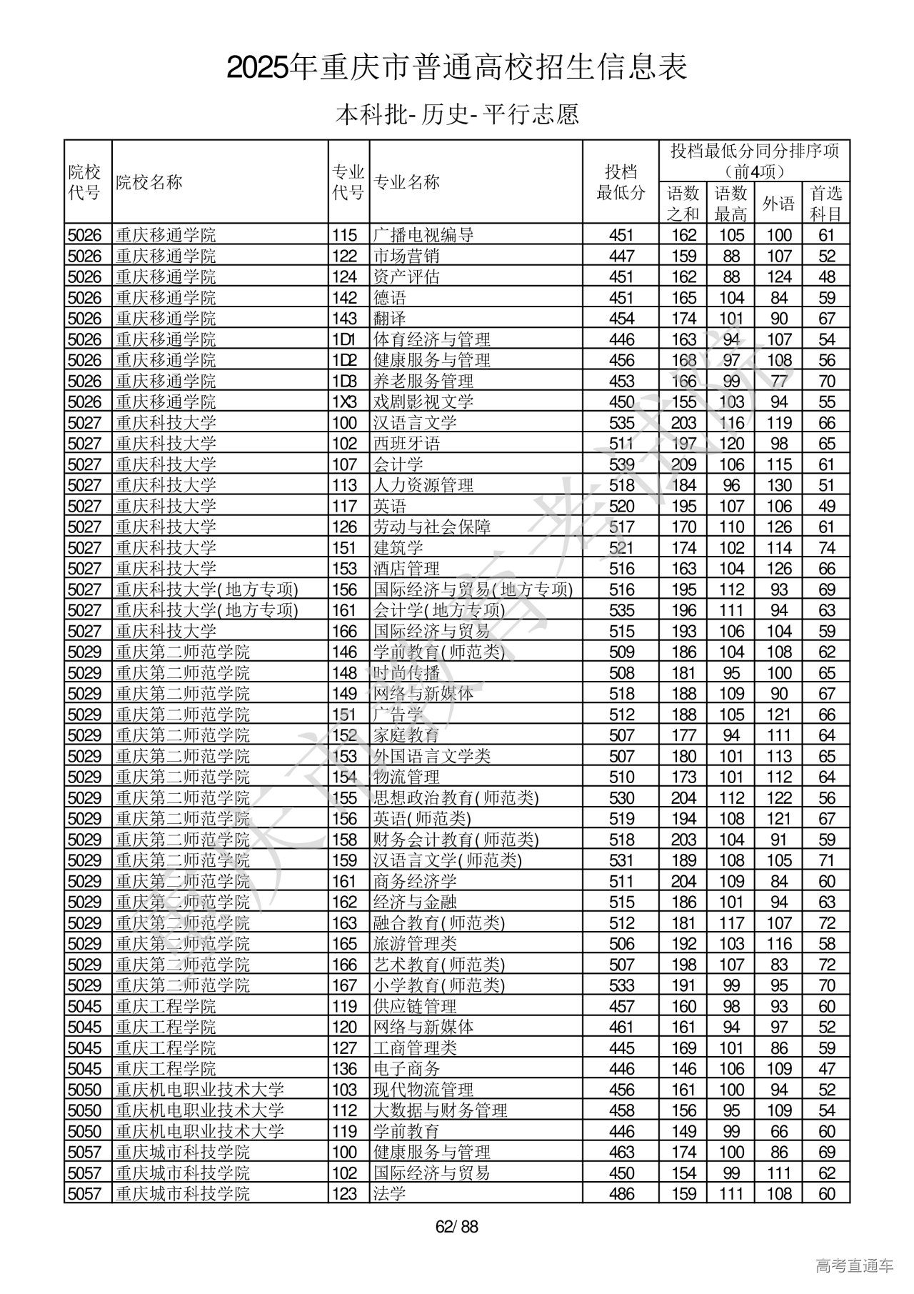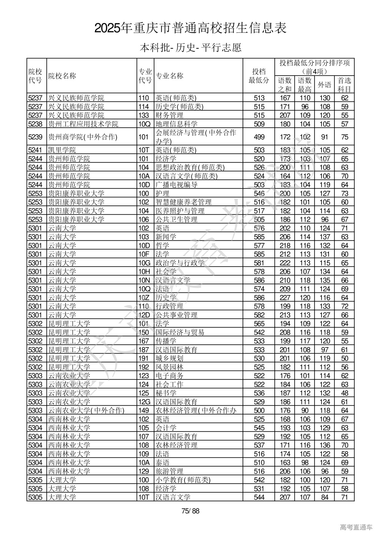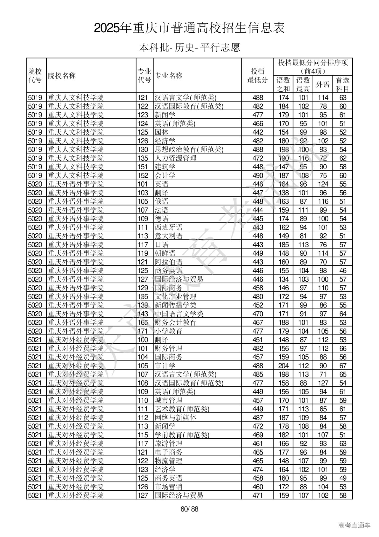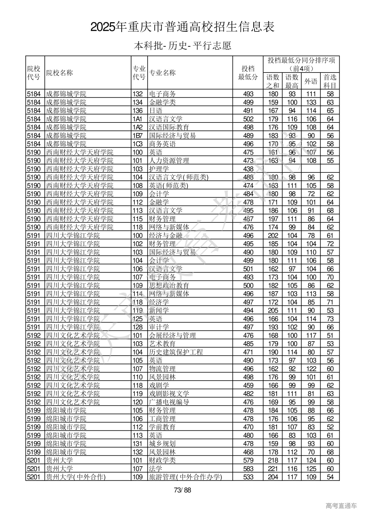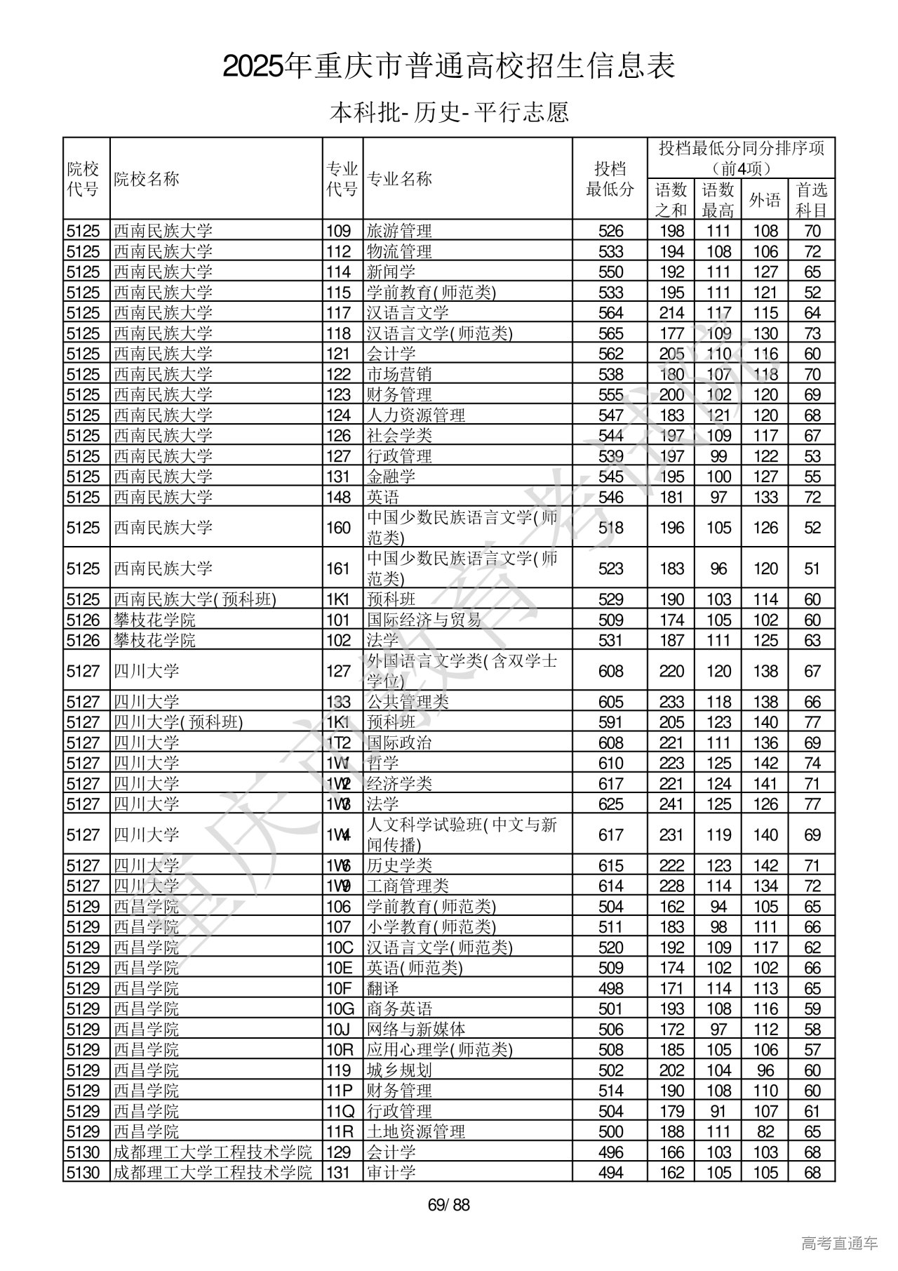 2025年重庆市普通高校招生信息表本科批-历史-平行志愿.pdf