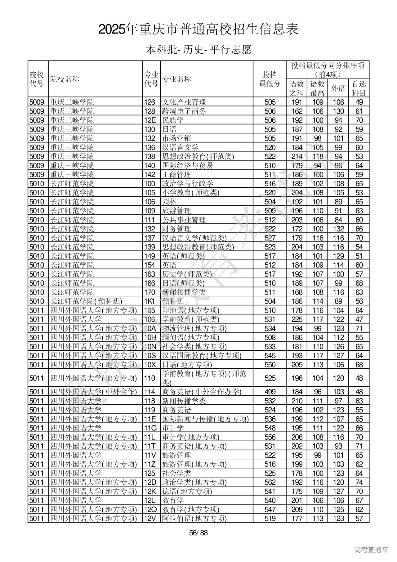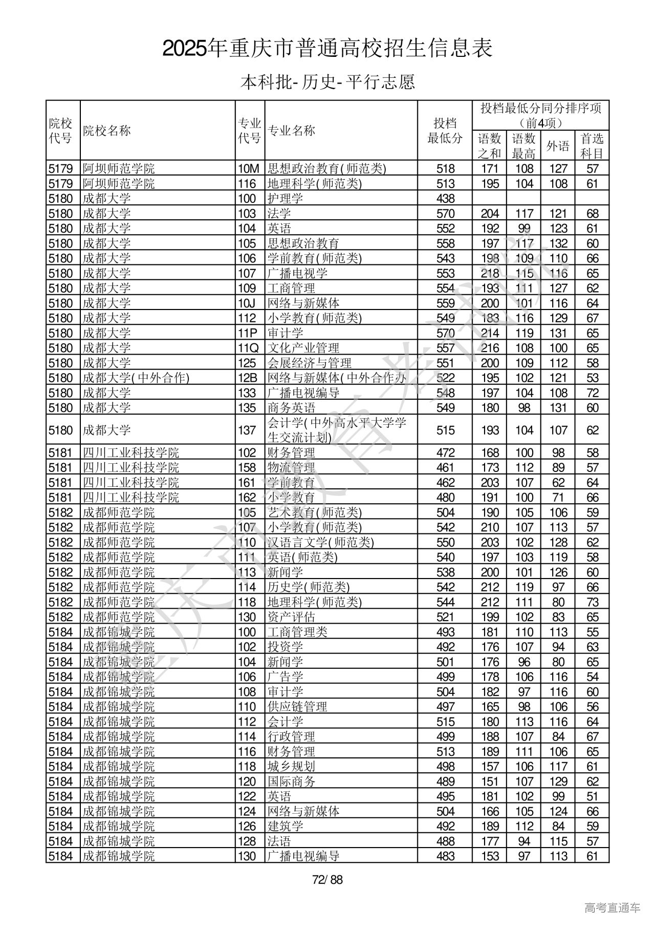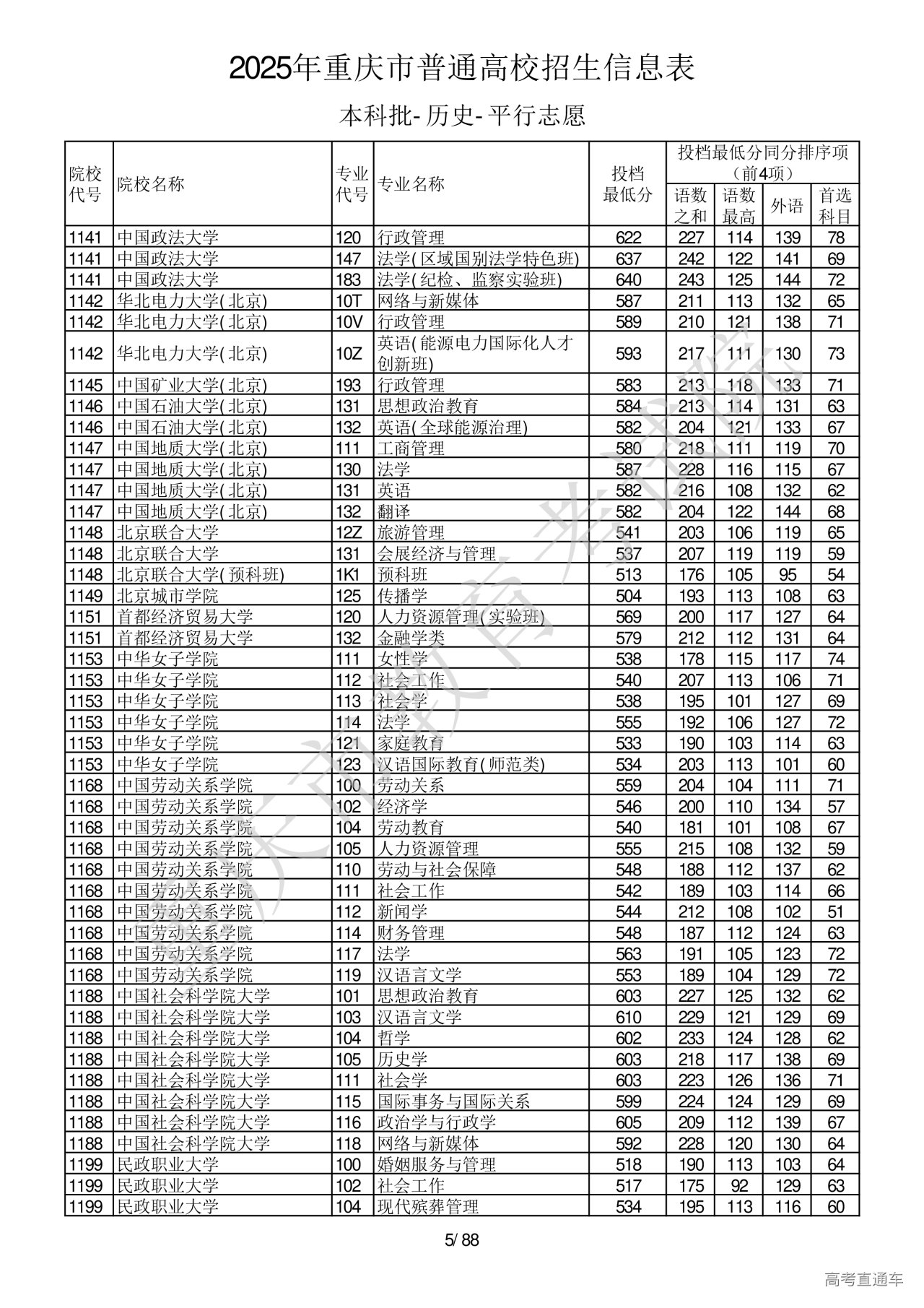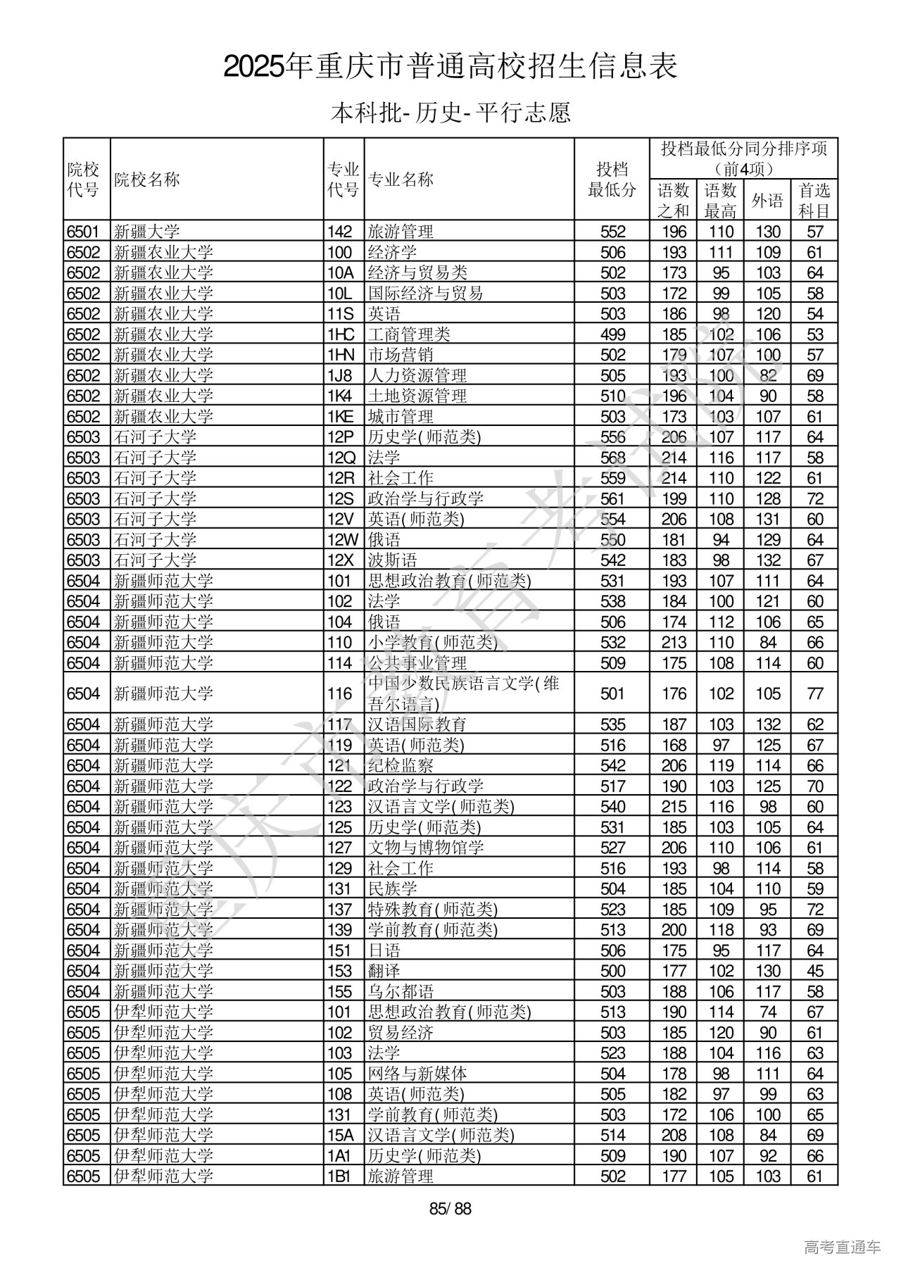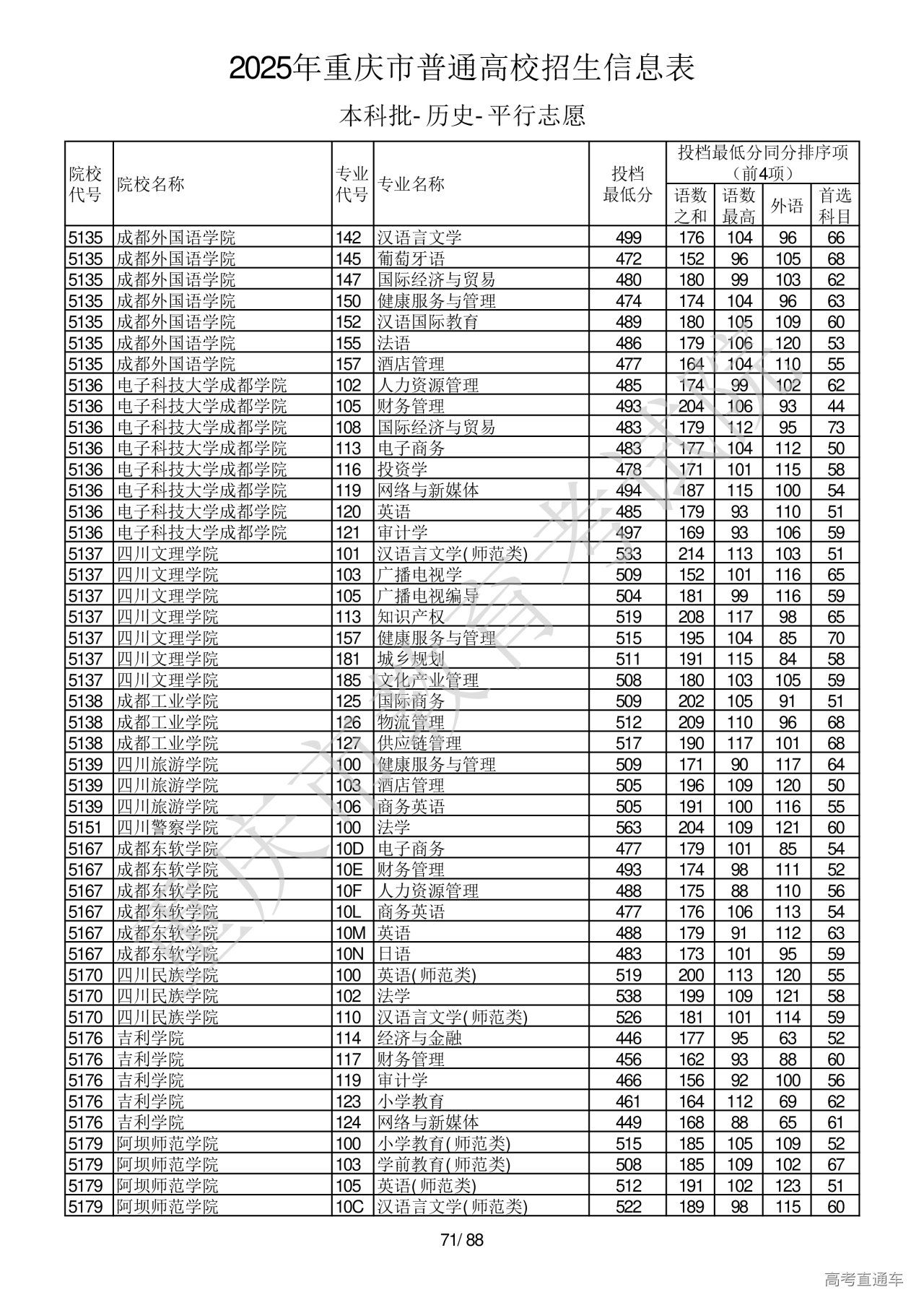 2025年重庆市普通高校招生信息表本科批-历史-平行志愿.pdf
