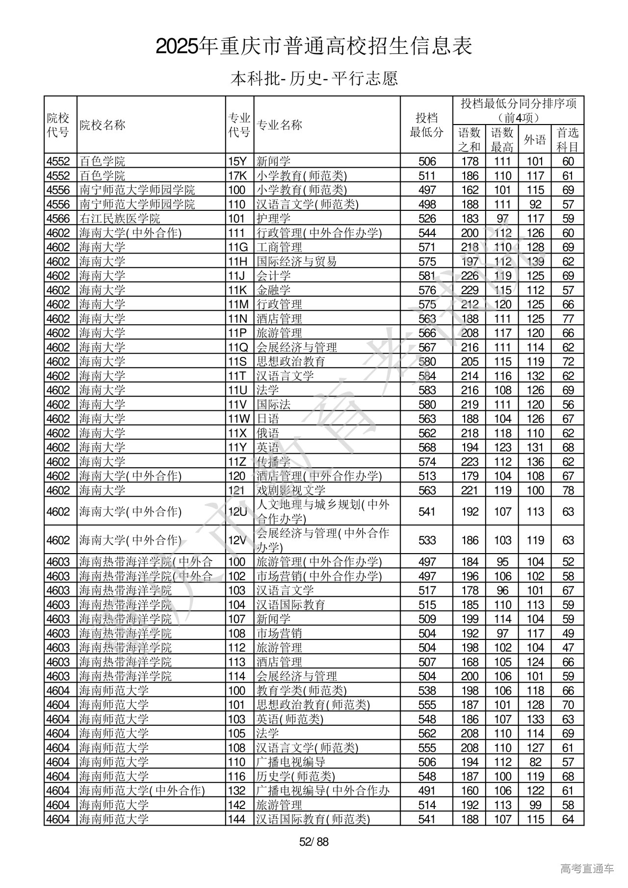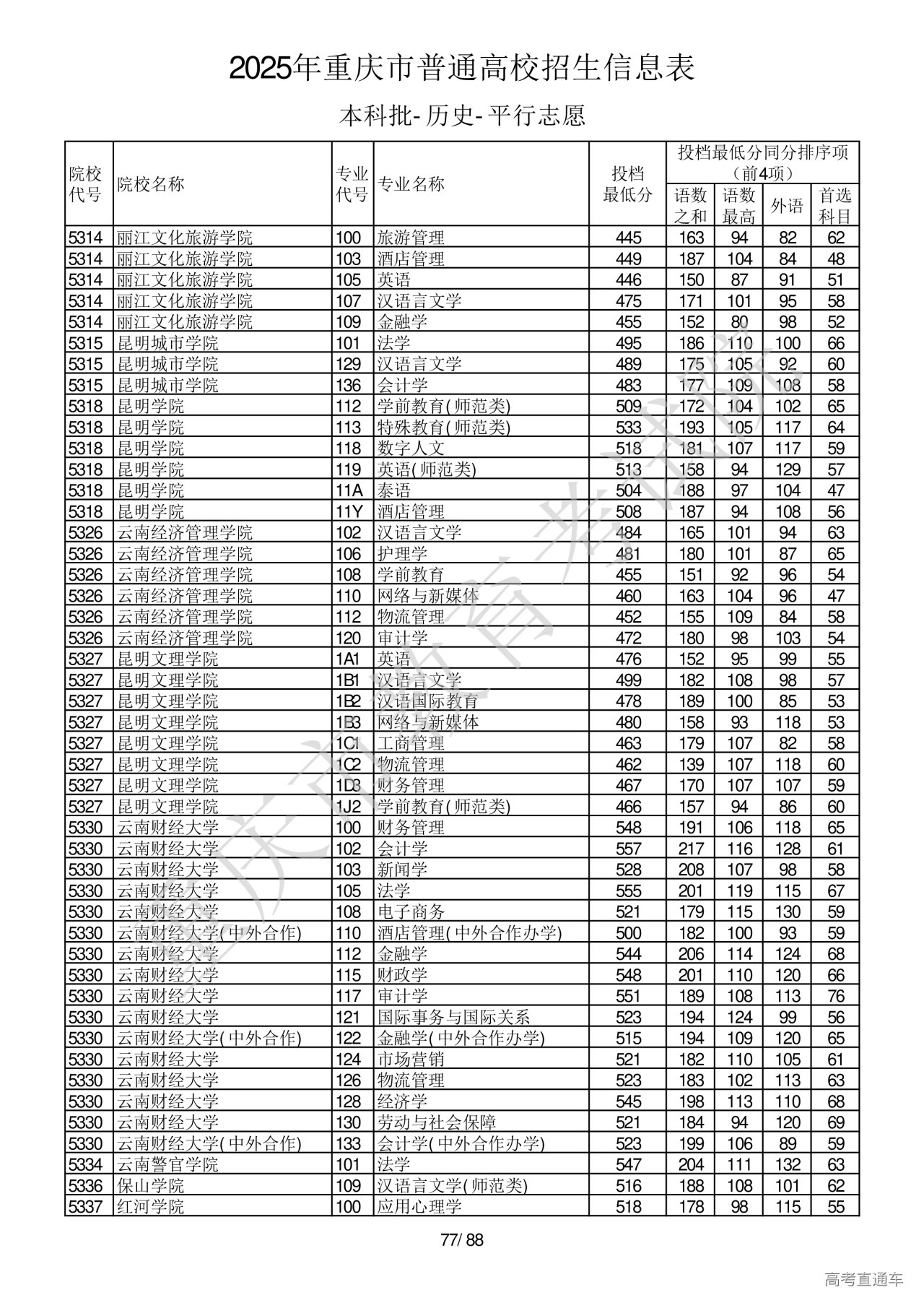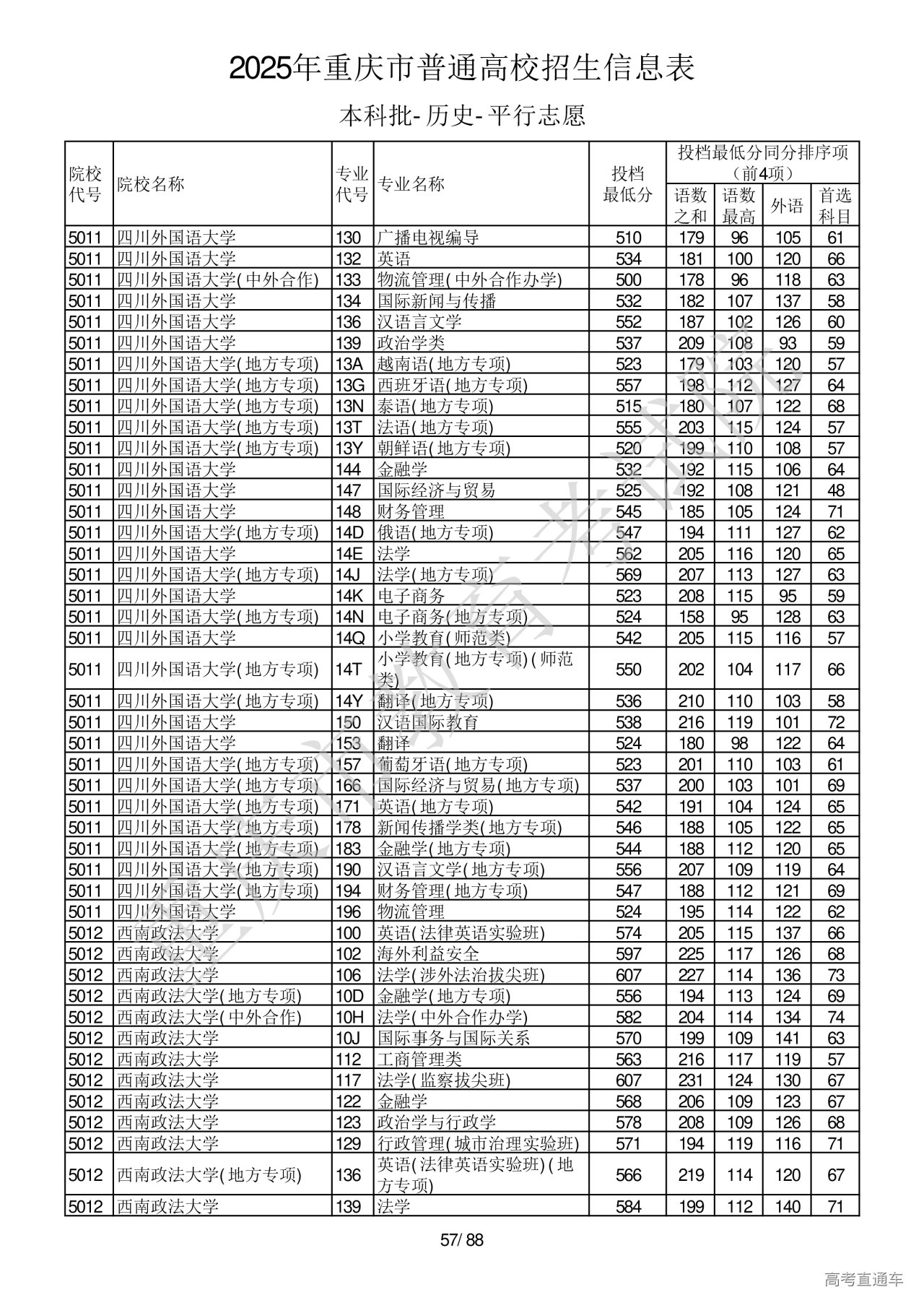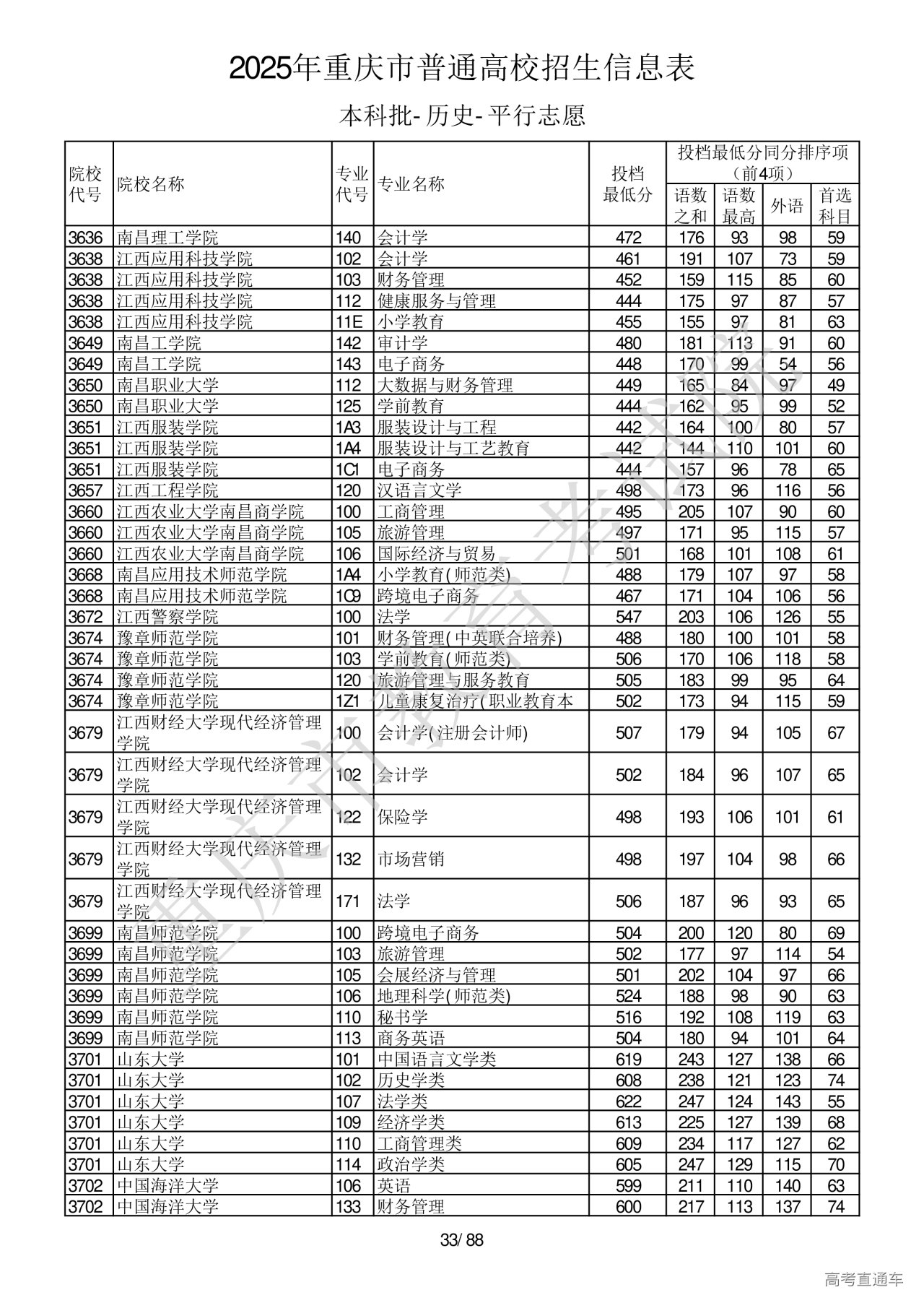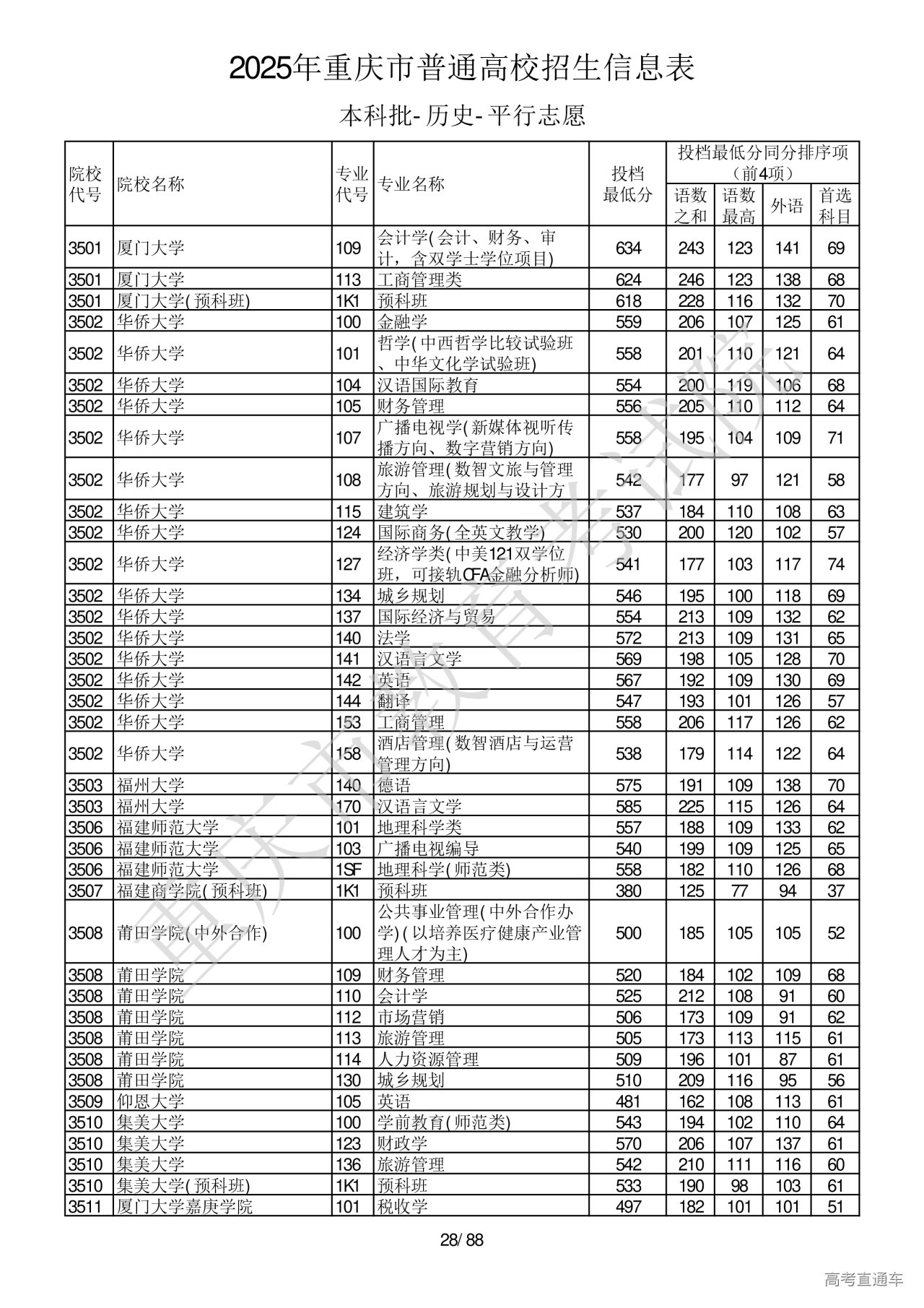 2025年重庆市普通高校招生信息表本科批-历史-平行志愿.pdf