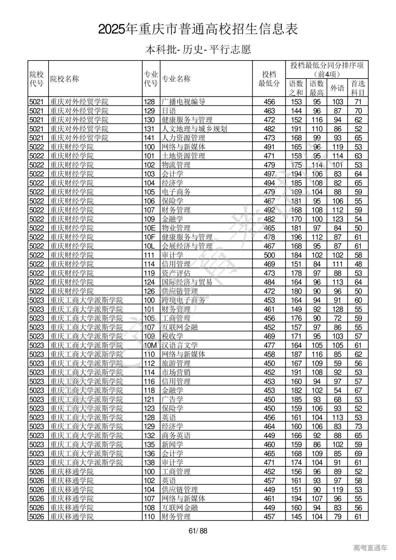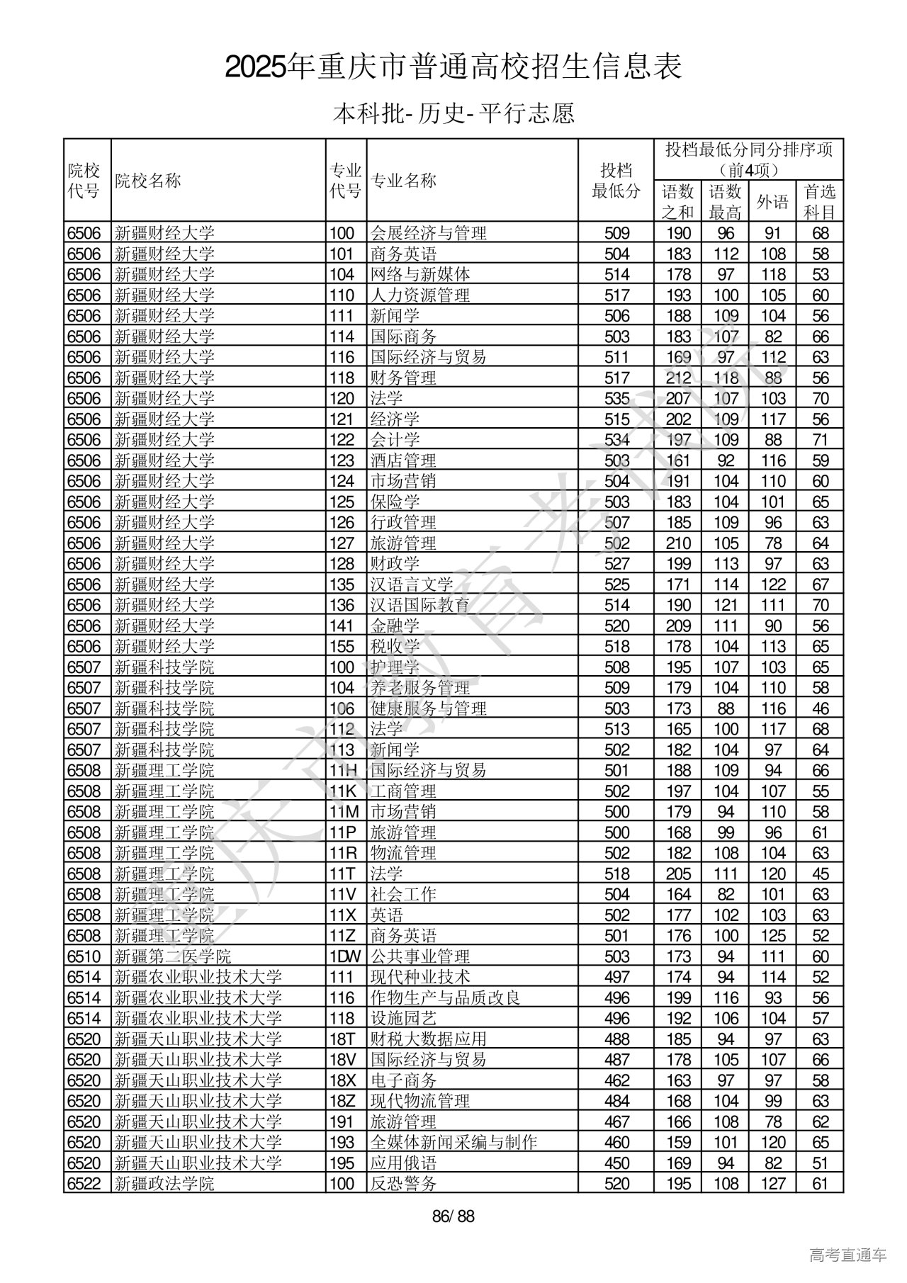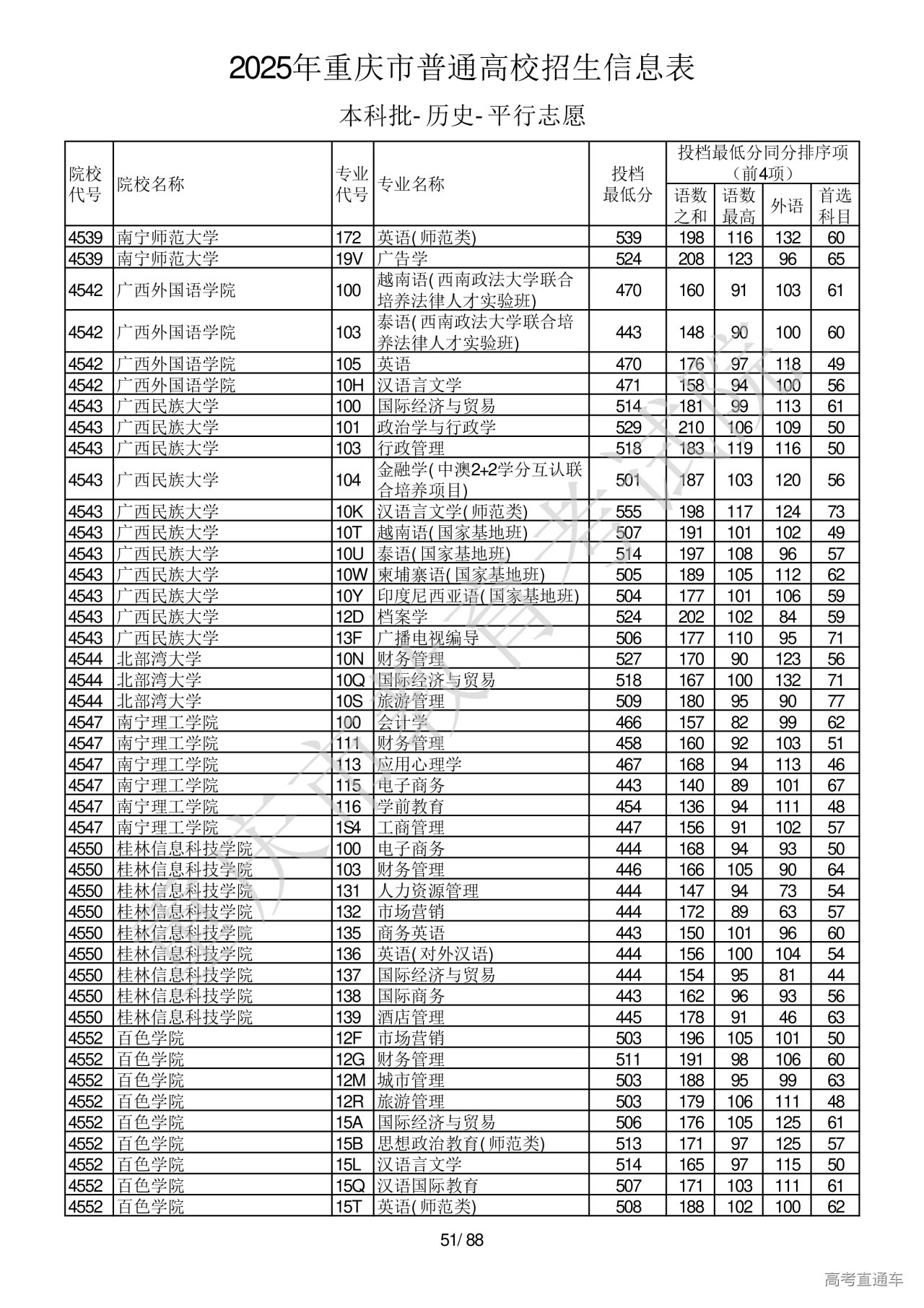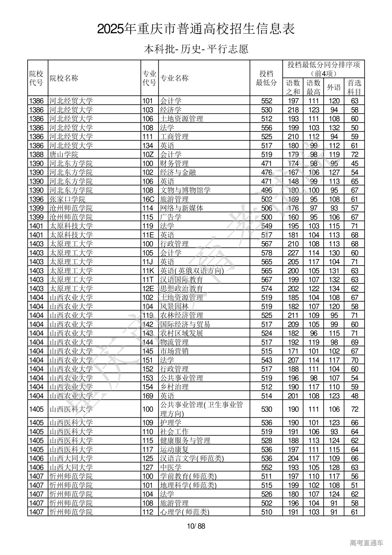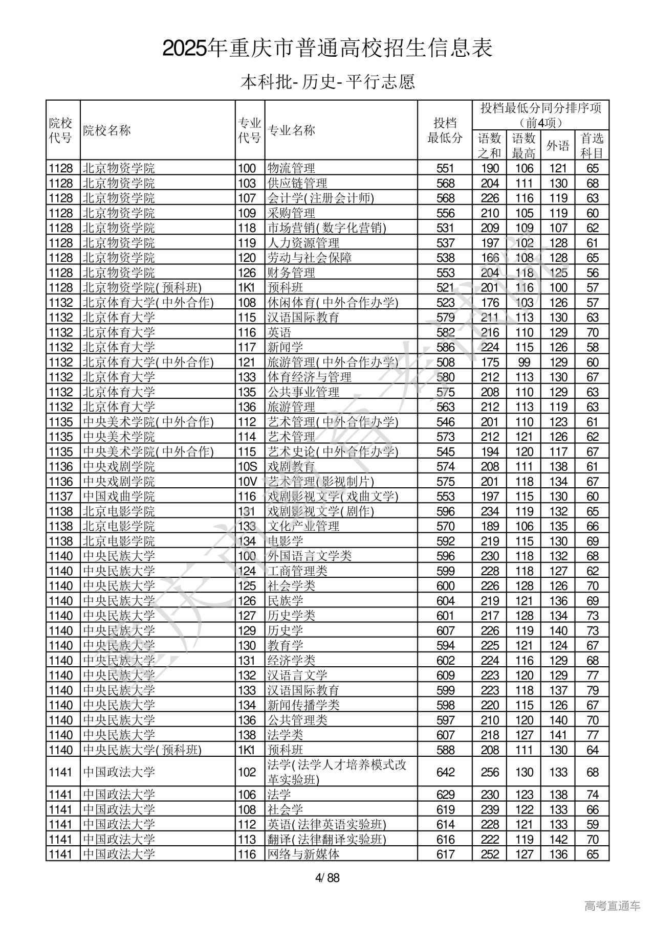 2025年重庆市普通高校招生信息表本科批-历史-平行志愿.pdf