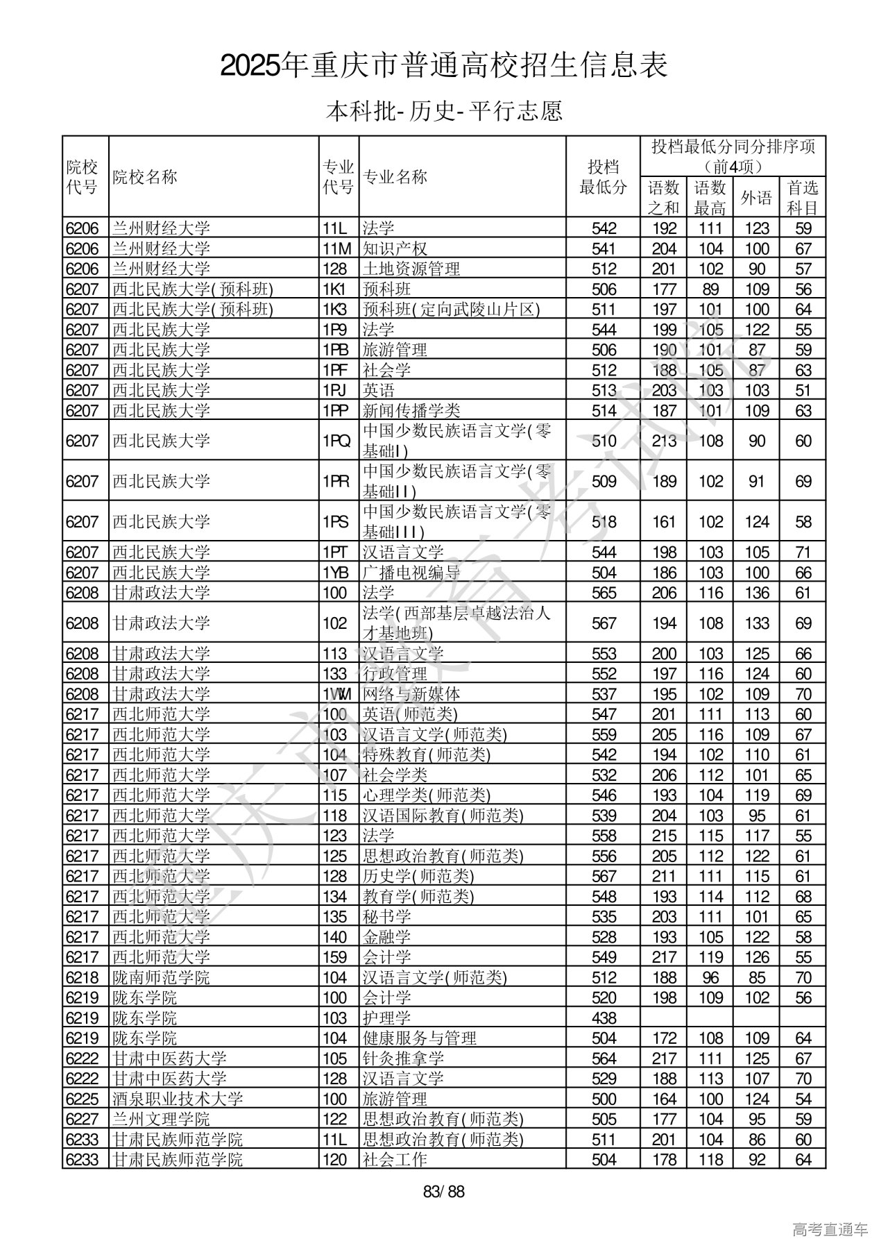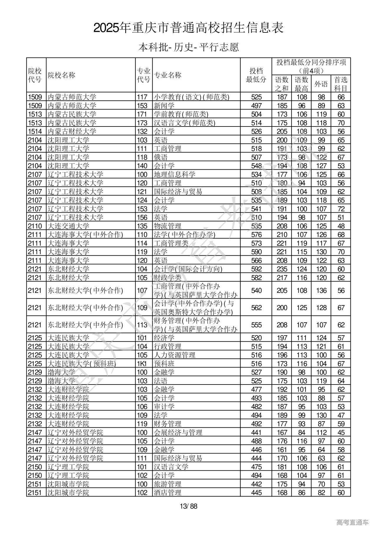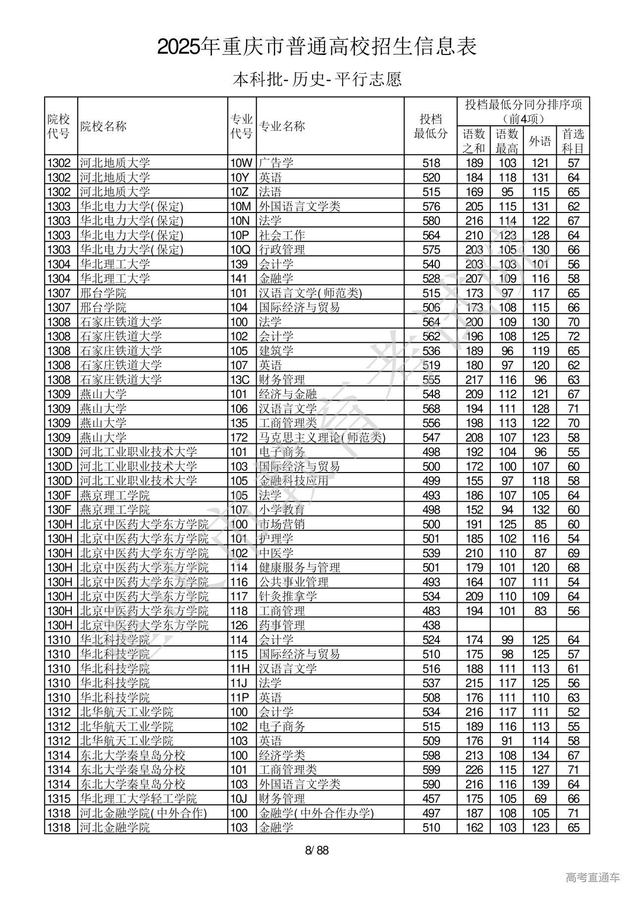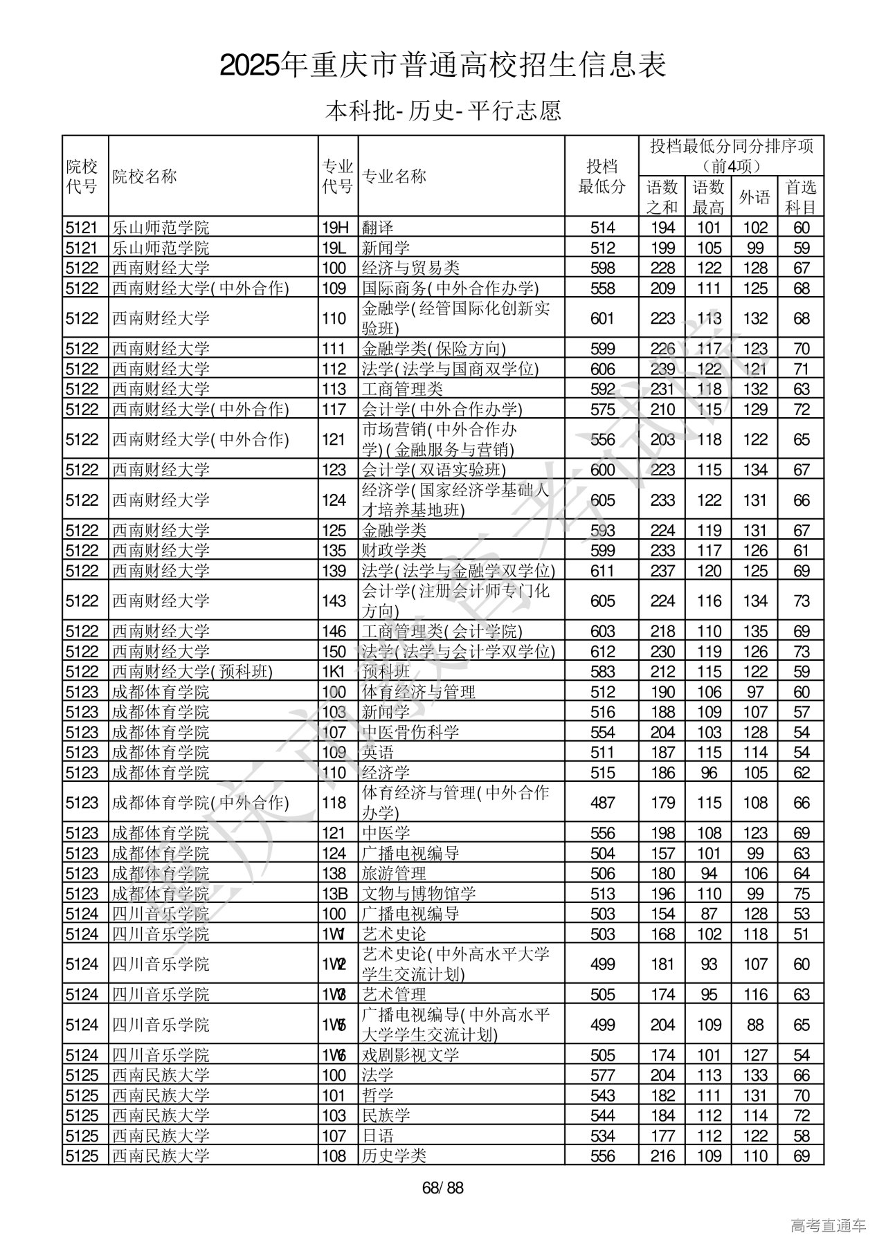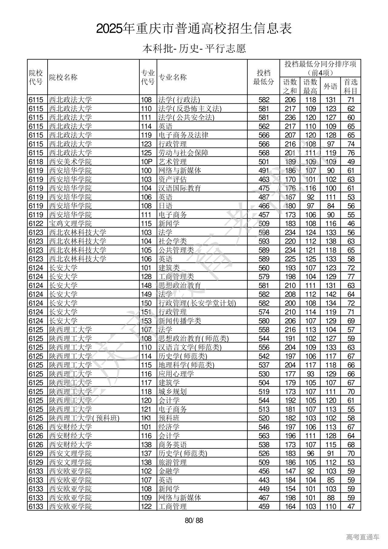 2025年重庆市普通高校招生信息表本科批-历史-平行志愿.pdf