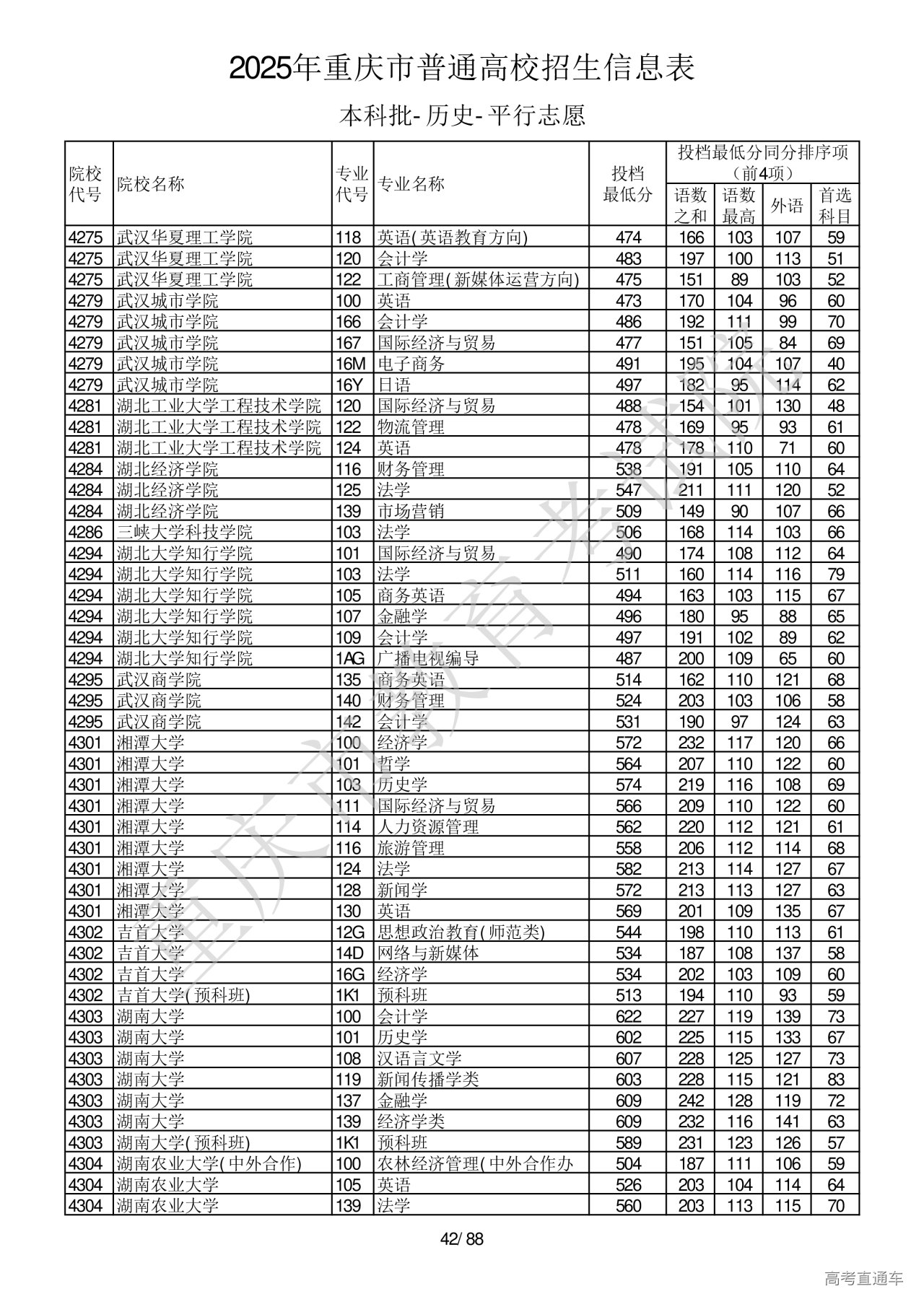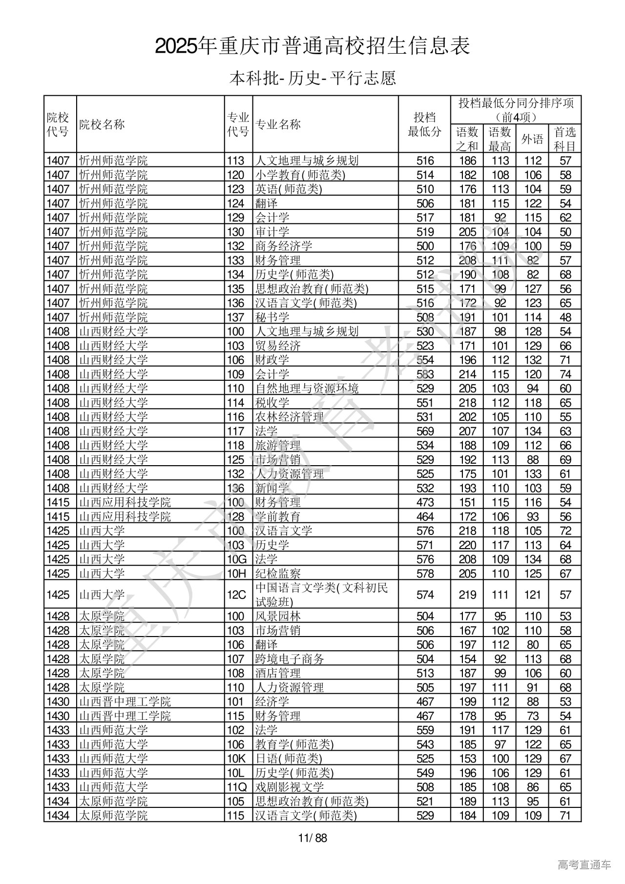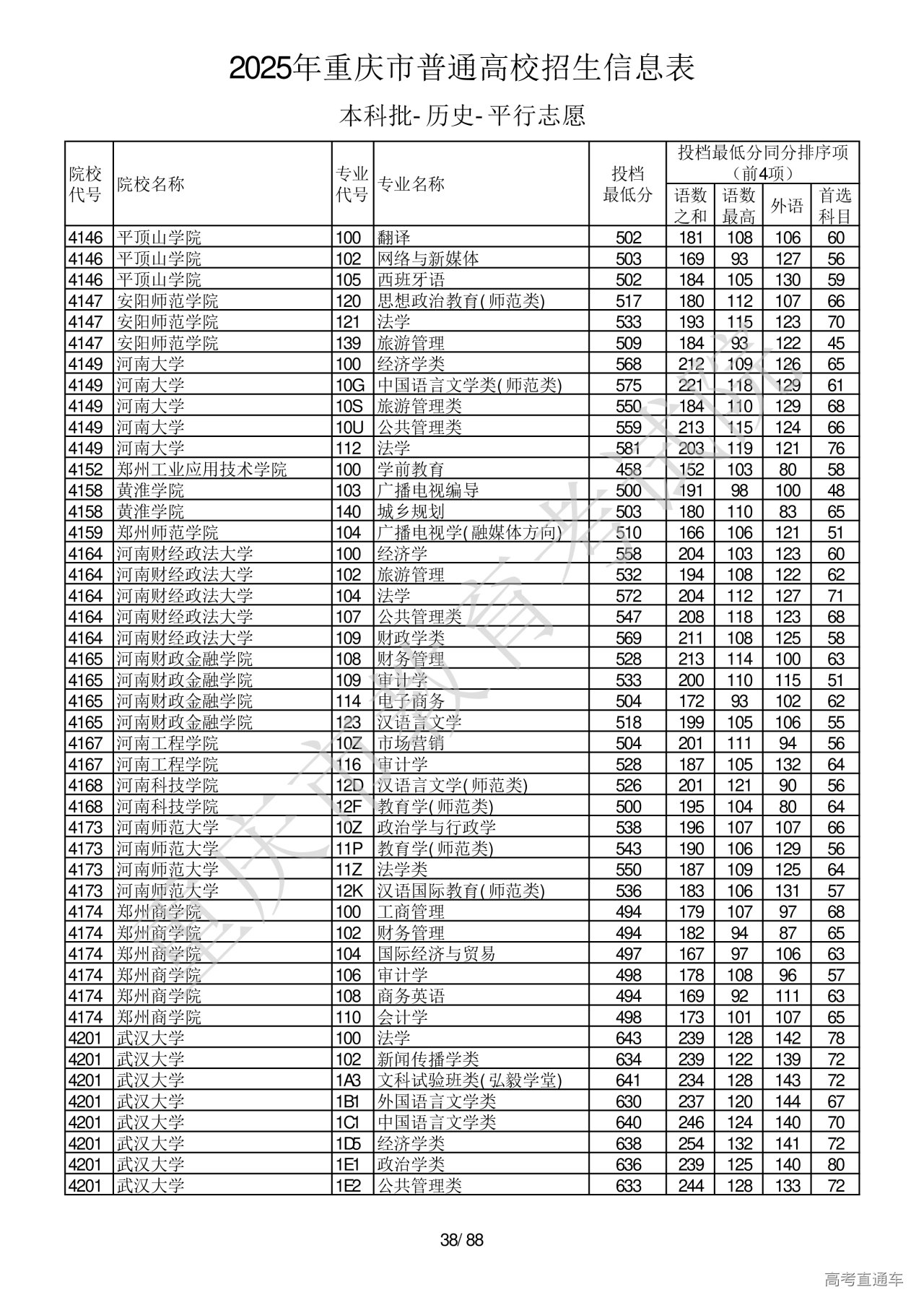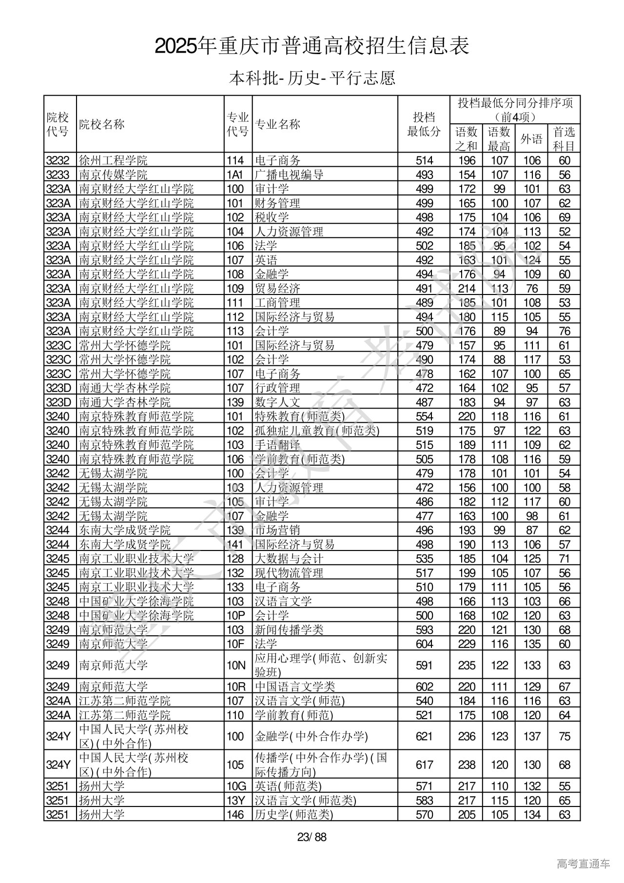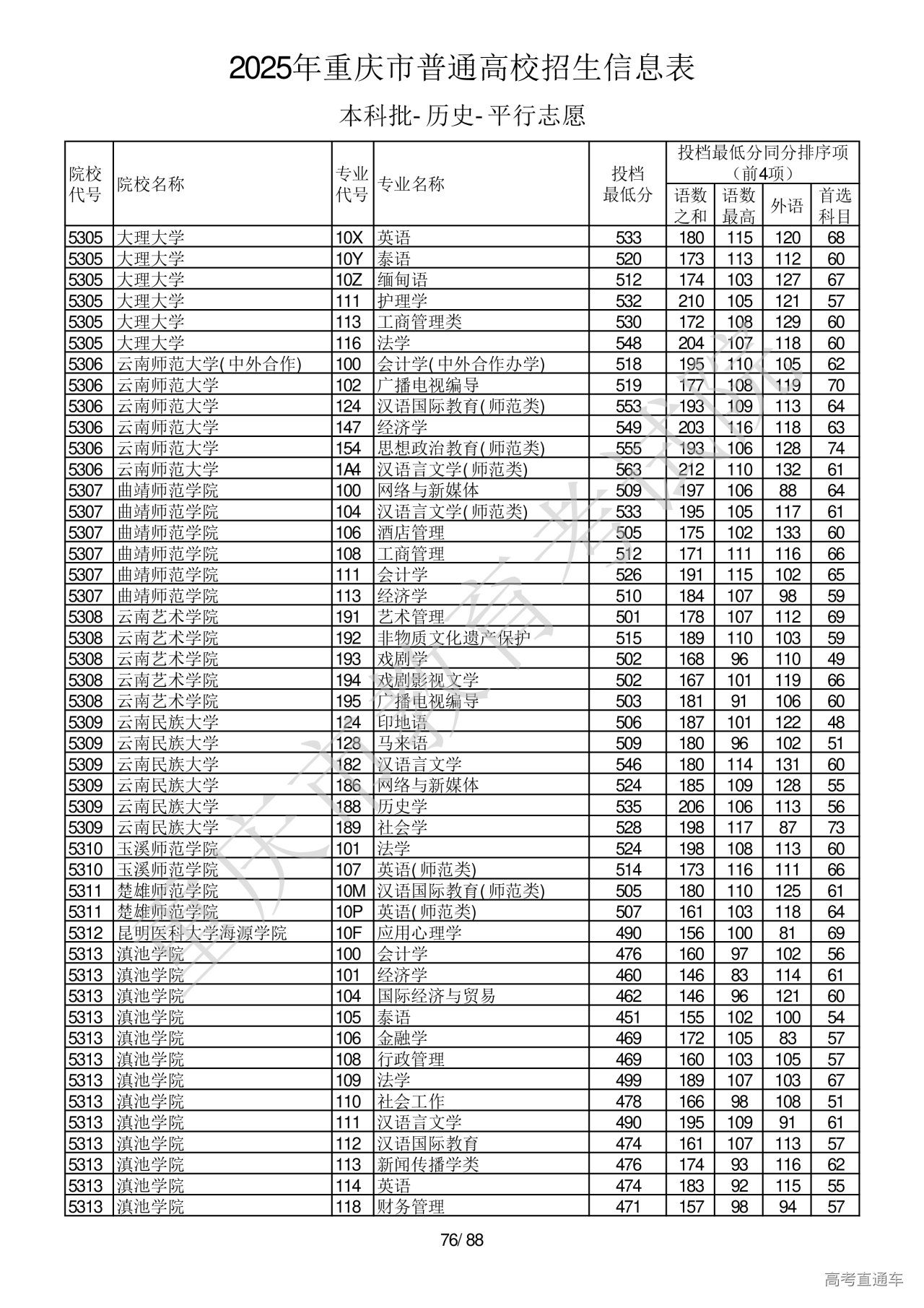 2025年重庆市普通高校招生信息表本科批-历史-平行志愿.pdf