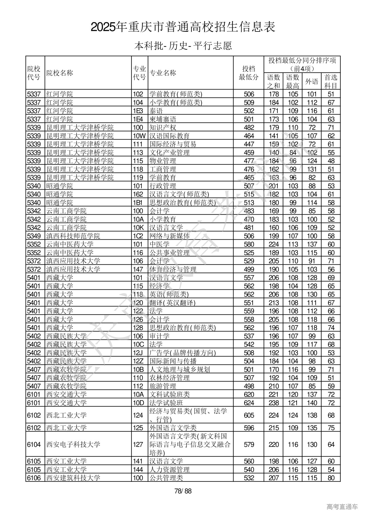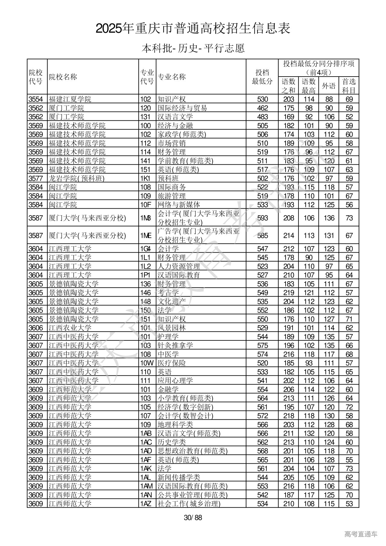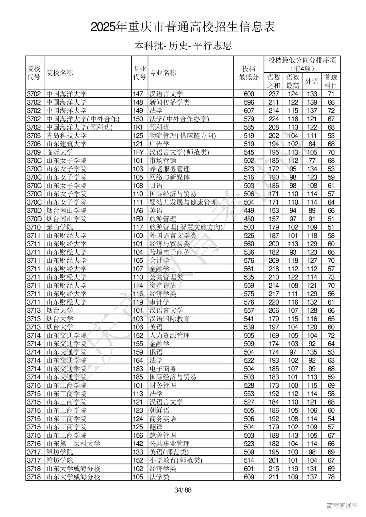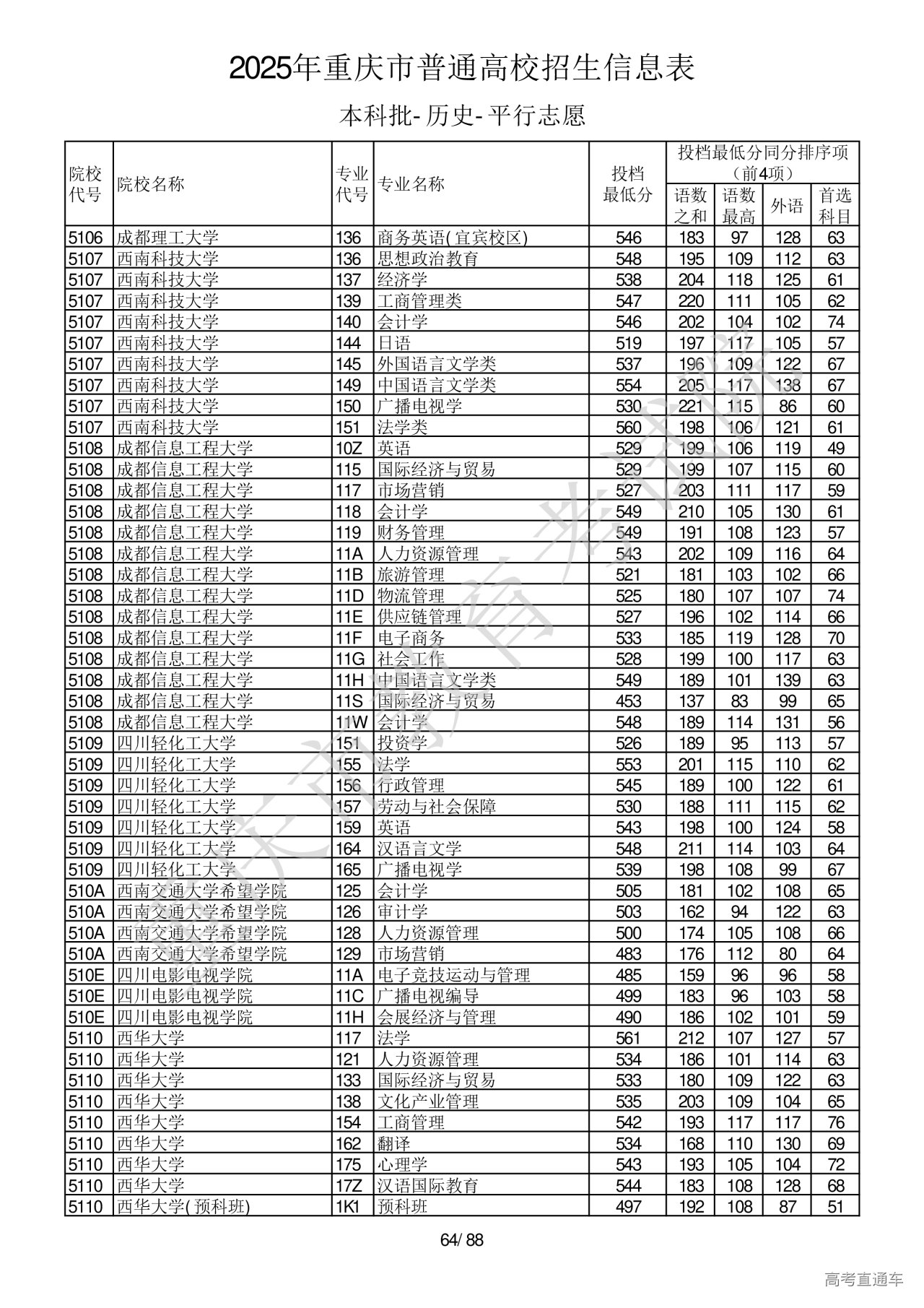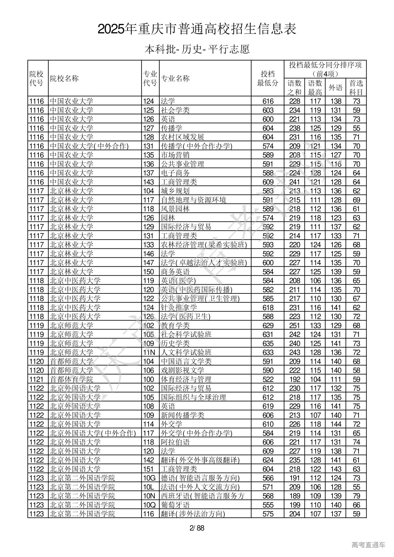 2025年重庆市普通高校招生信息表本科批-历史-平行志愿.pdf