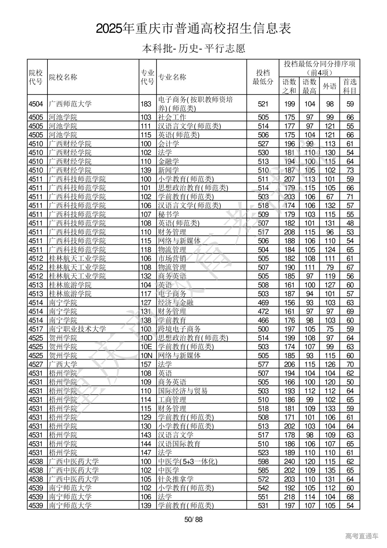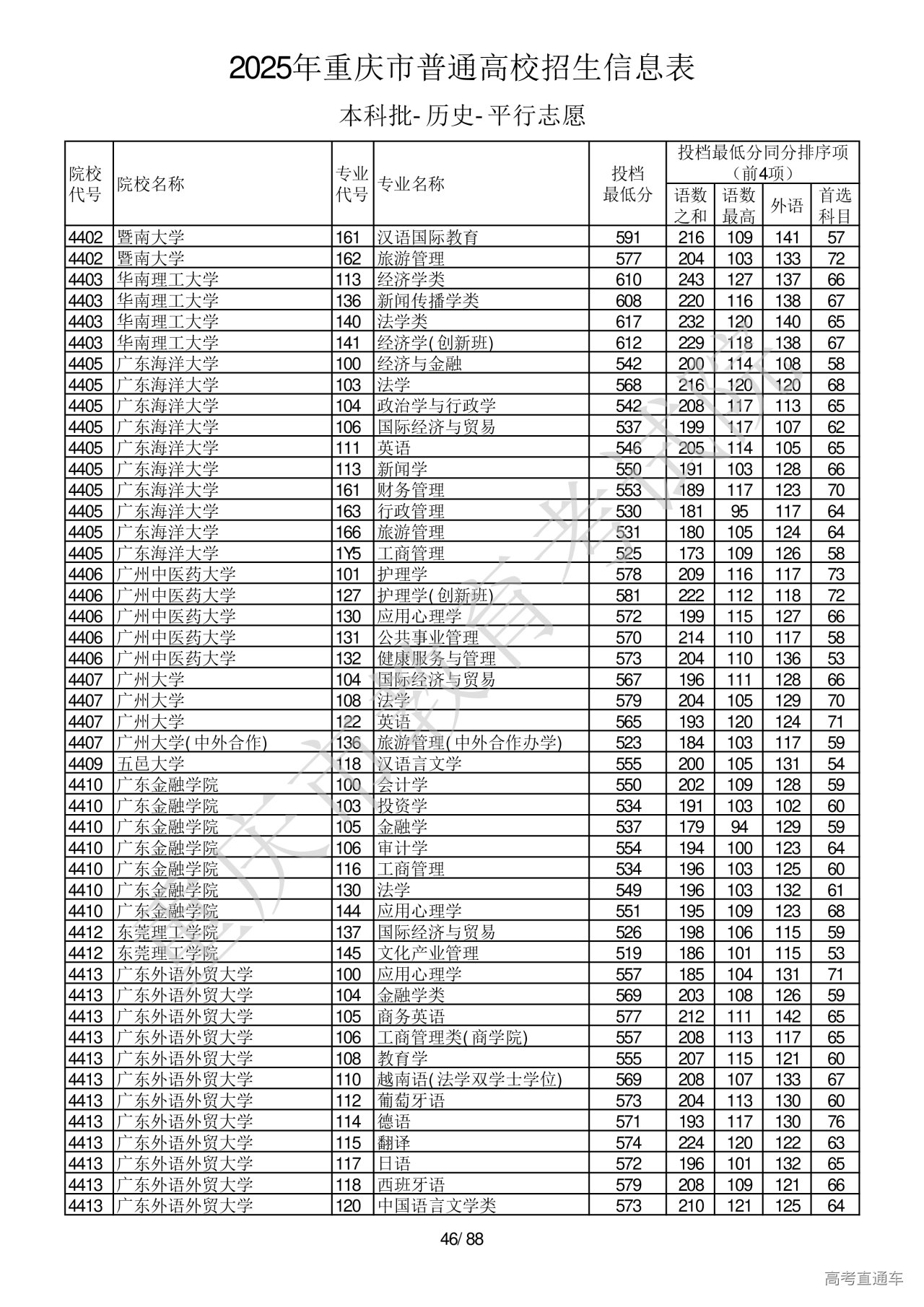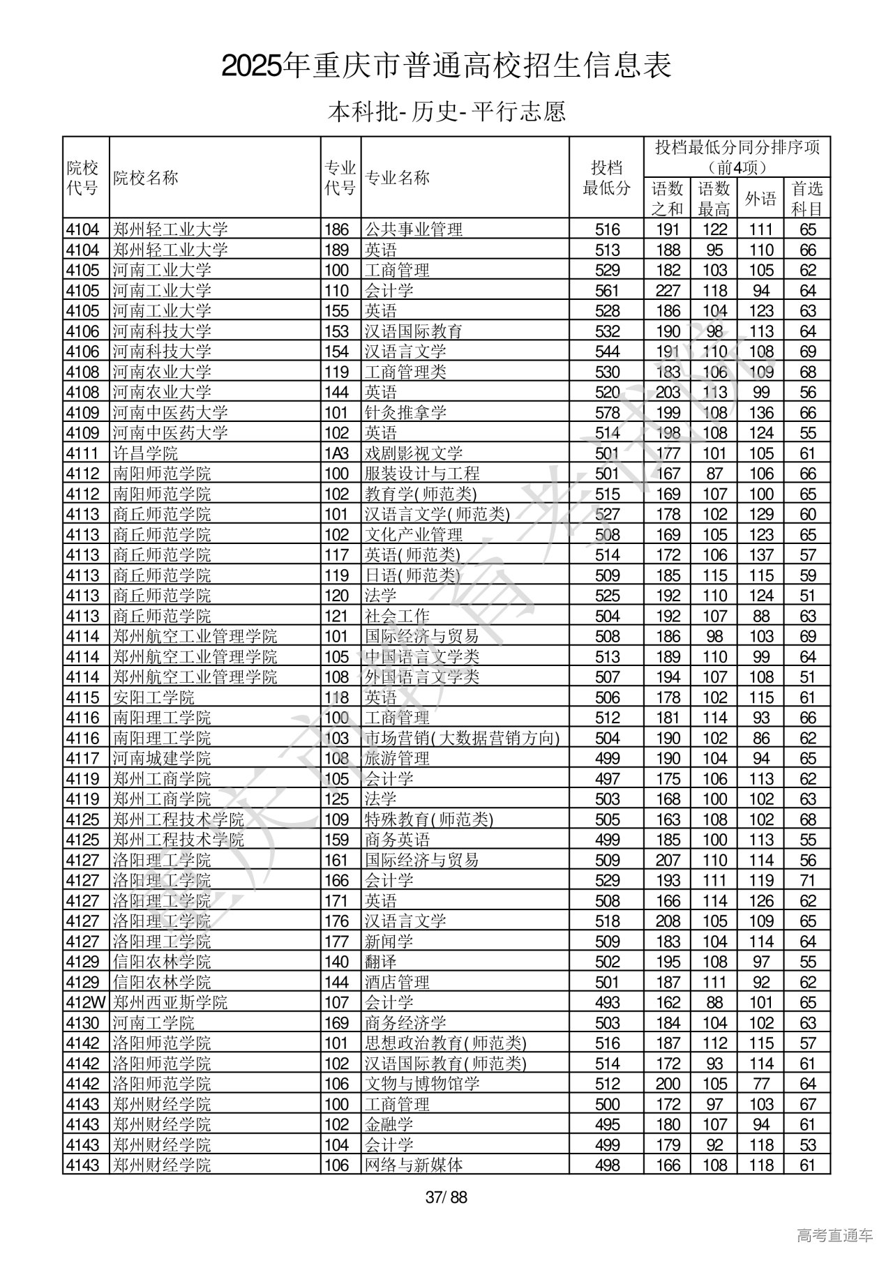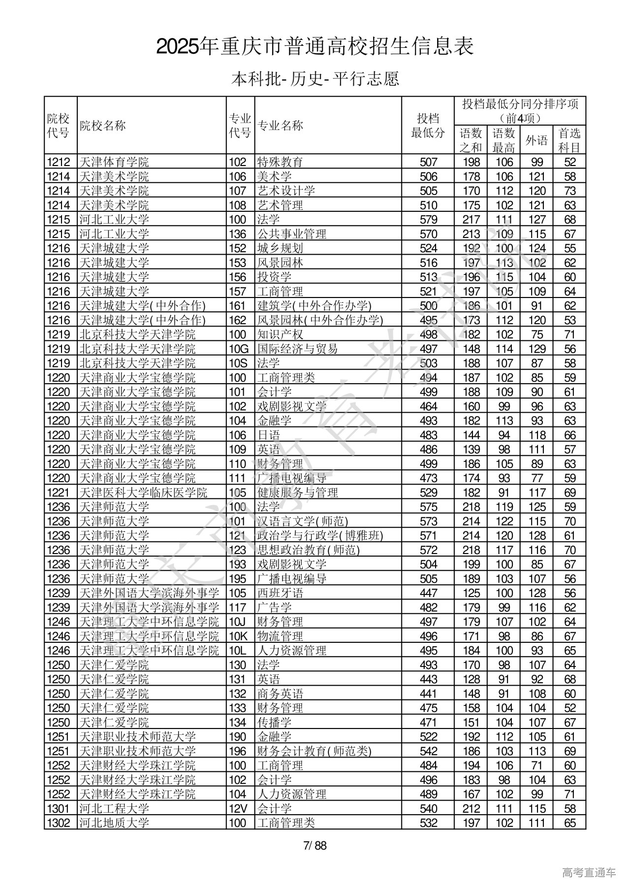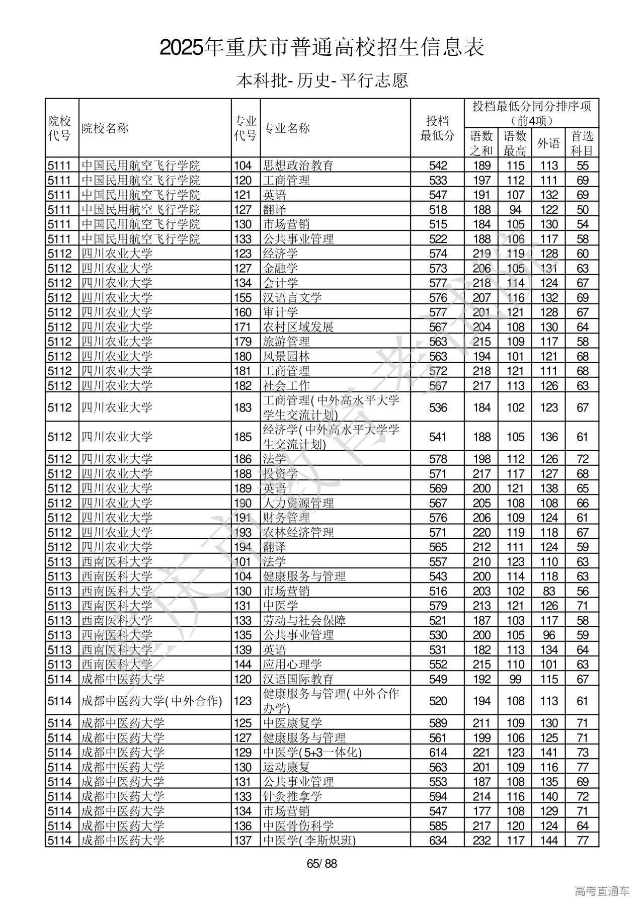 2025年重庆市普通高校招生信息表本科批-历史-平行志愿.pdf