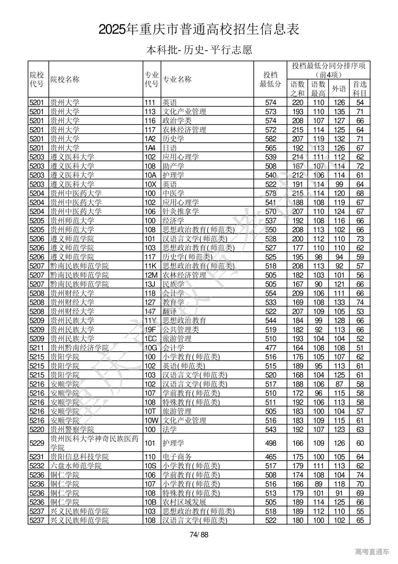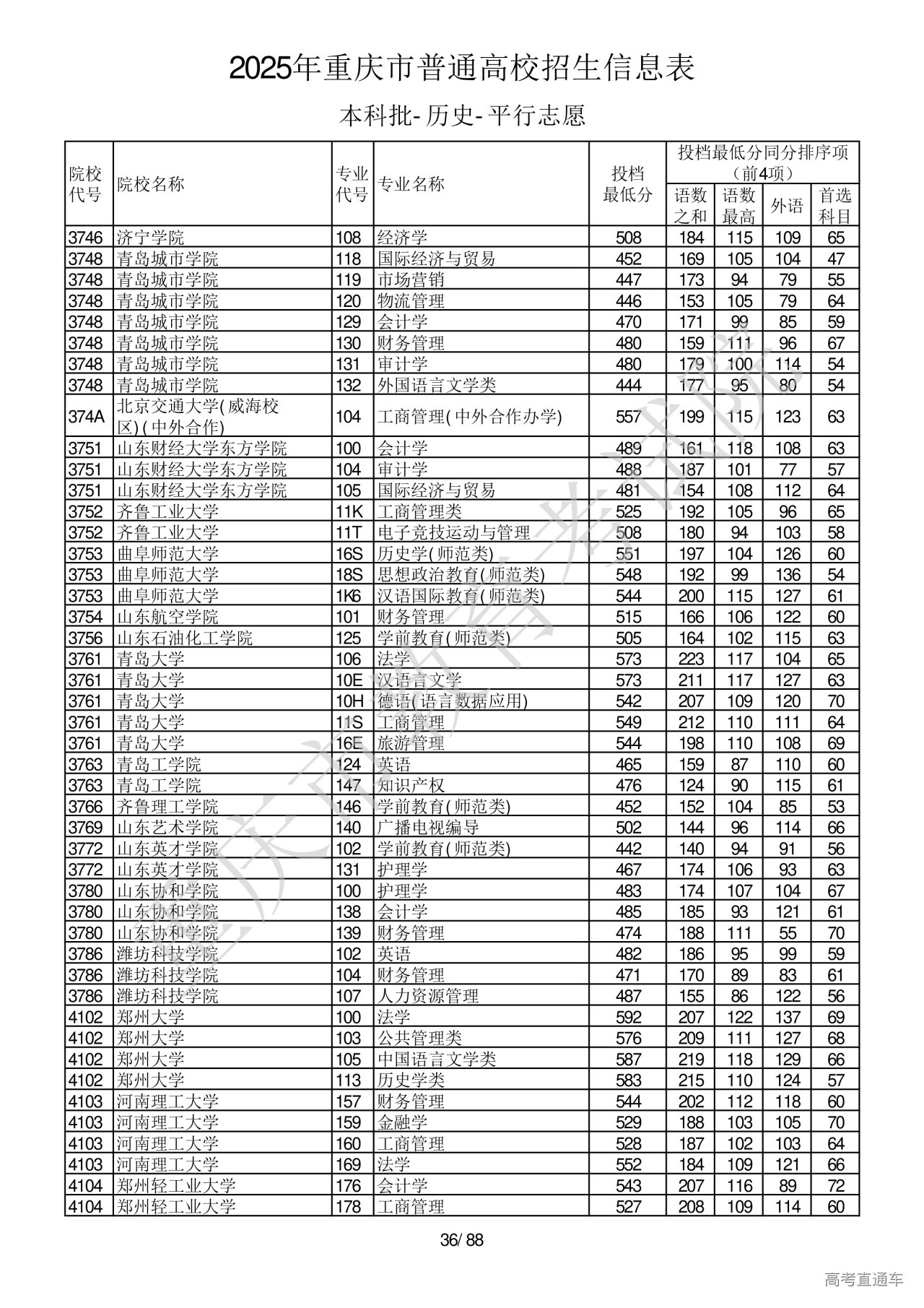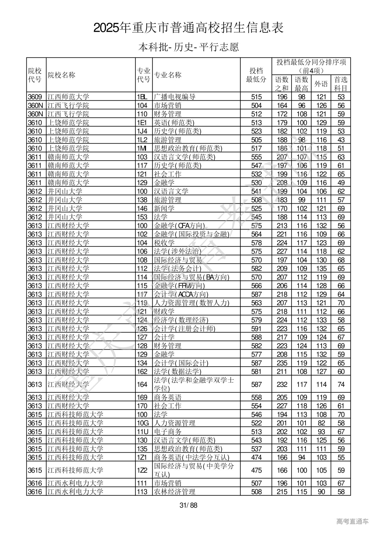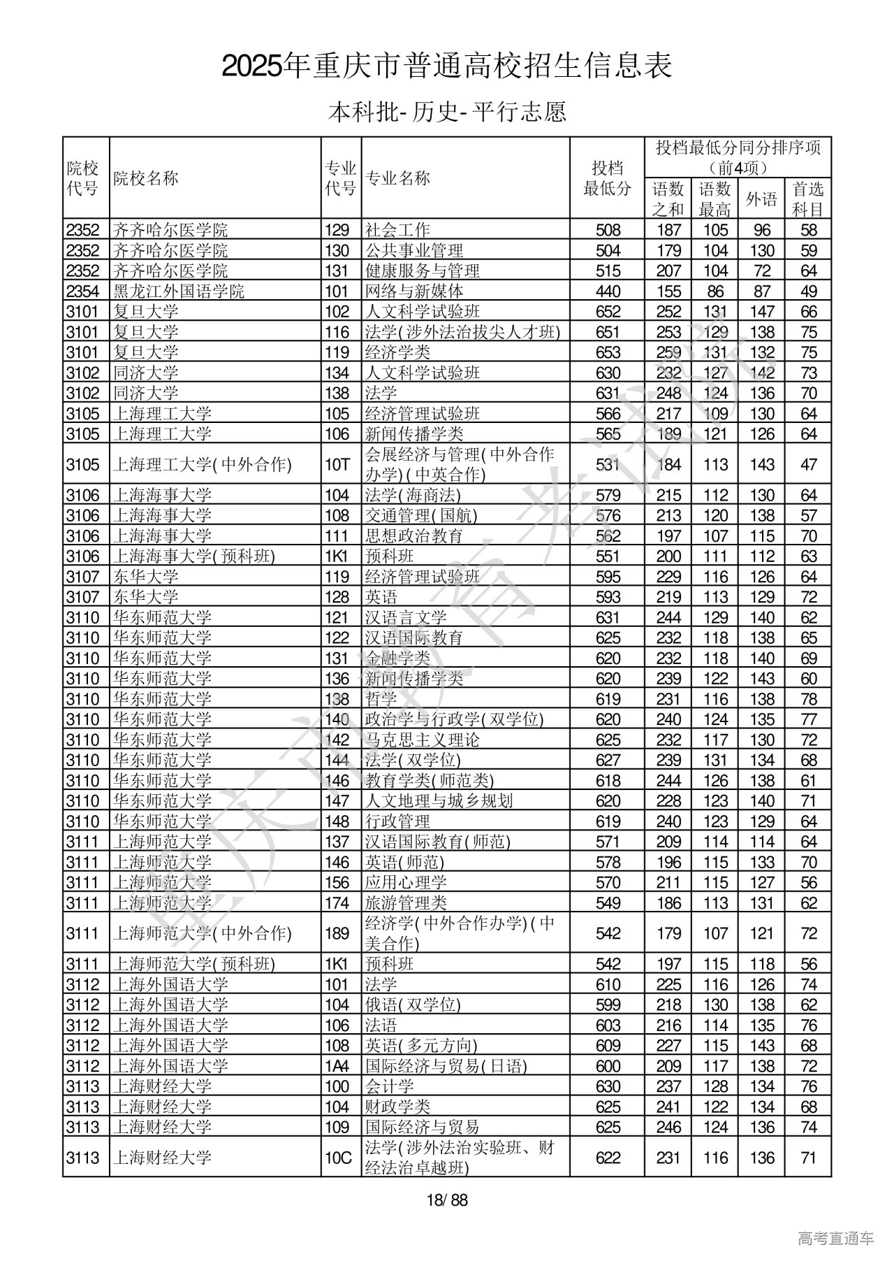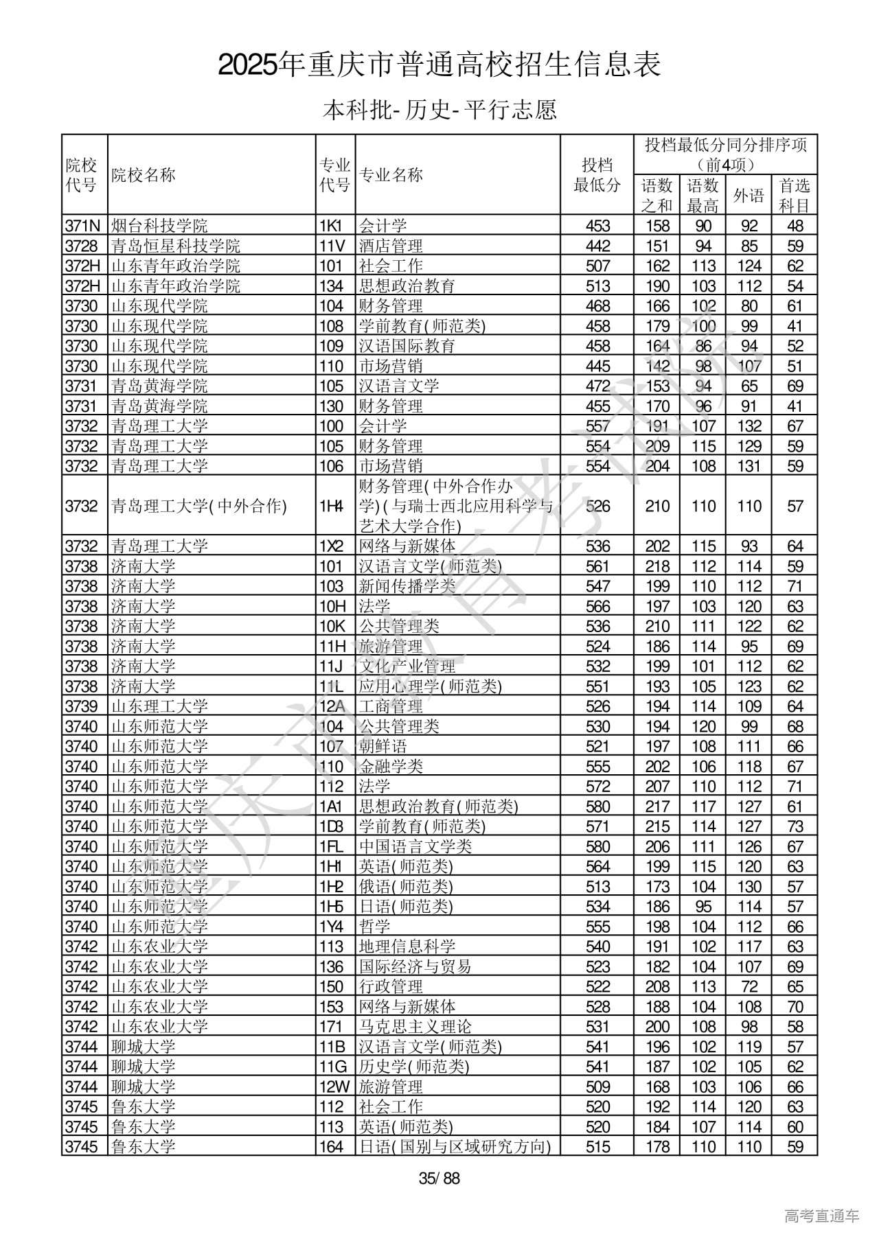 2025年重庆市普通高校招生信息表本科批-历史-平行志愿.pdf