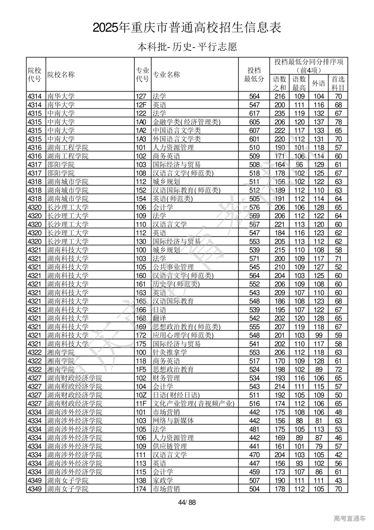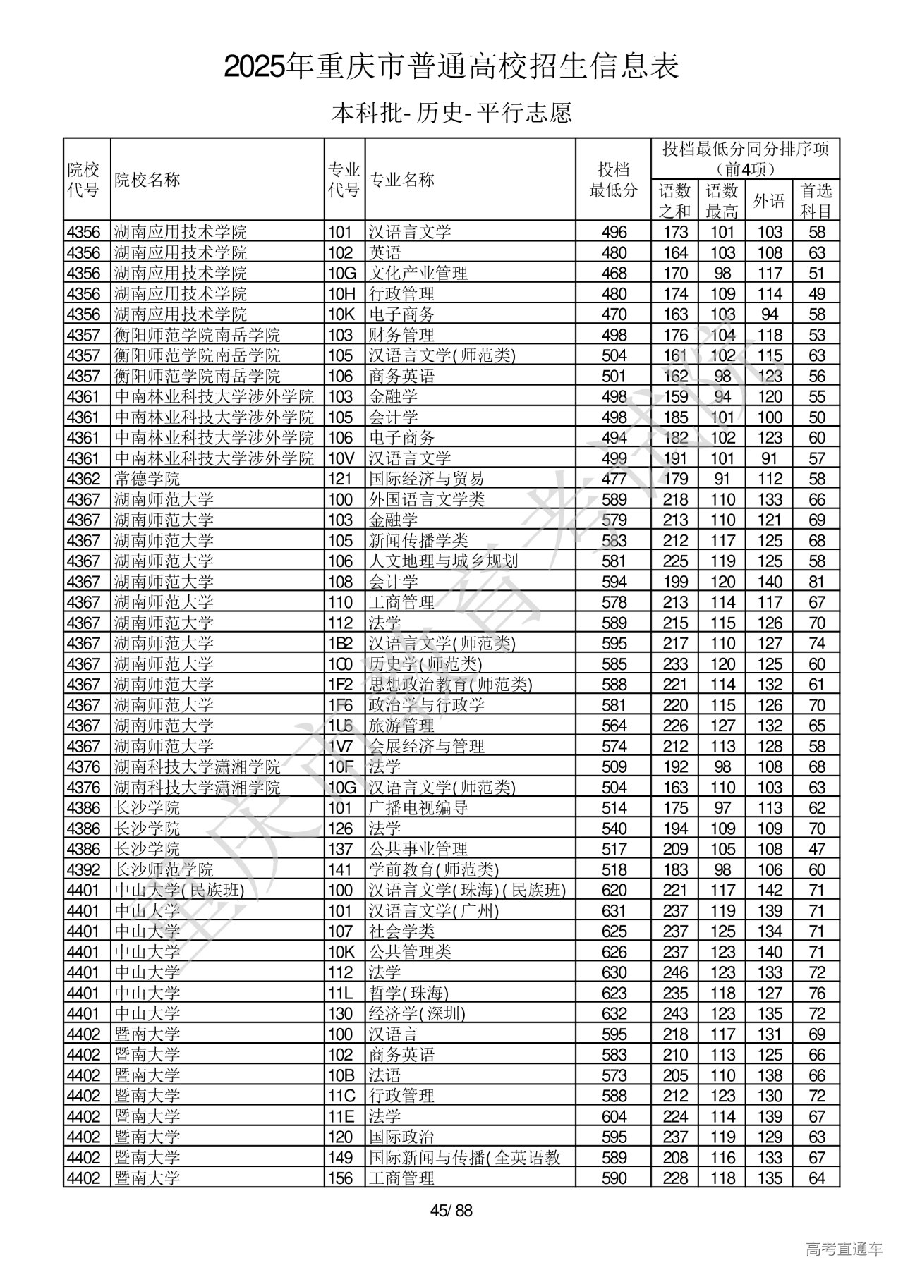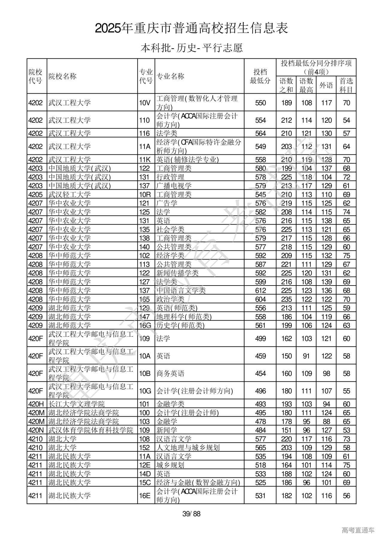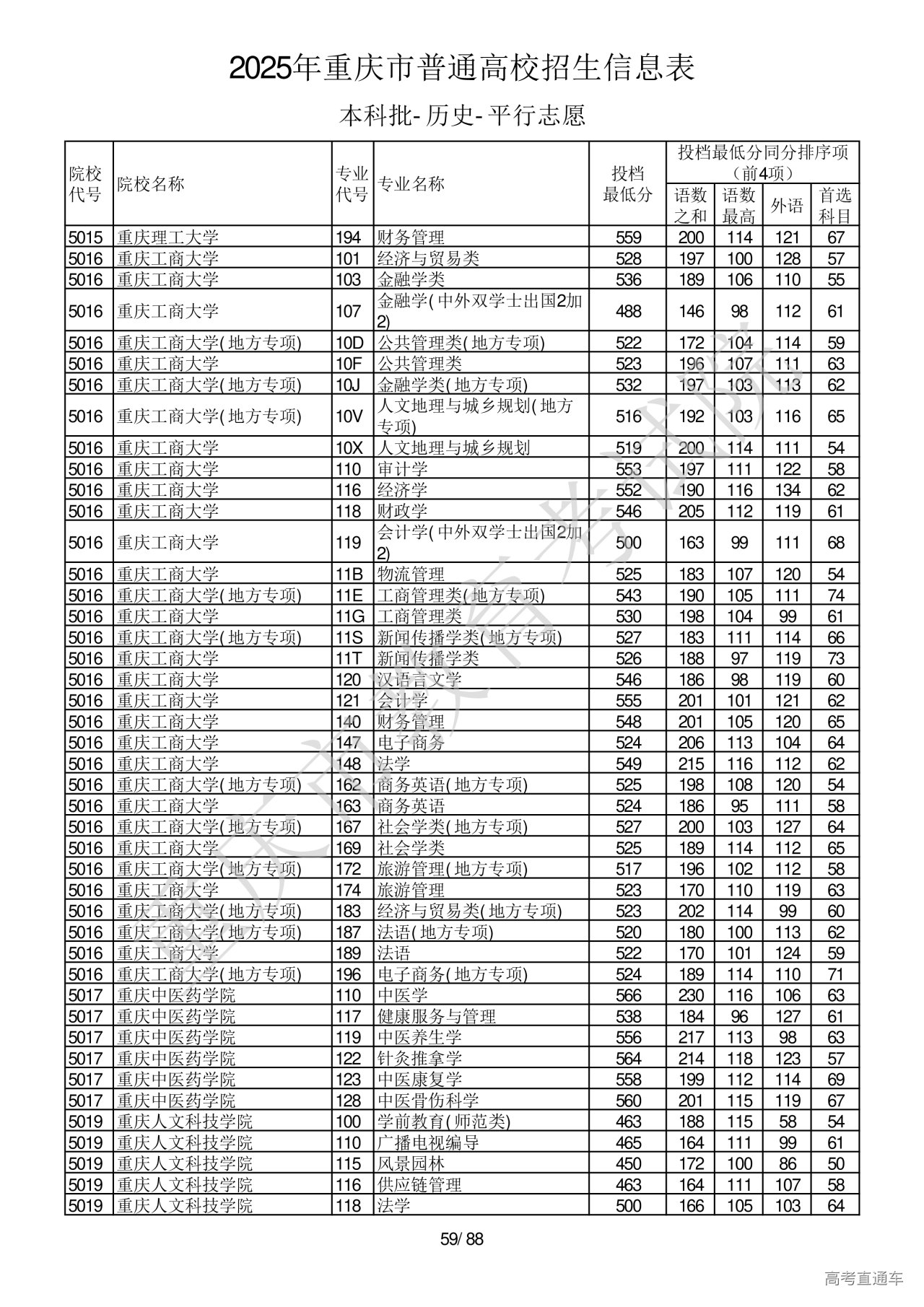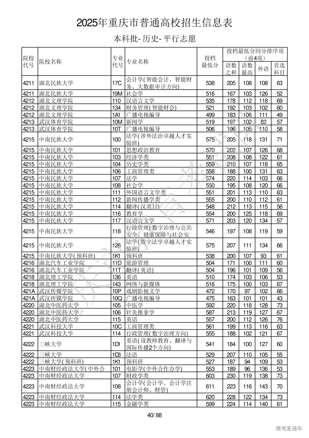 2025年重庆市普通高校招生信息表本科批-历史-平行志愿.pdf