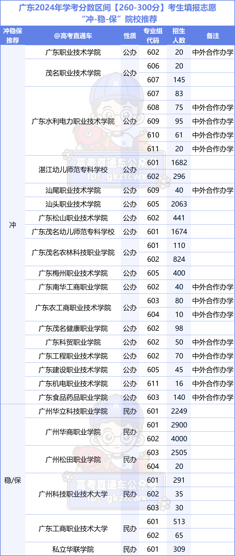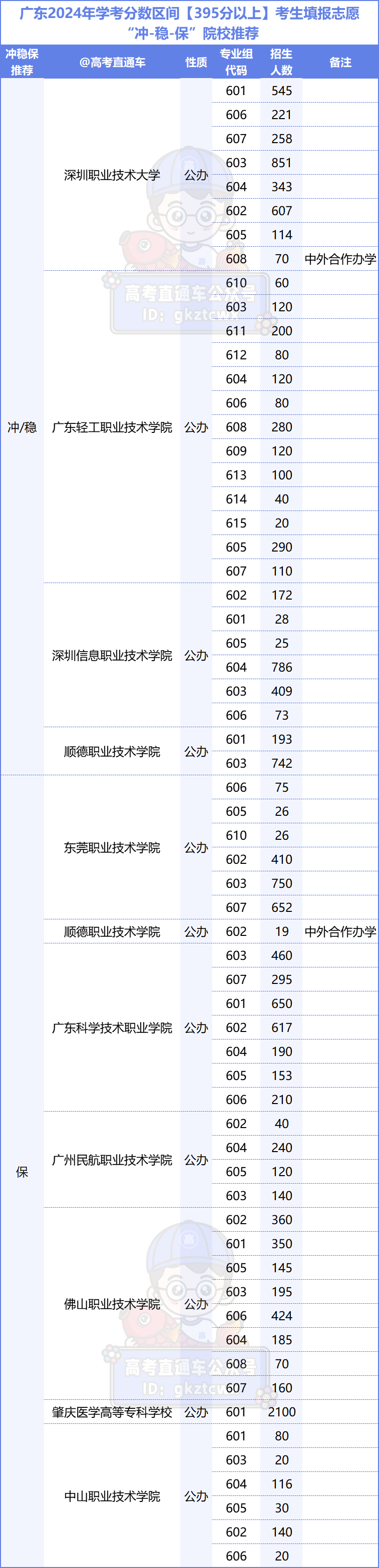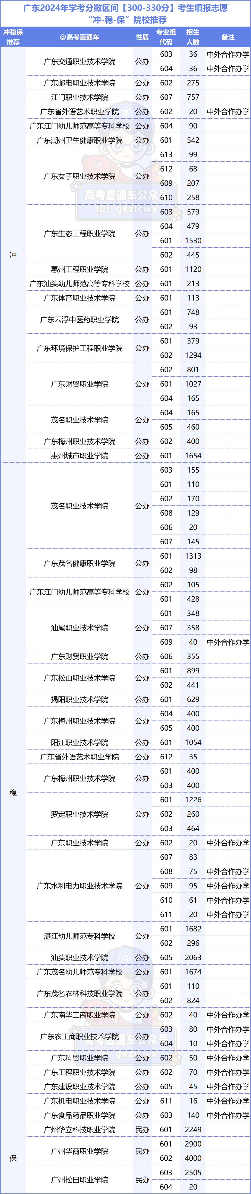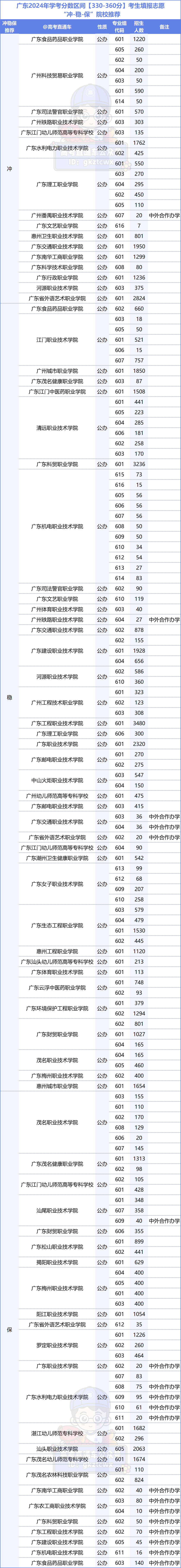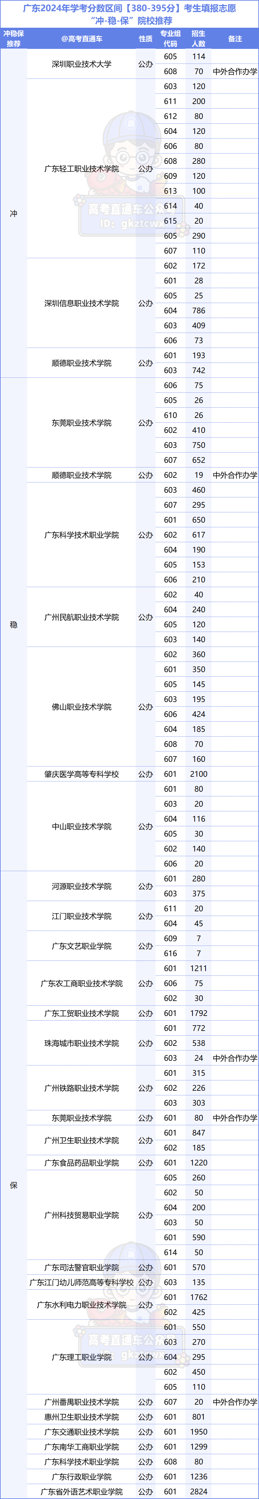 在“冲”方面,可以考虑:广州民航职业技术学院、佛山职业技术学院、广东科学技术职业学院等6所院校;