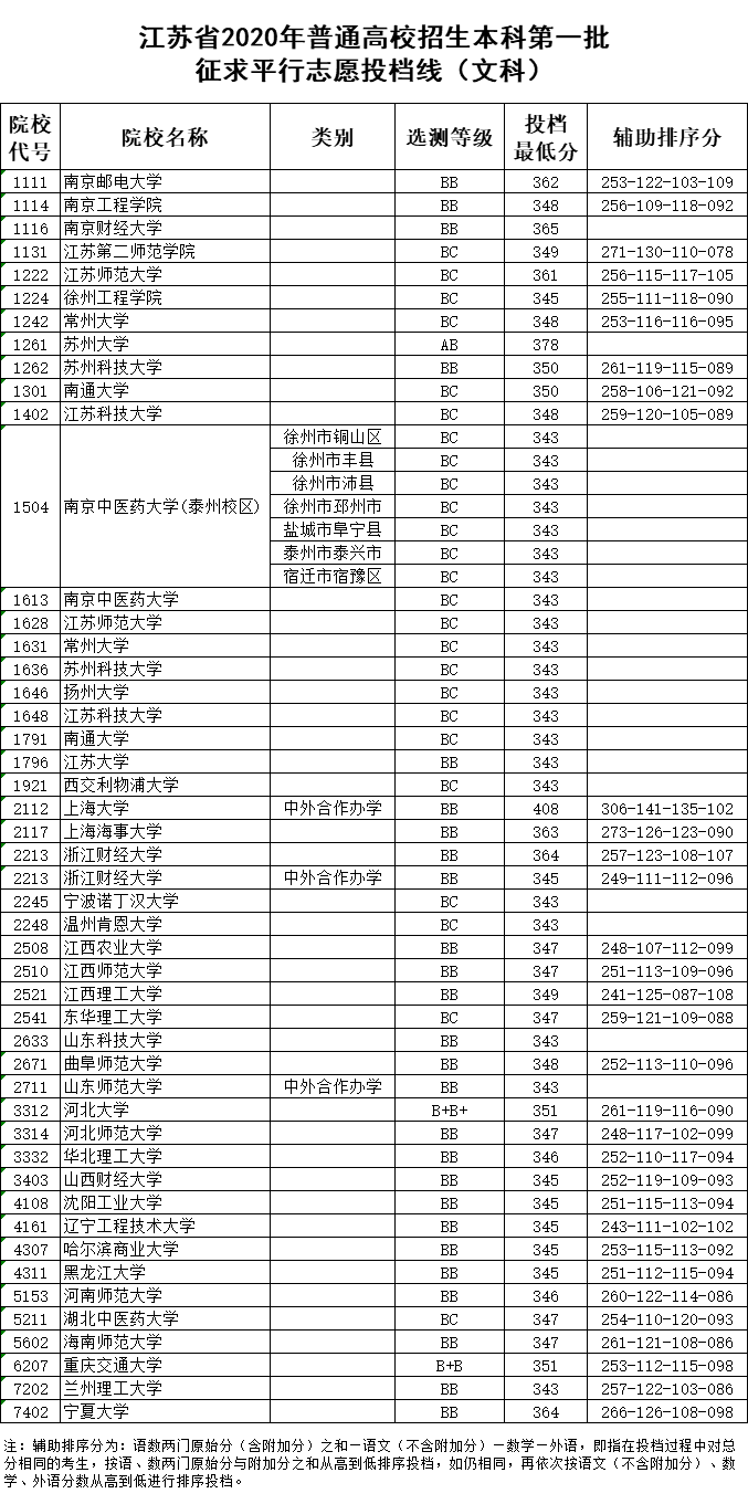 江苏2020本科第一批征求志愿投档线公布:文科最高408分、理科最高383分