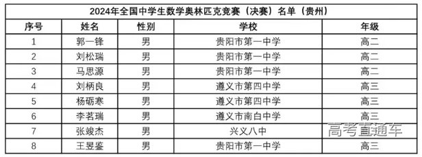 2024年第40届全国中学生数学联赛省队名单(贵州)