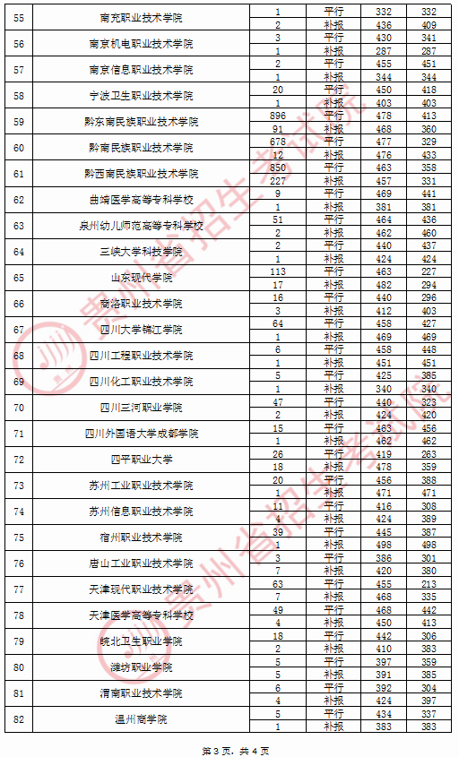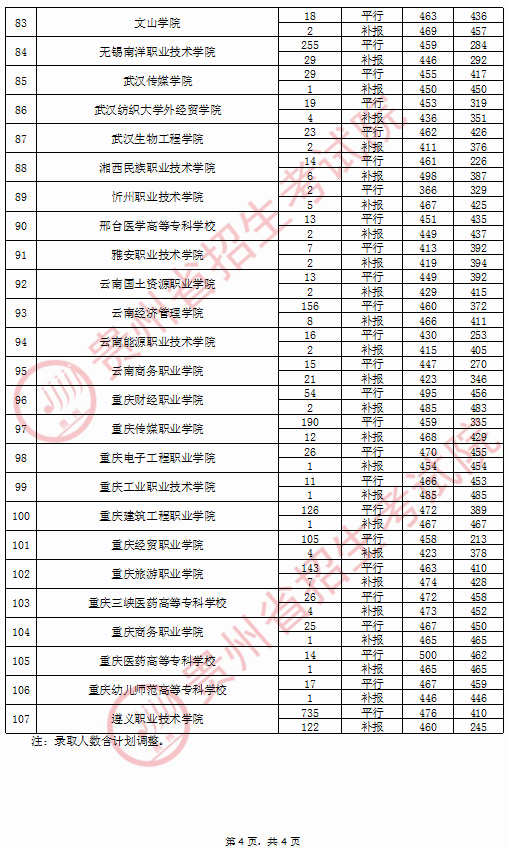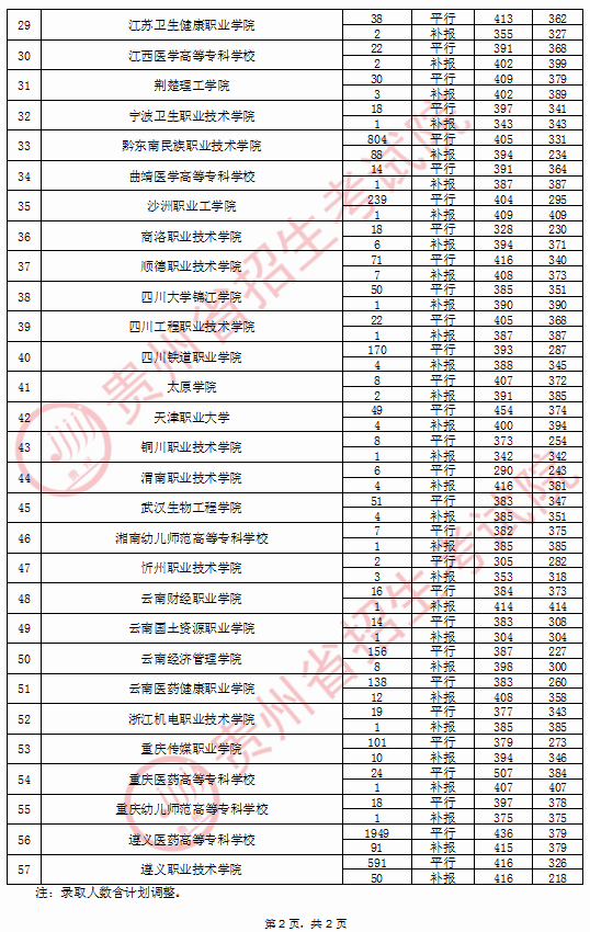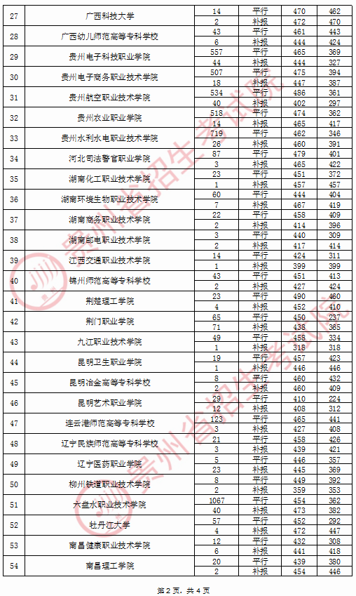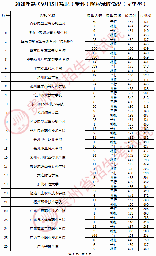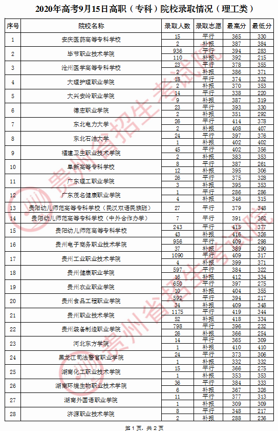 2020贵州9月15日普通高校招生高职(专科)院校录取情况