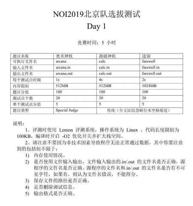 根据《CCF关于NOI省队选拔的规定》、《关于组织NOI2019北京队选拔的通知》,由北京青少年科技教育协会组织的CCF NOI2019北京队选拔活动于2019年4月20-21日在首都师范大学附属中学举行。北京队选拔采用上机测试,分为两轮。