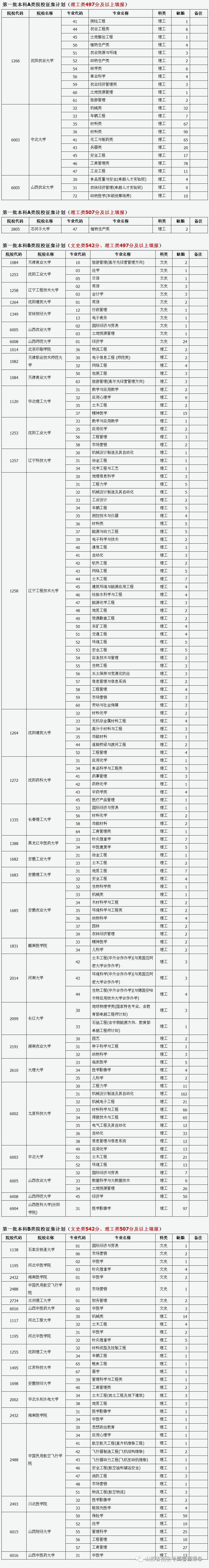 目前,我省第一批本科A类、第一批本科B类部分院校因生源不足或考生不服从专业调剂退档出现缺额。根据部分院校申请,现理工类497分作为征集志愿资格线进行征集,征集志愿结束后,根据考生志愿,按分数从高到低投档录取,并在山西招生考试网公布各院校本次投档最低分。