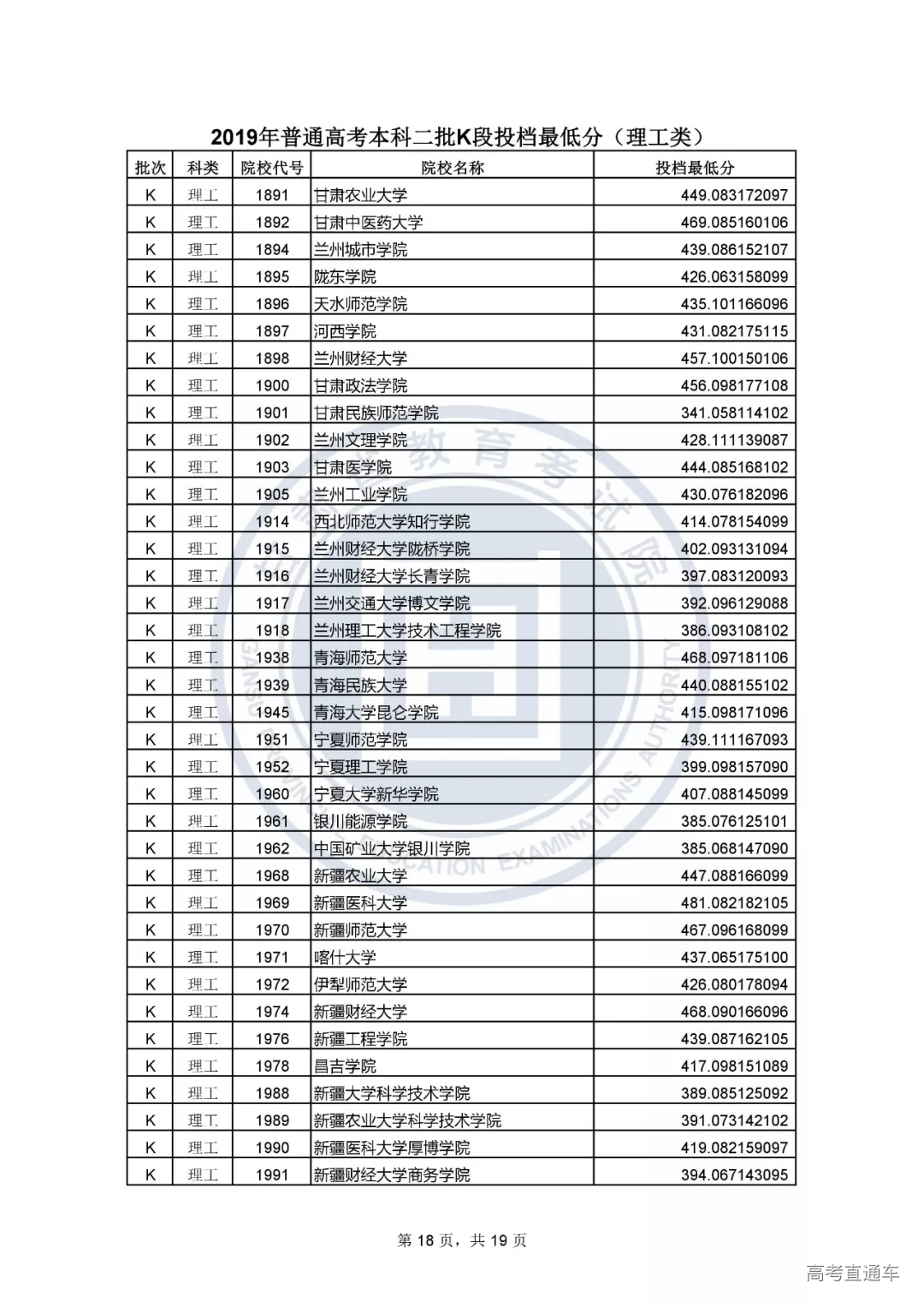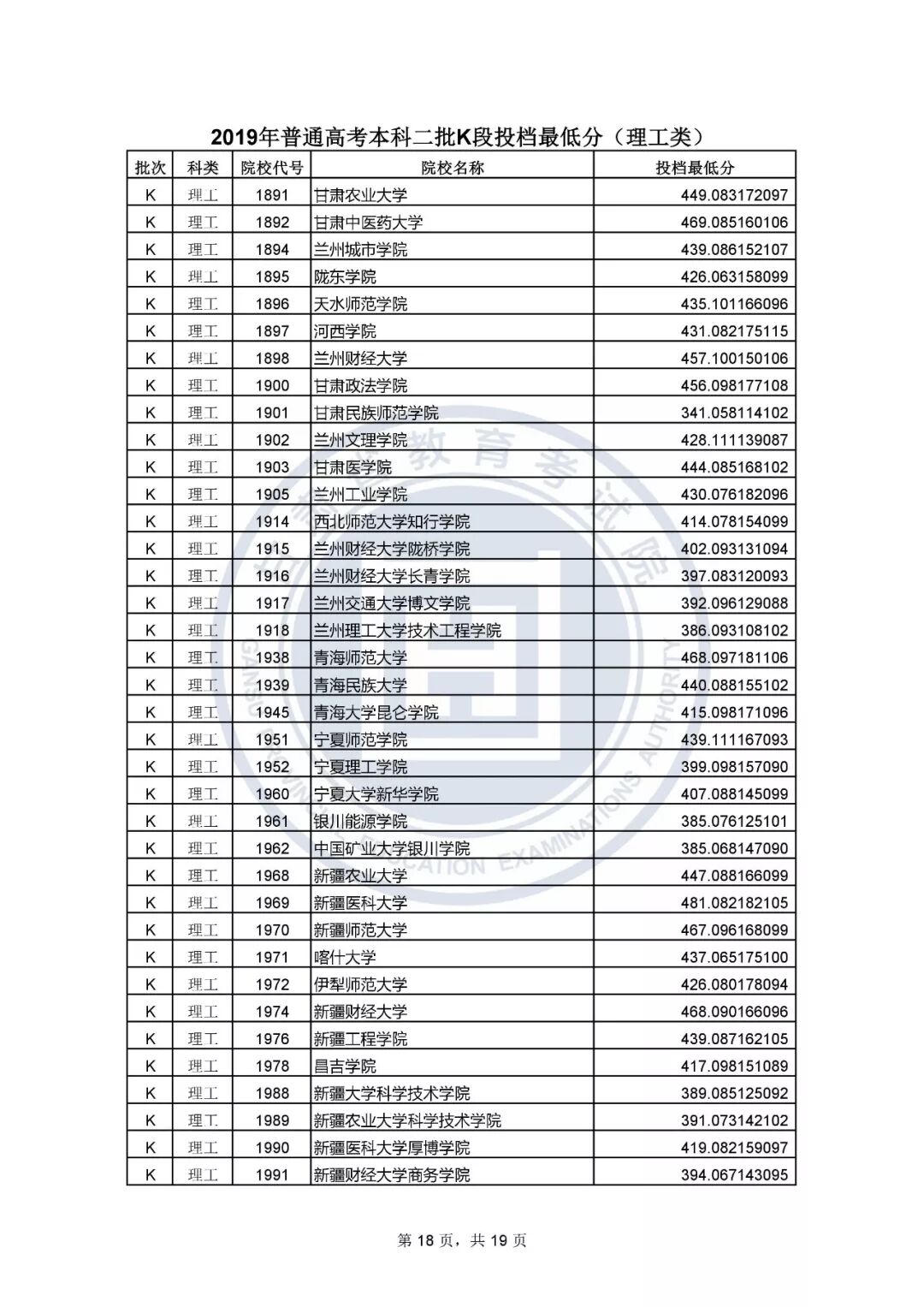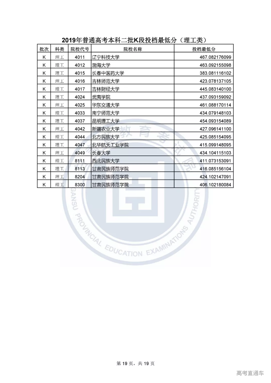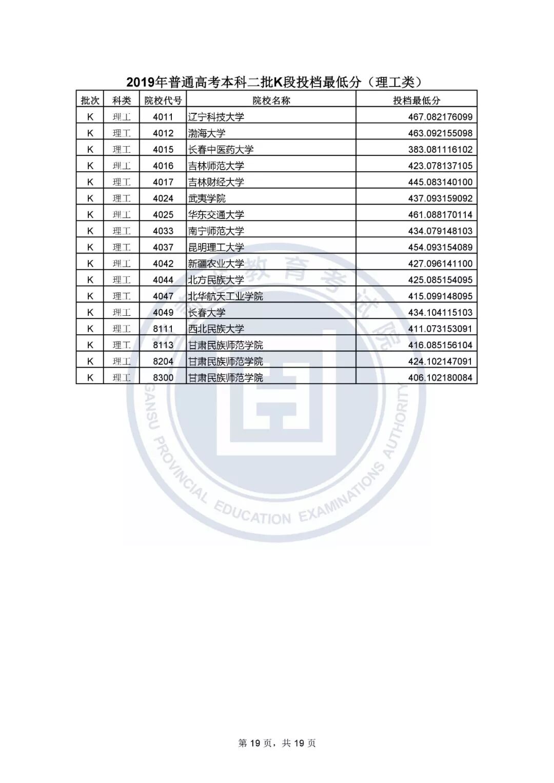 相关链接:2019年甘肃省普通高校招生本科二批K段投档最低分(文史类)
