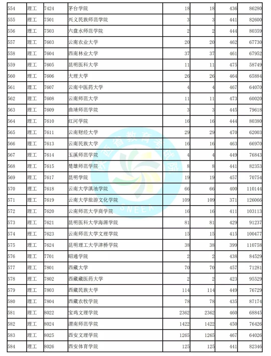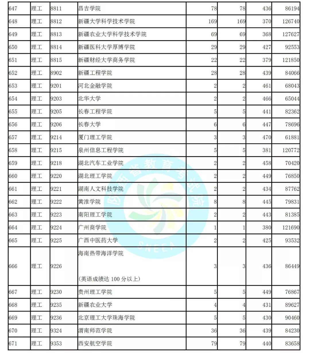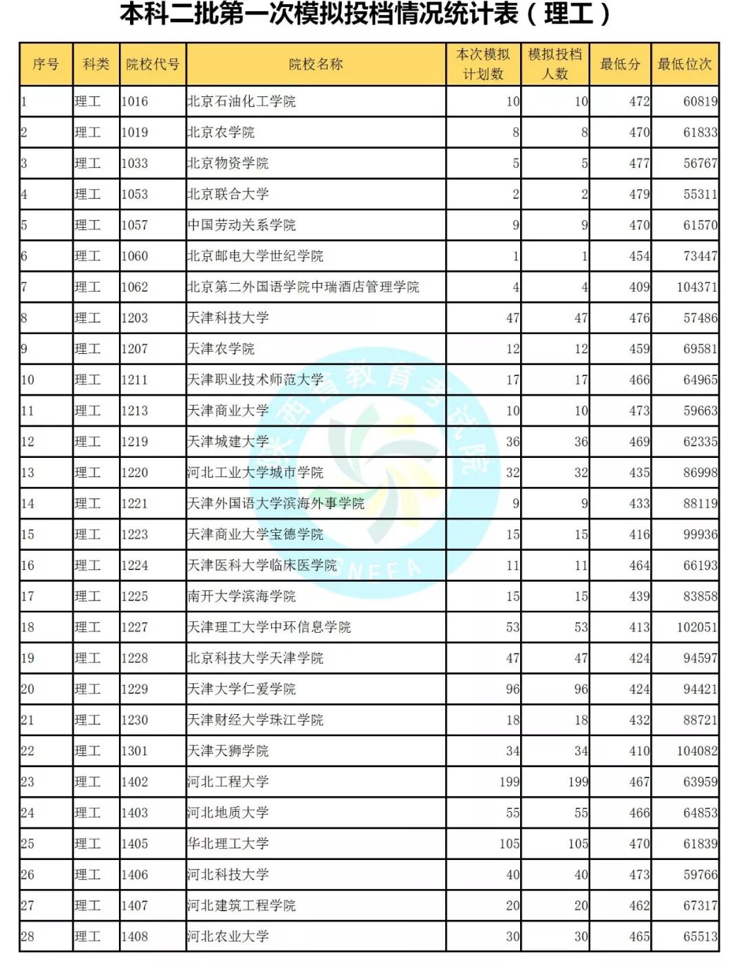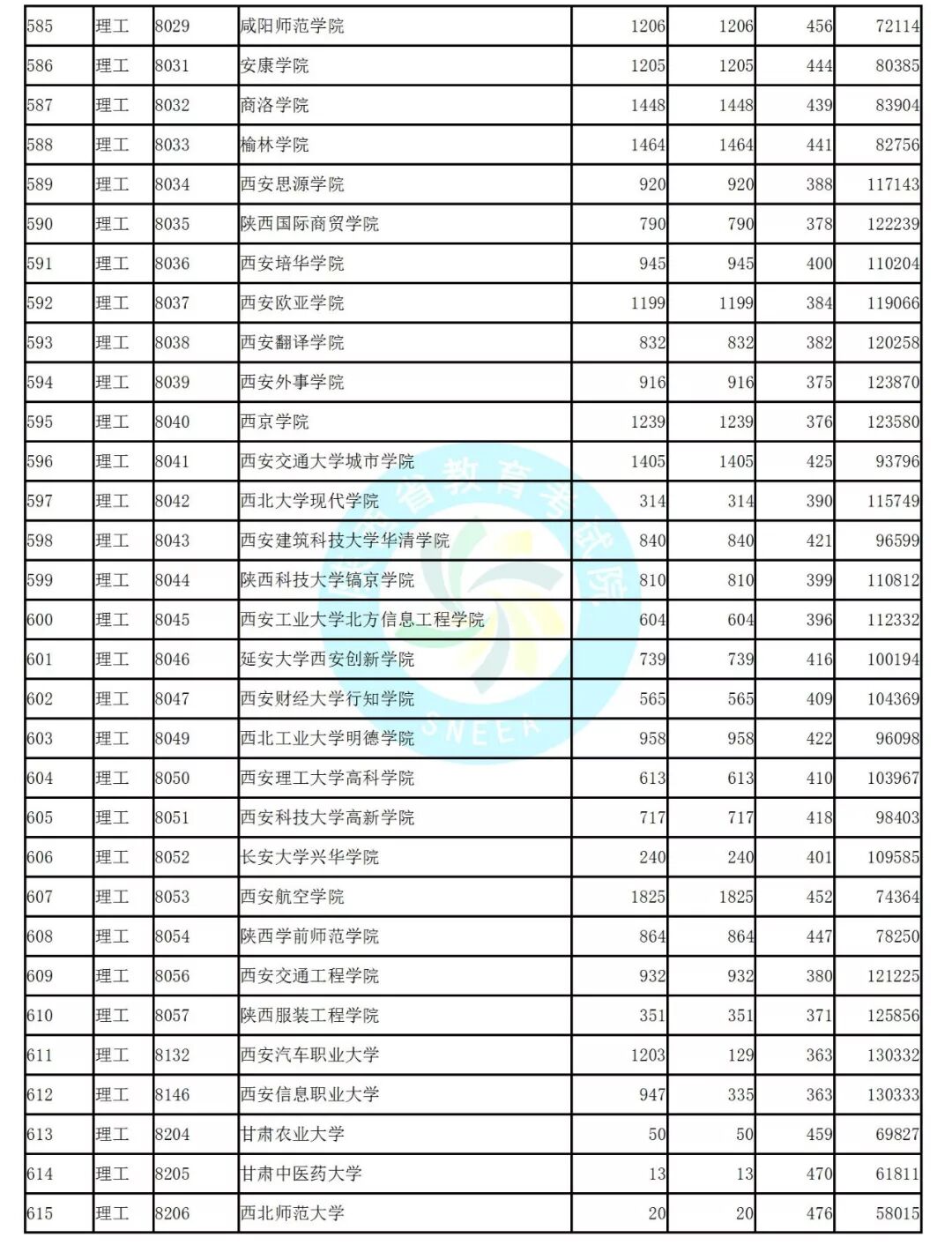 陕西2019本科二批第一次模拟投档情况统计表(理工)