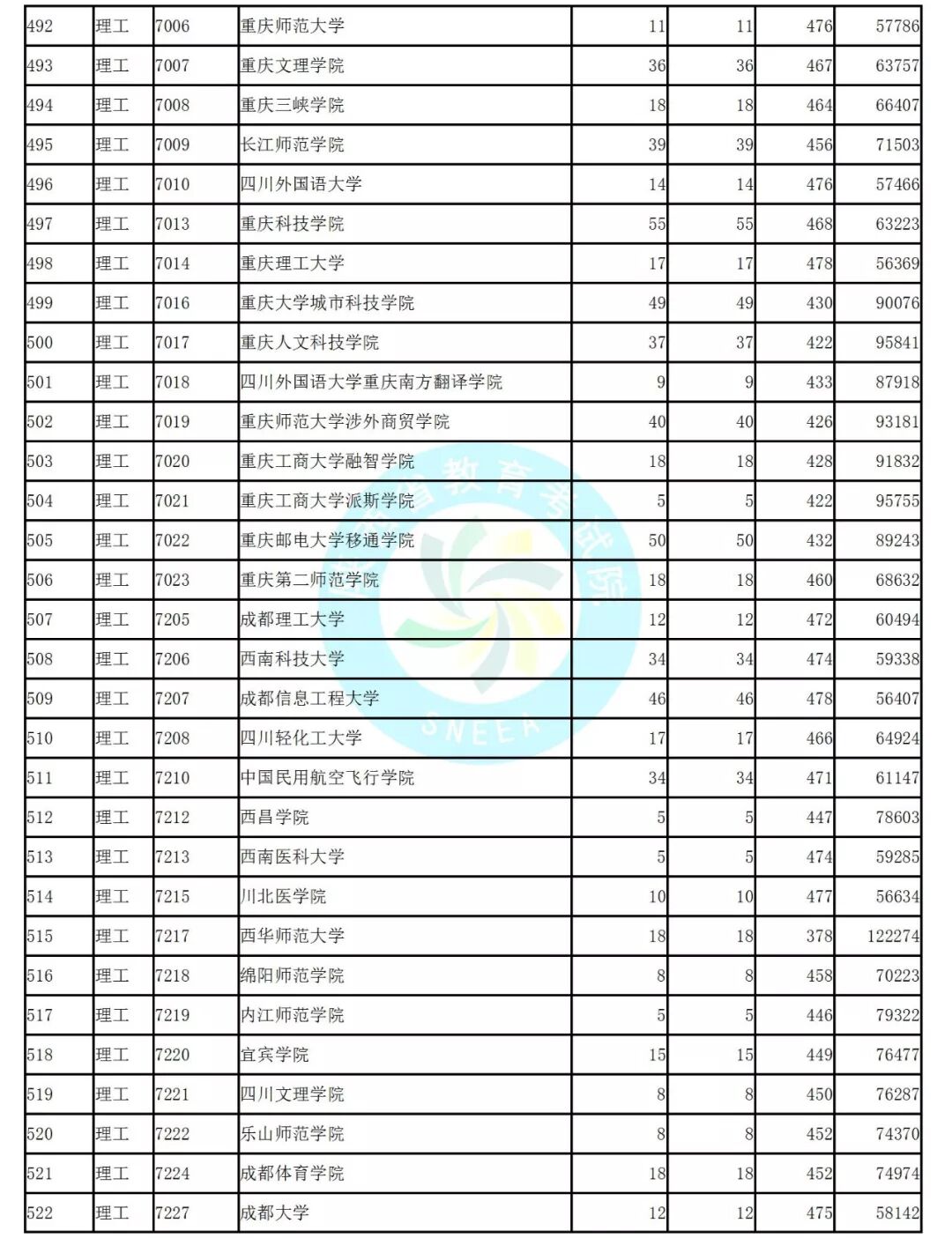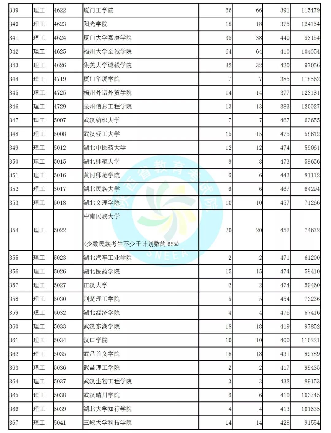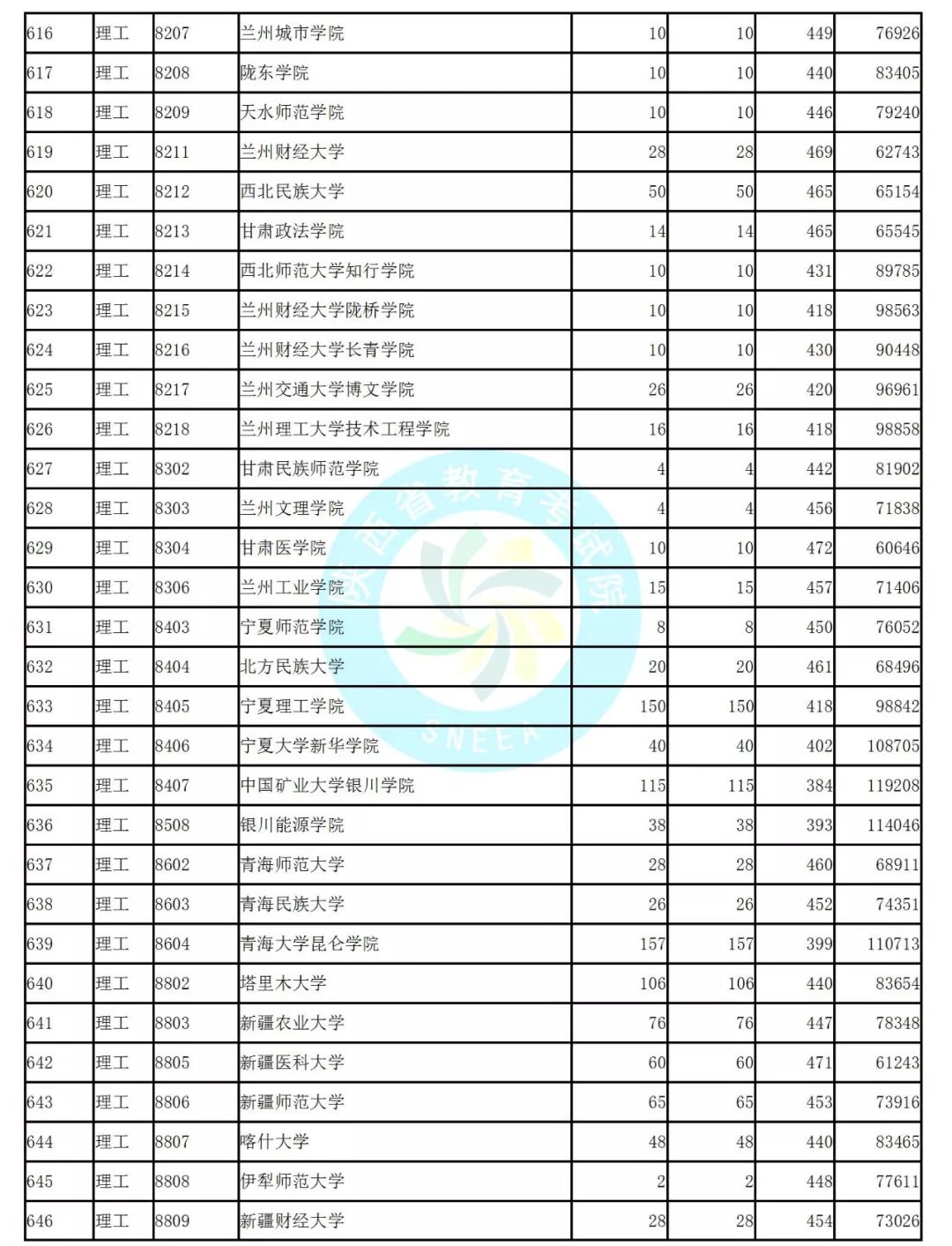 陕西2019本科二批第一次模拟投档情况统计表(理工)